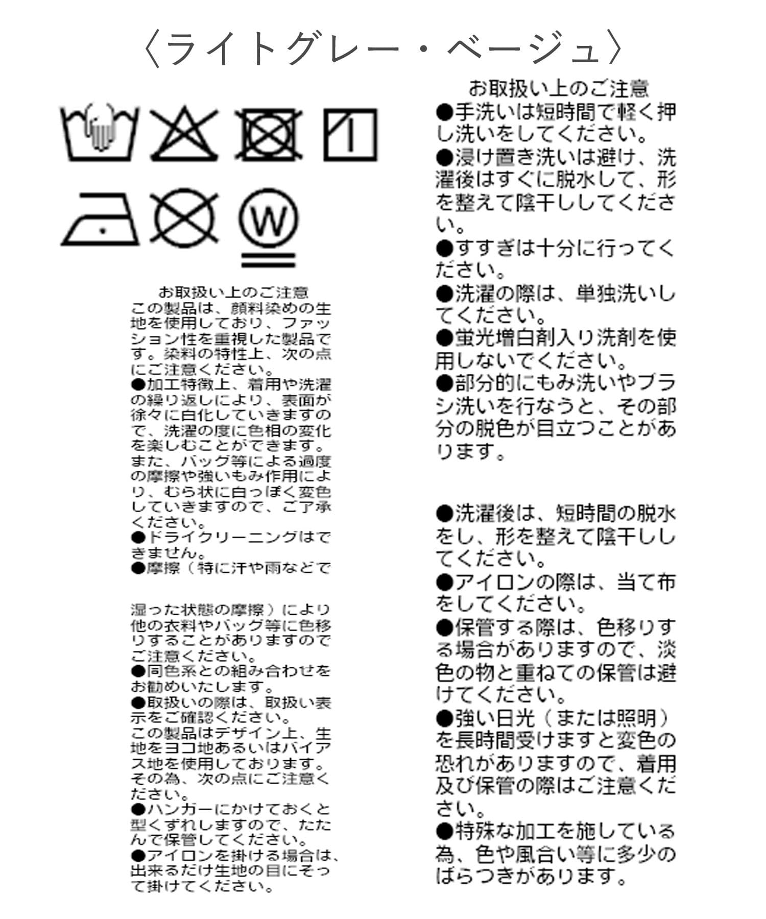 また着用の際には白や淡色のものとの重ね着は避けてください。色が移る場合があります。
