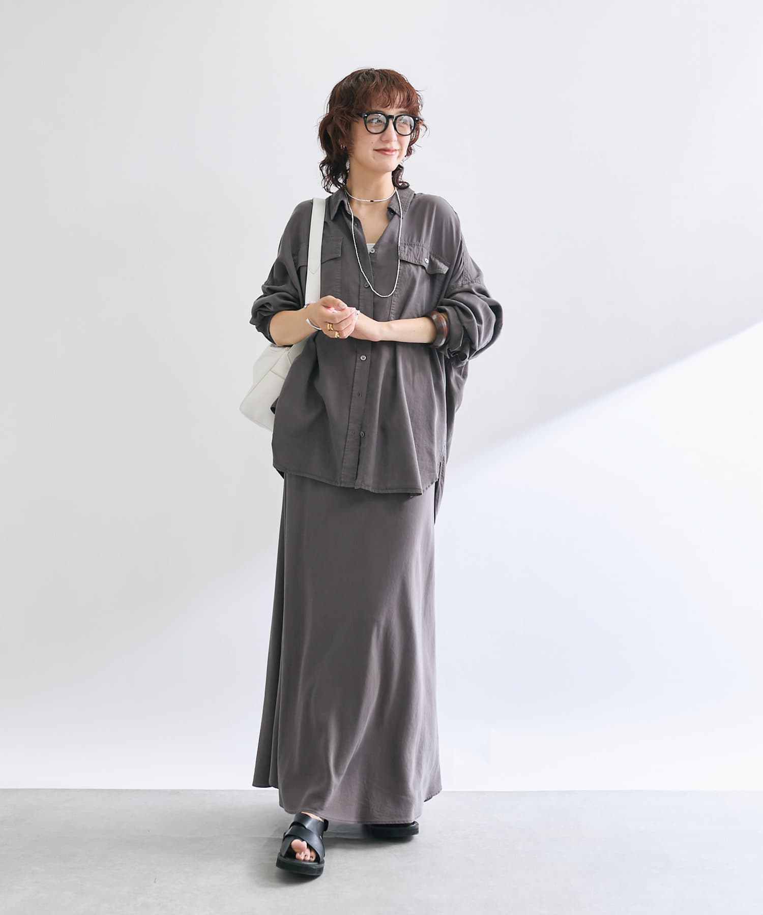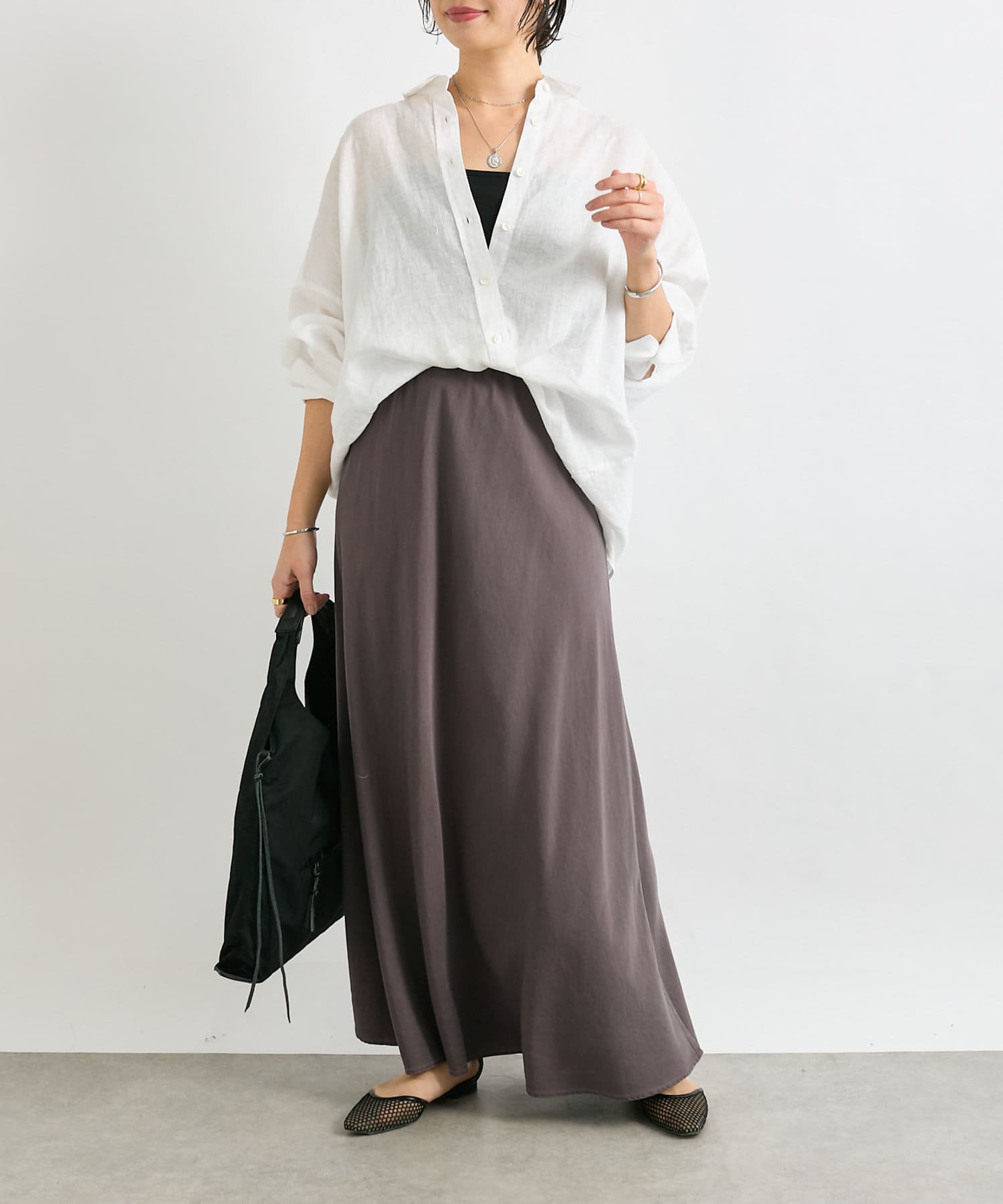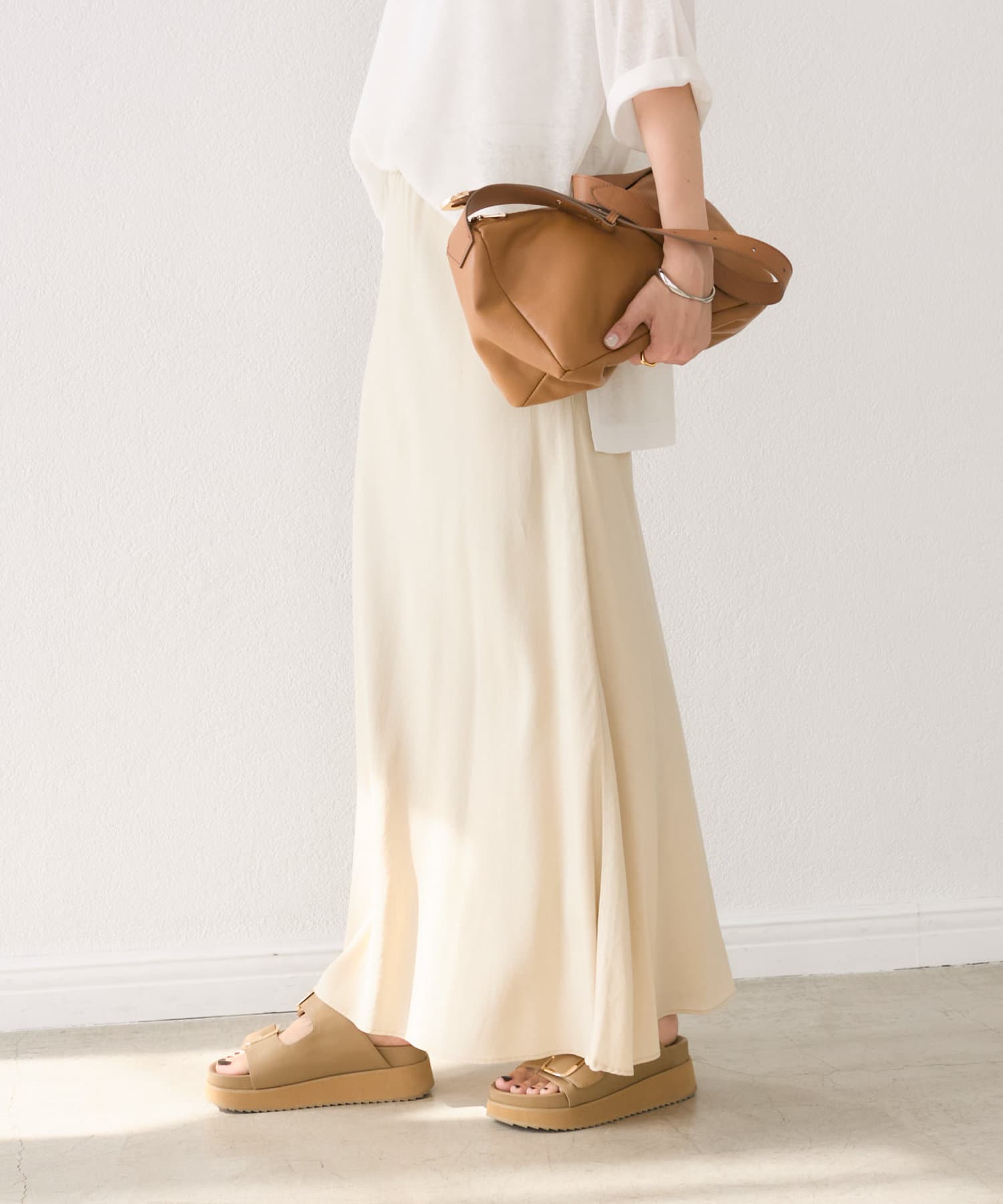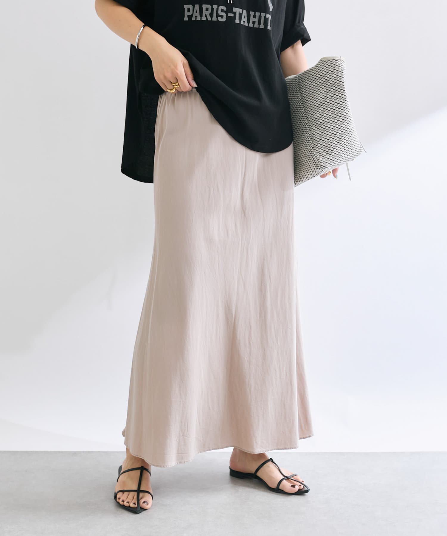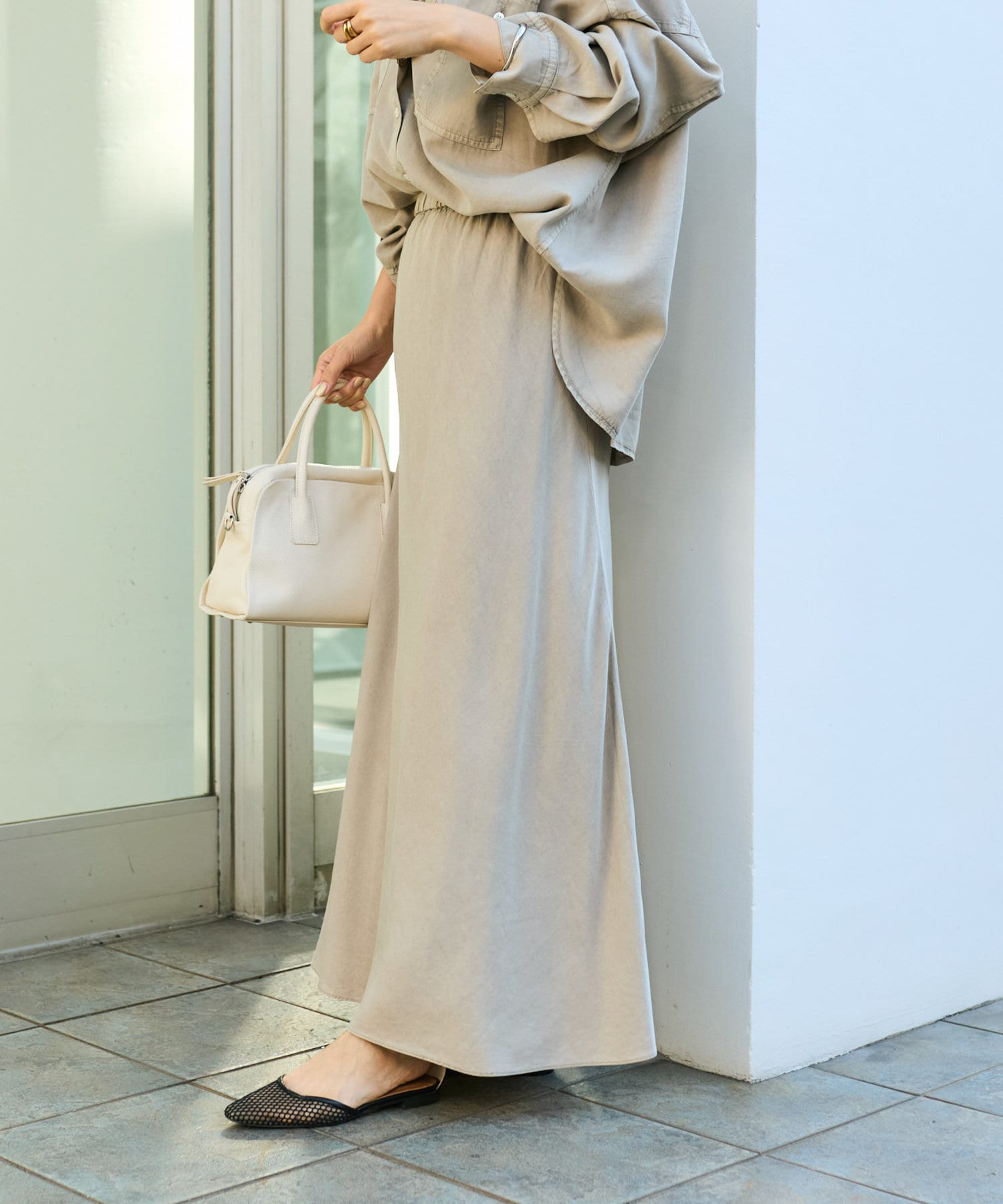 女性らしい落ち感とやわらかさが魅力のリラックススカート