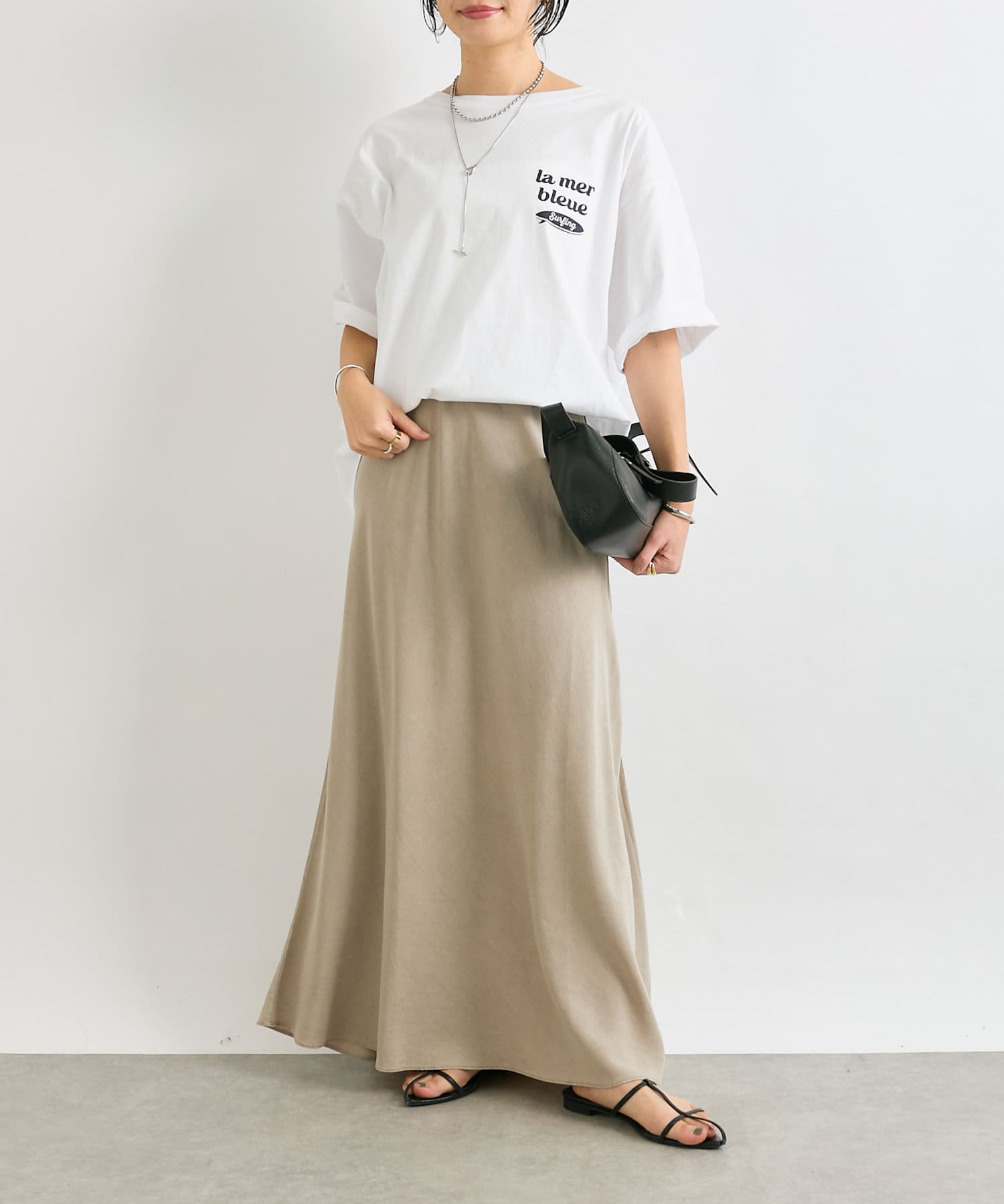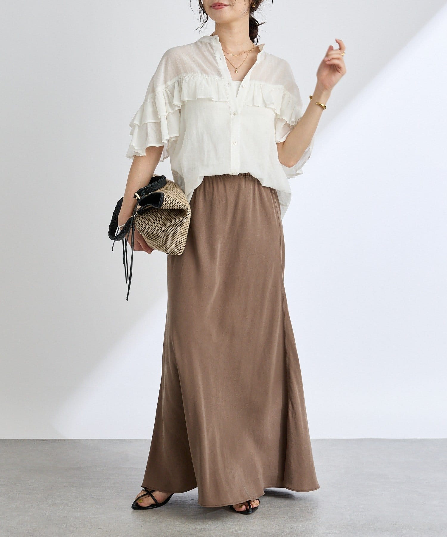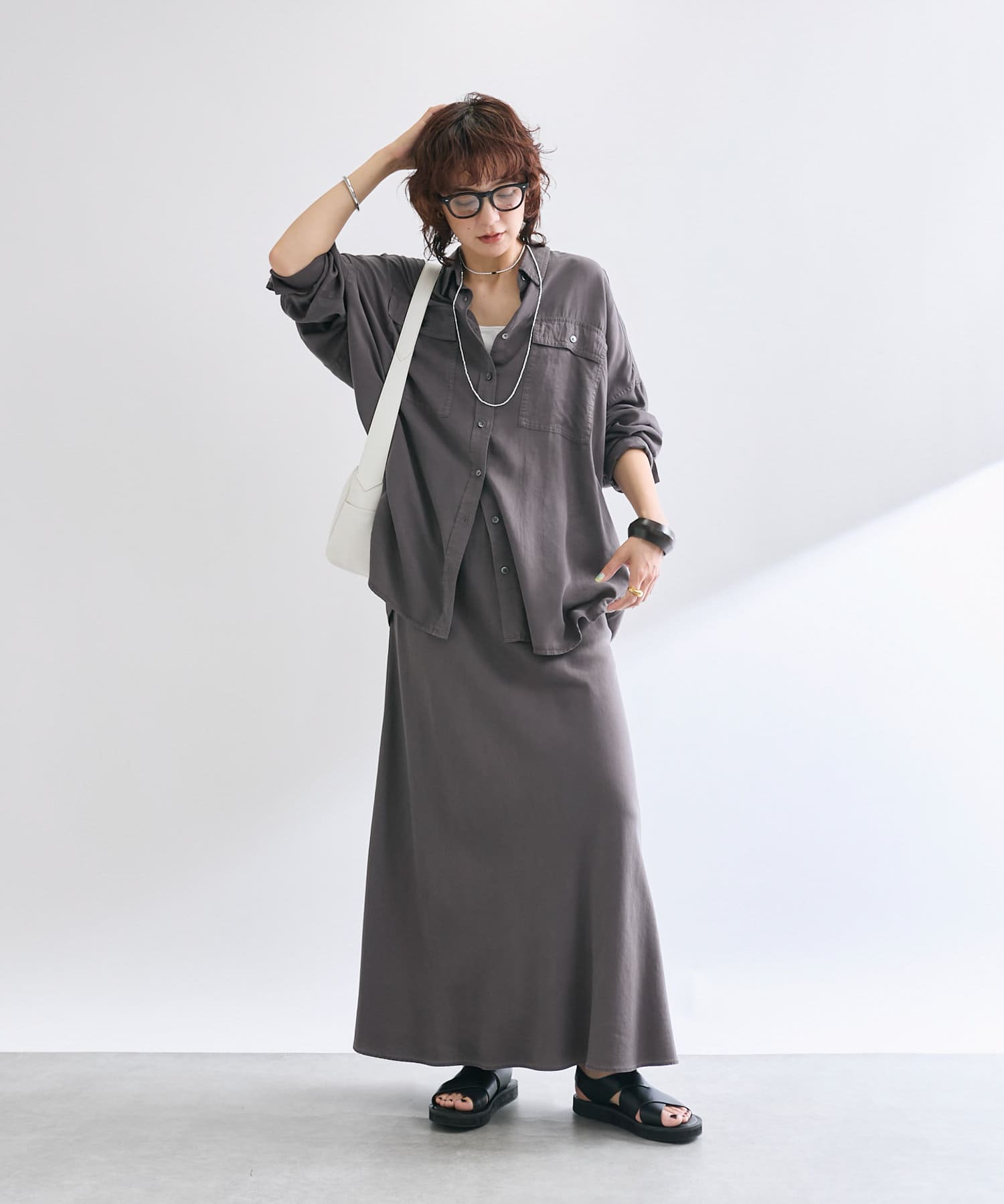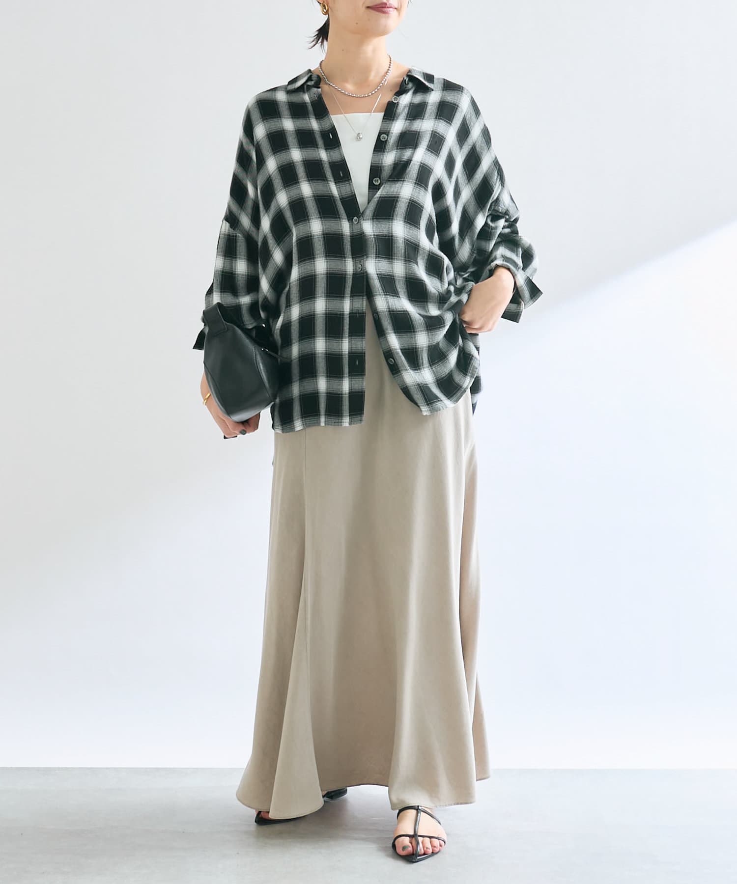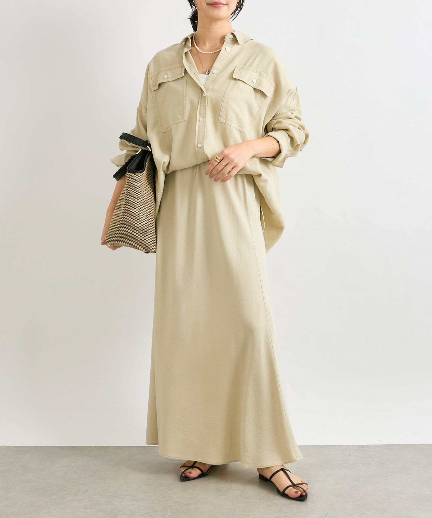 女性らしい落ち感とやわらかさが魅力のリラックススカート