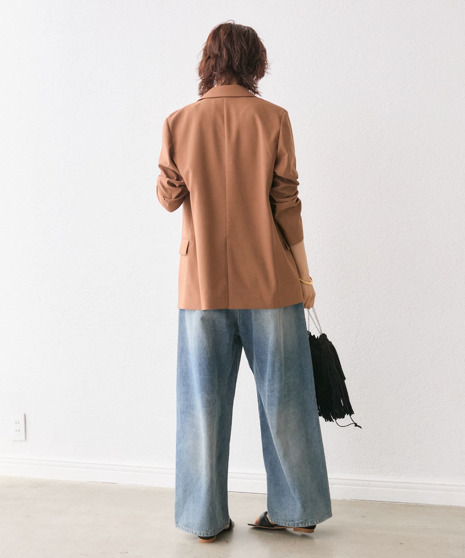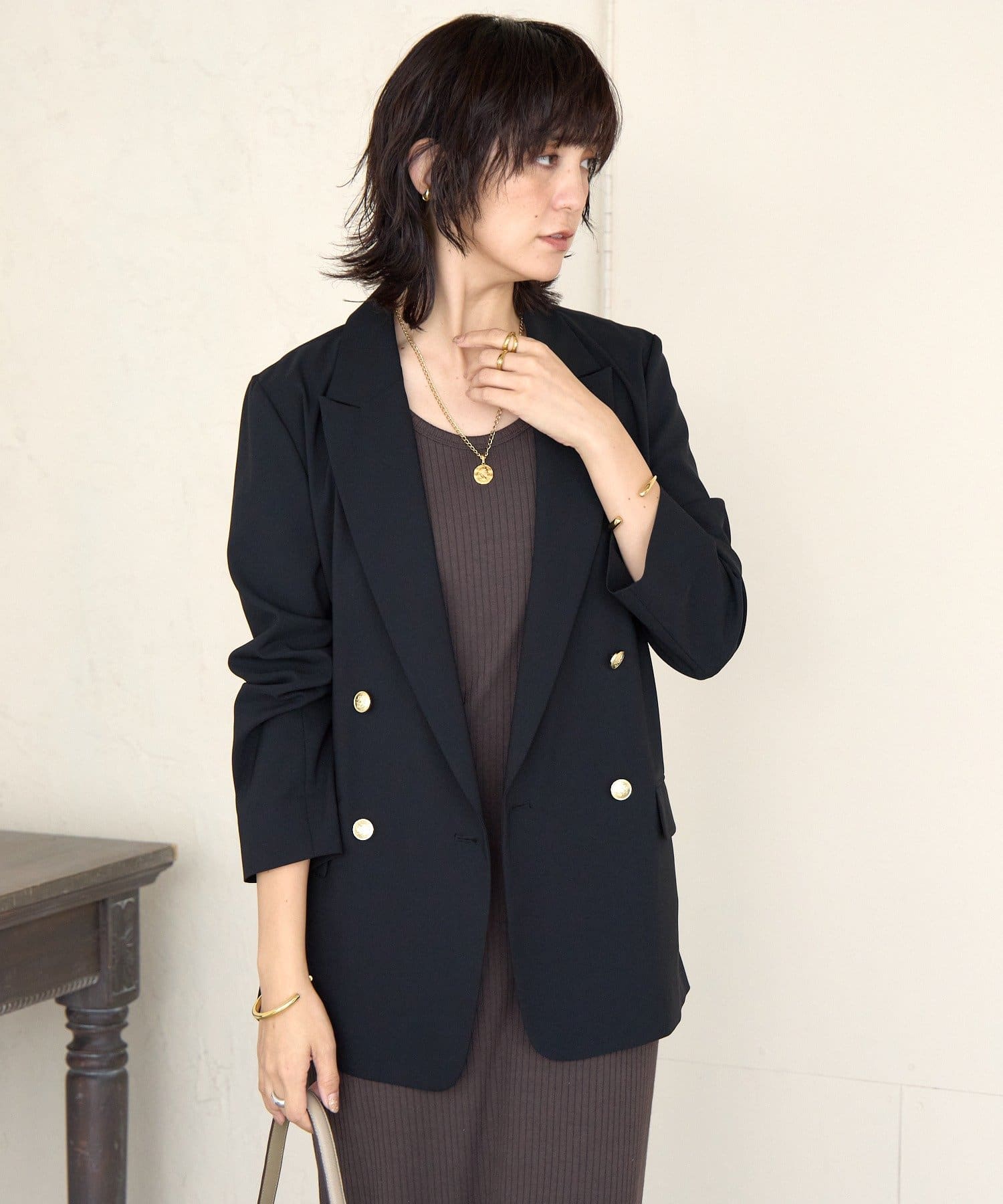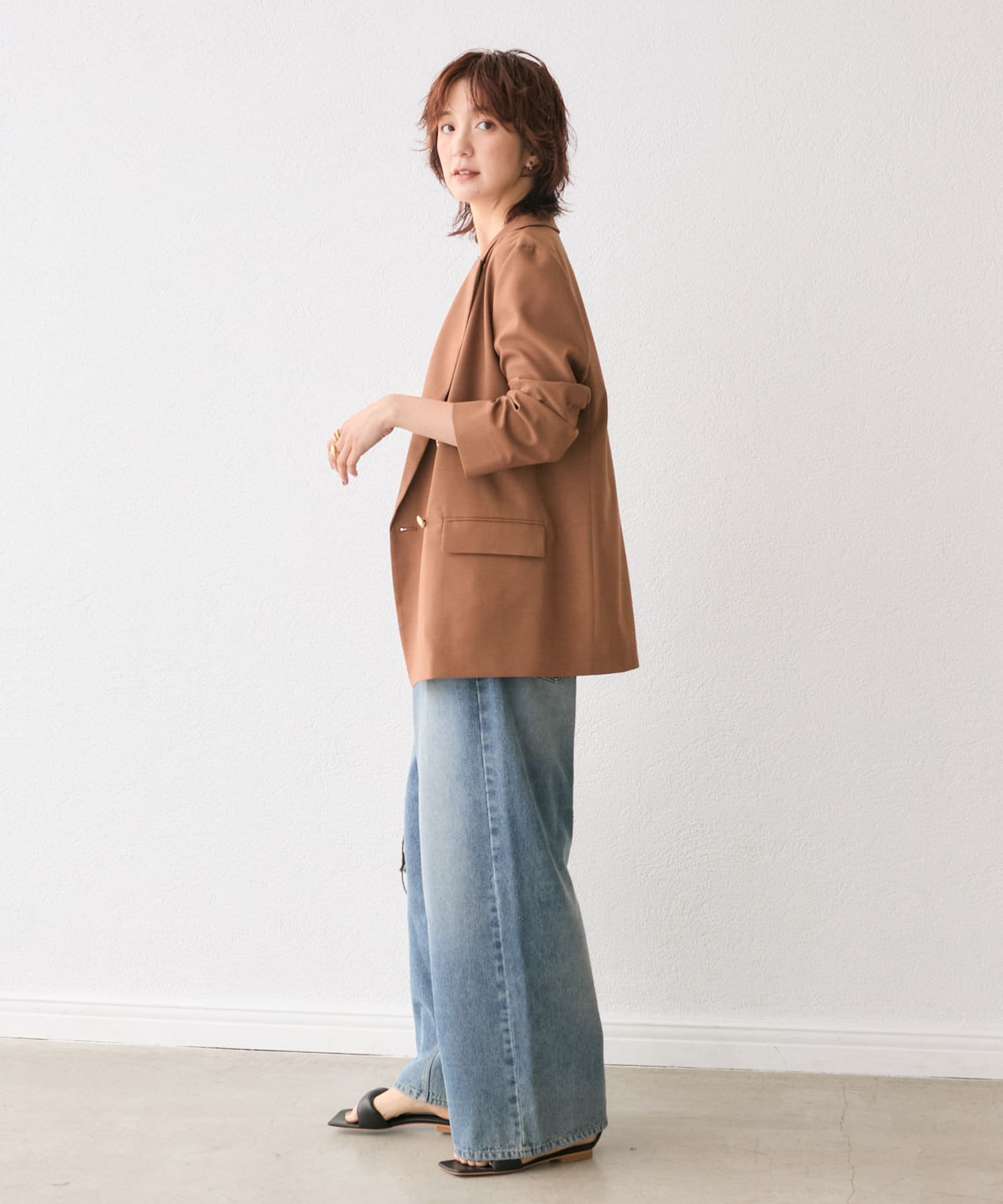 テーラードよりも華やかさのあるピークドラペルがスタイルを格上げしてくれるアイテムです。