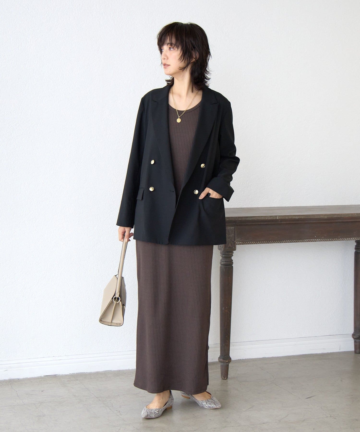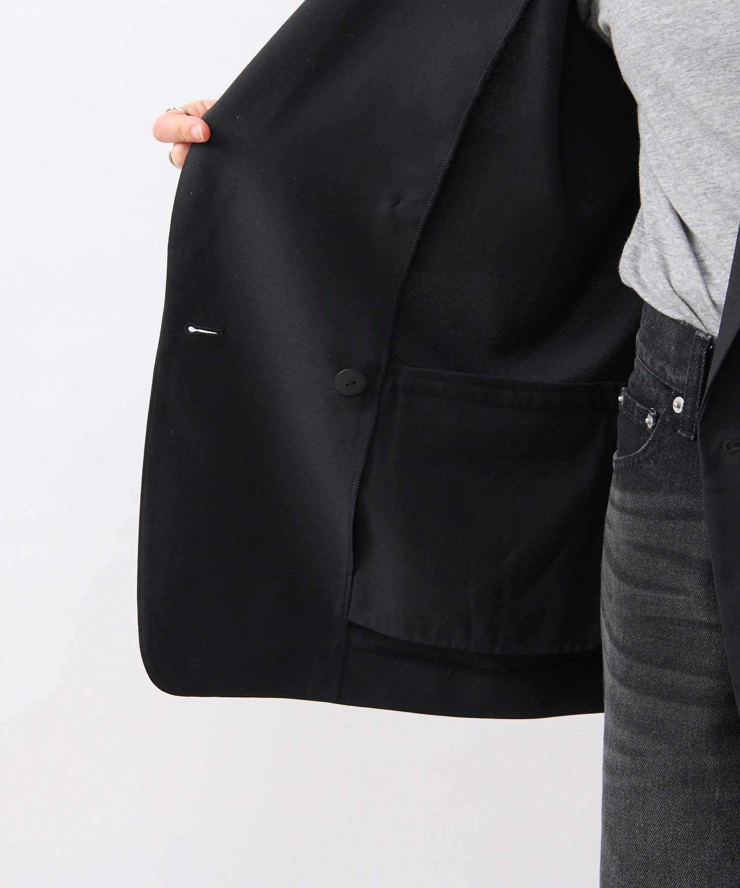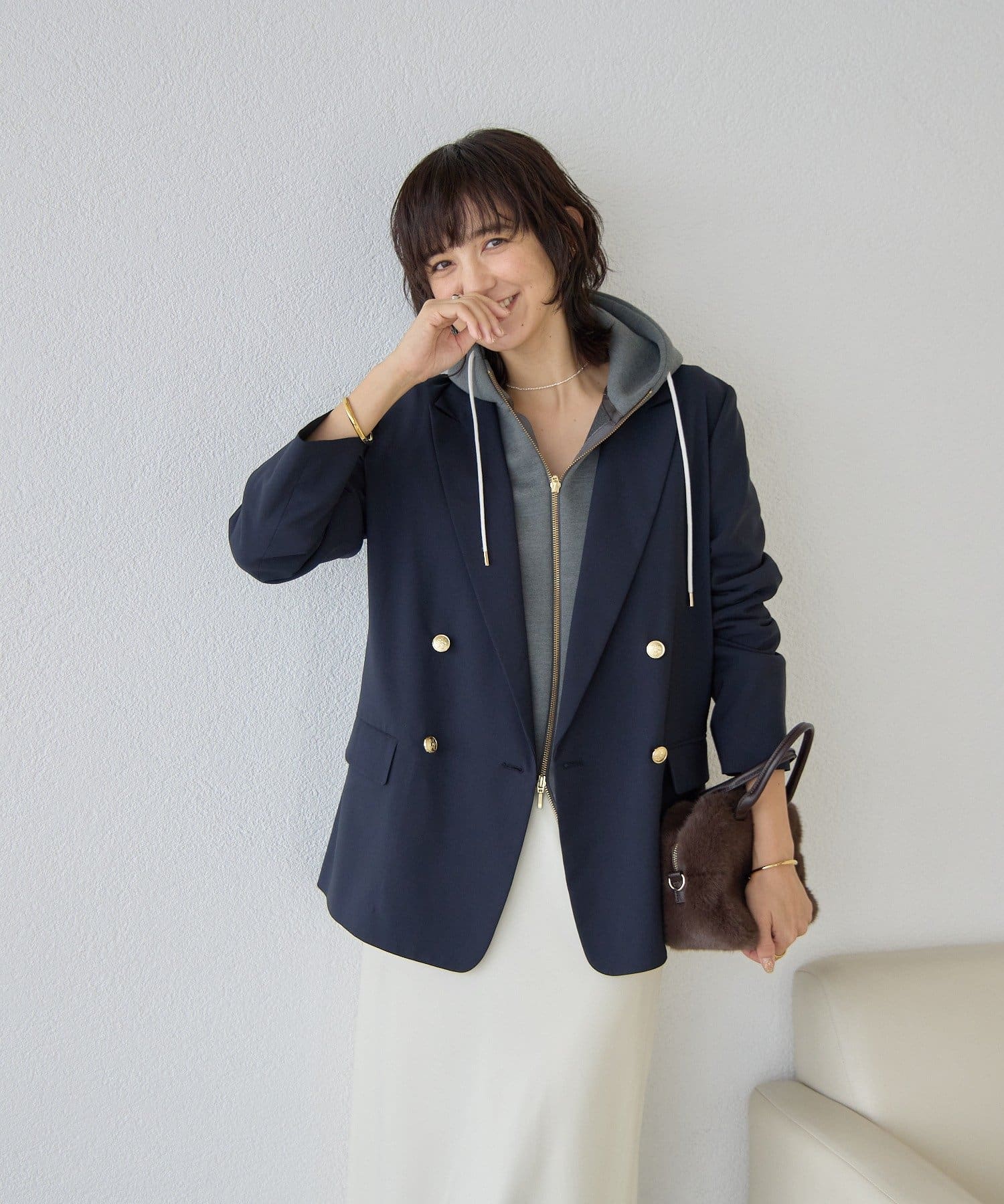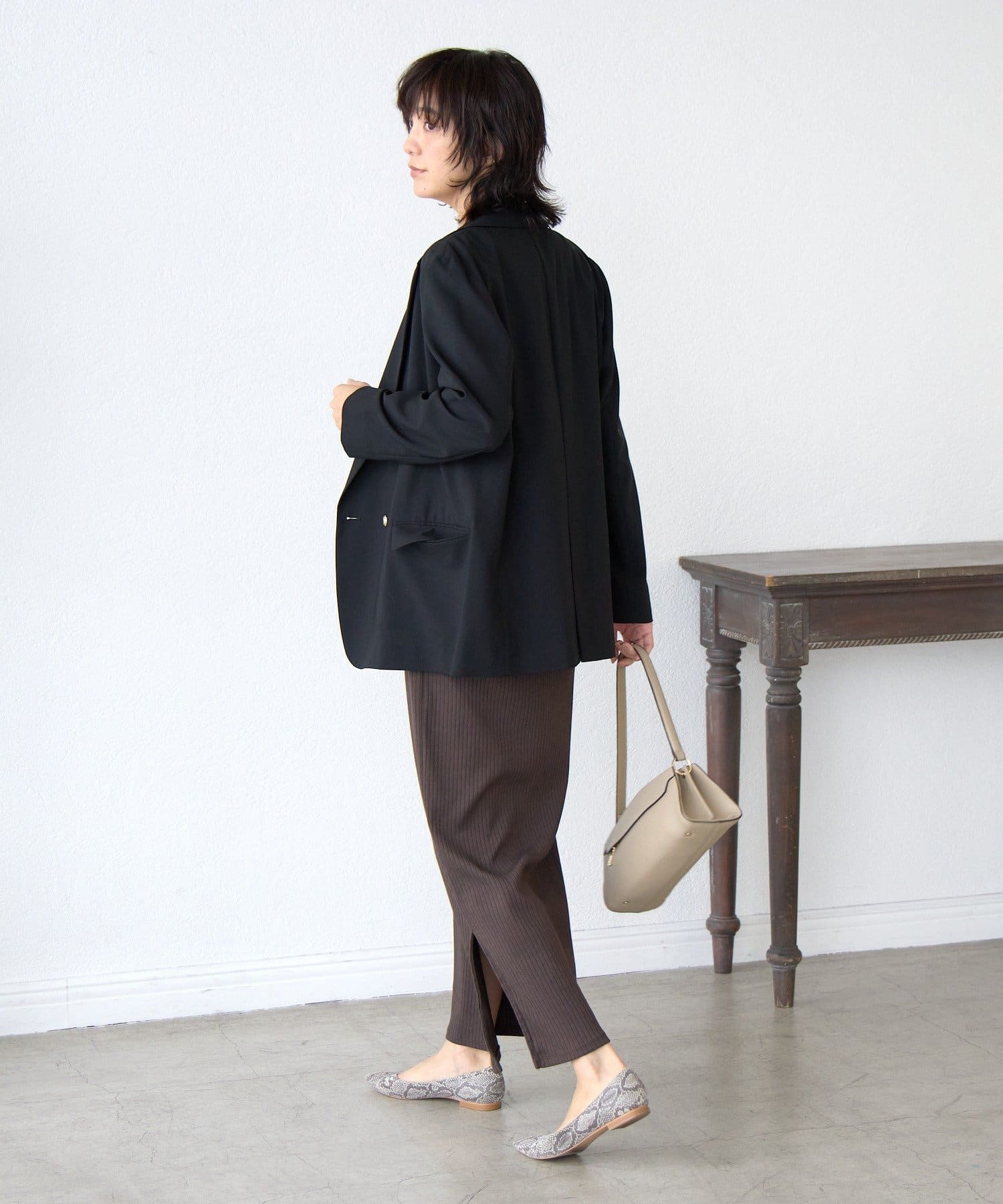 テーラードよりも華やかさのあるピークドラペルがスタイルを格上げしてくれるアイテムです。