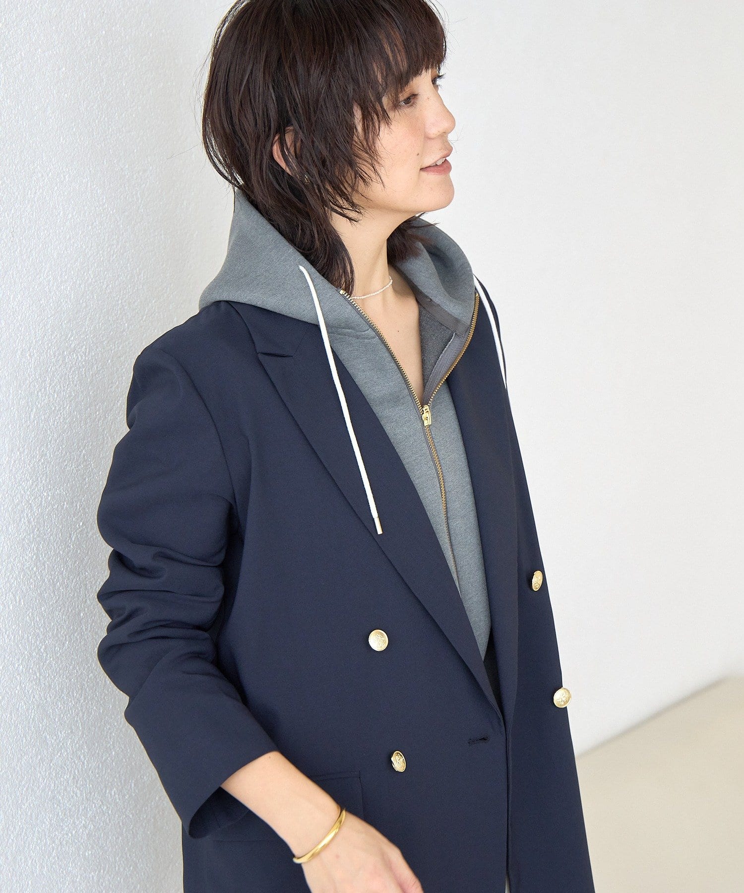 着心地の良さとスッキリ見えするシルエットが人気のピークドラペルジャケット。