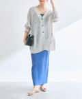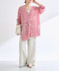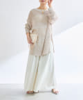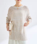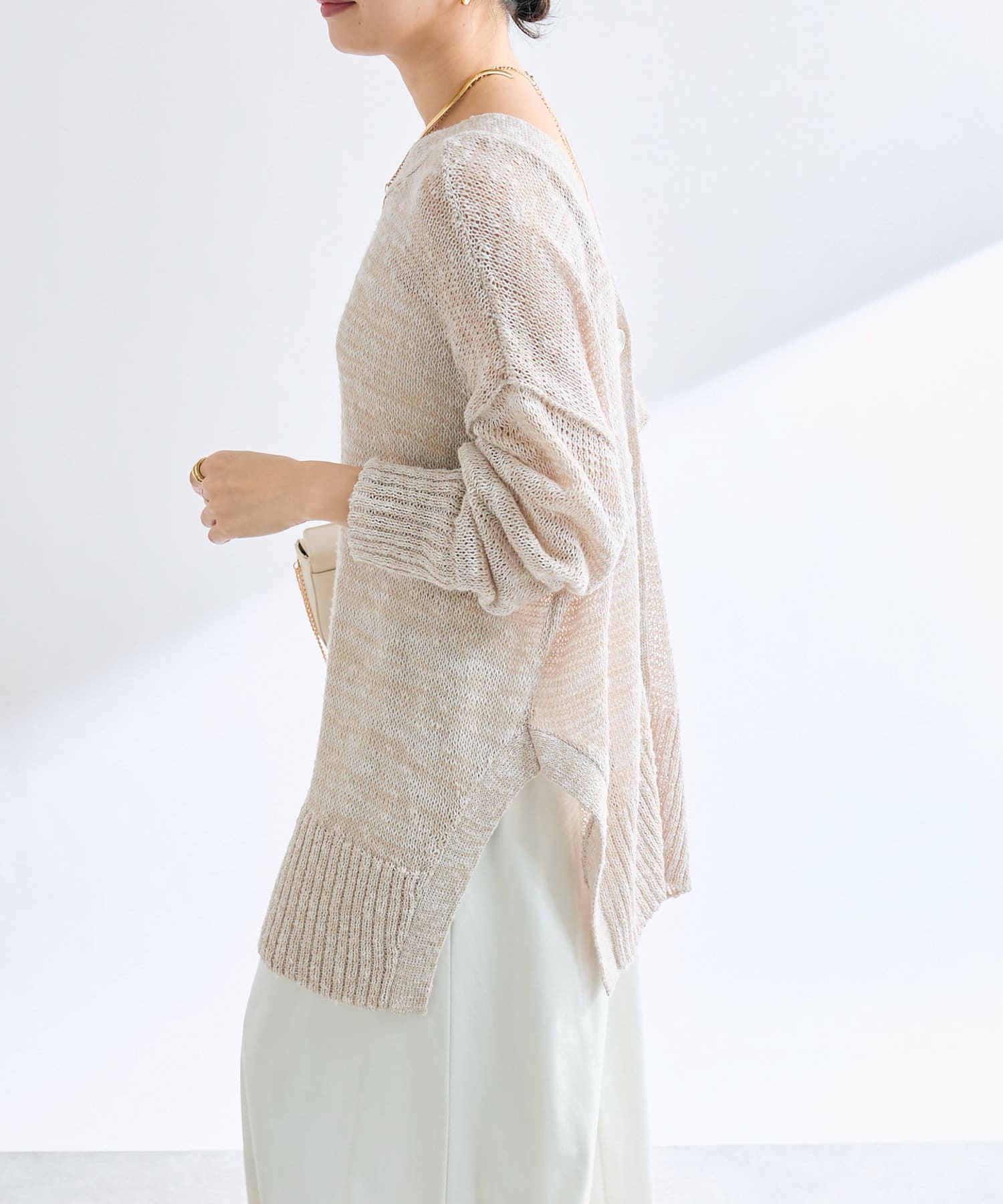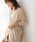 スラブが生み出す自然な凹凸感に、ギマ糸とペーパーヤーンの清涼感がミックスされソフトで軽やかな着心地に。