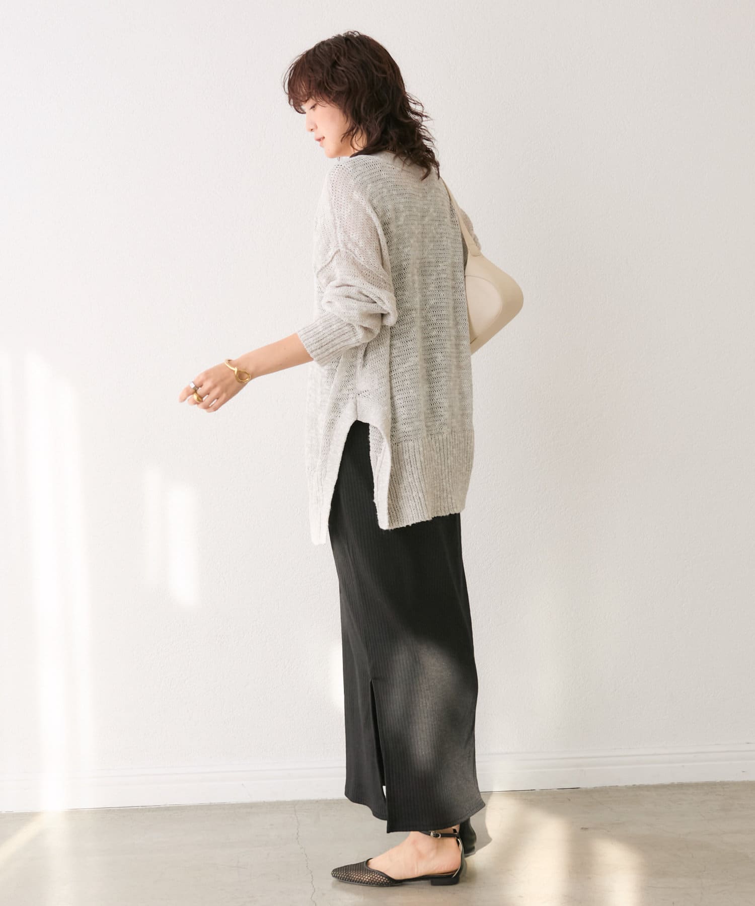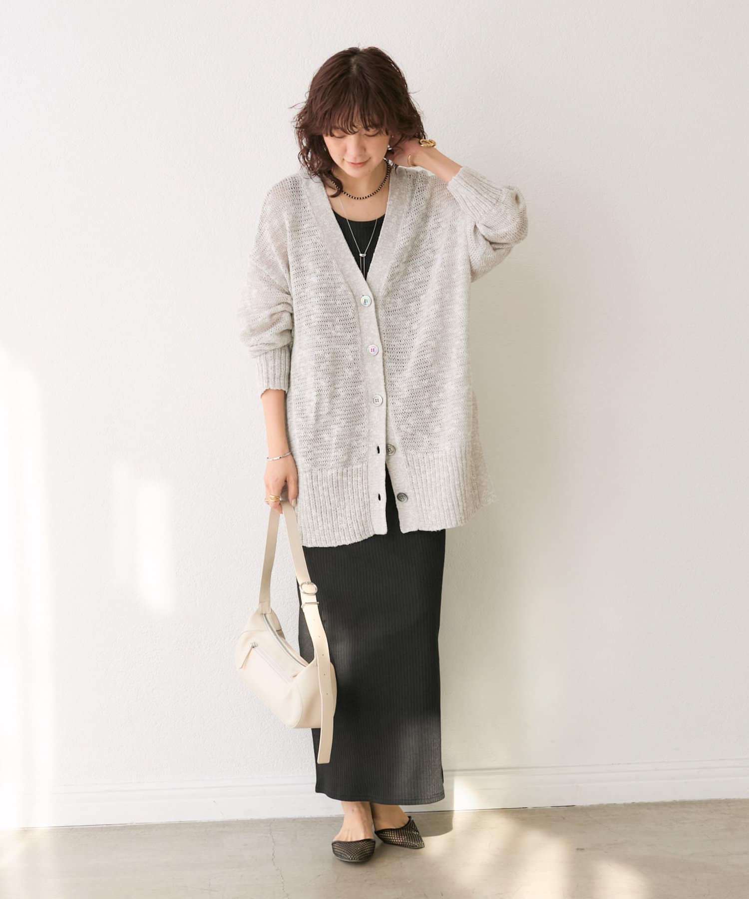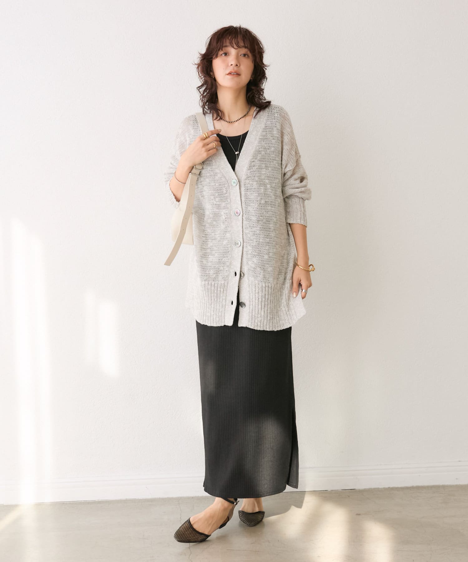 ヌケ感シルエットと2WAY着用可能な着回し力で人気のサイドスリットカーデ。