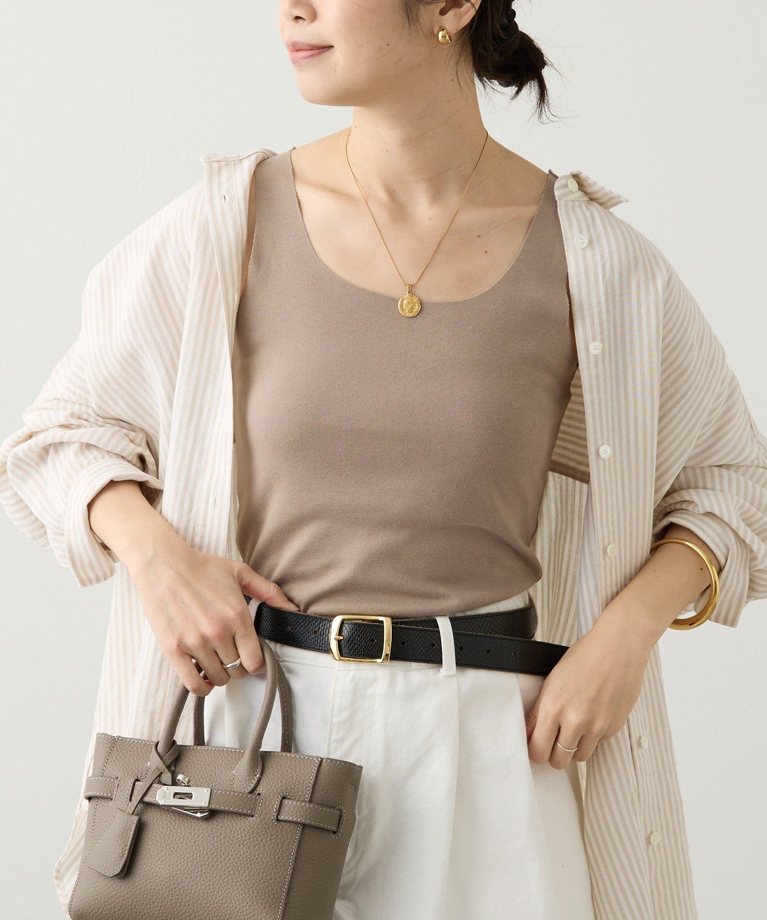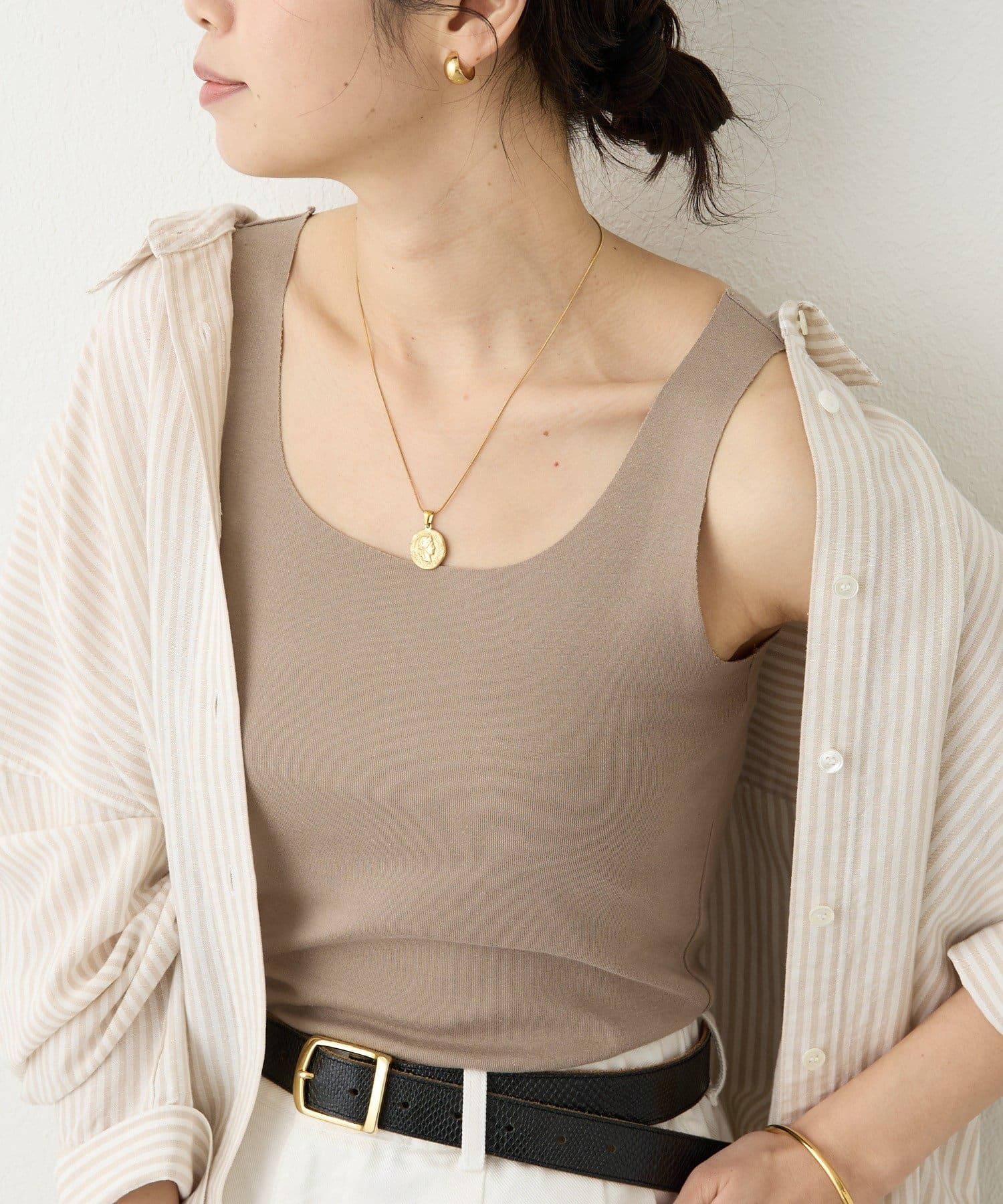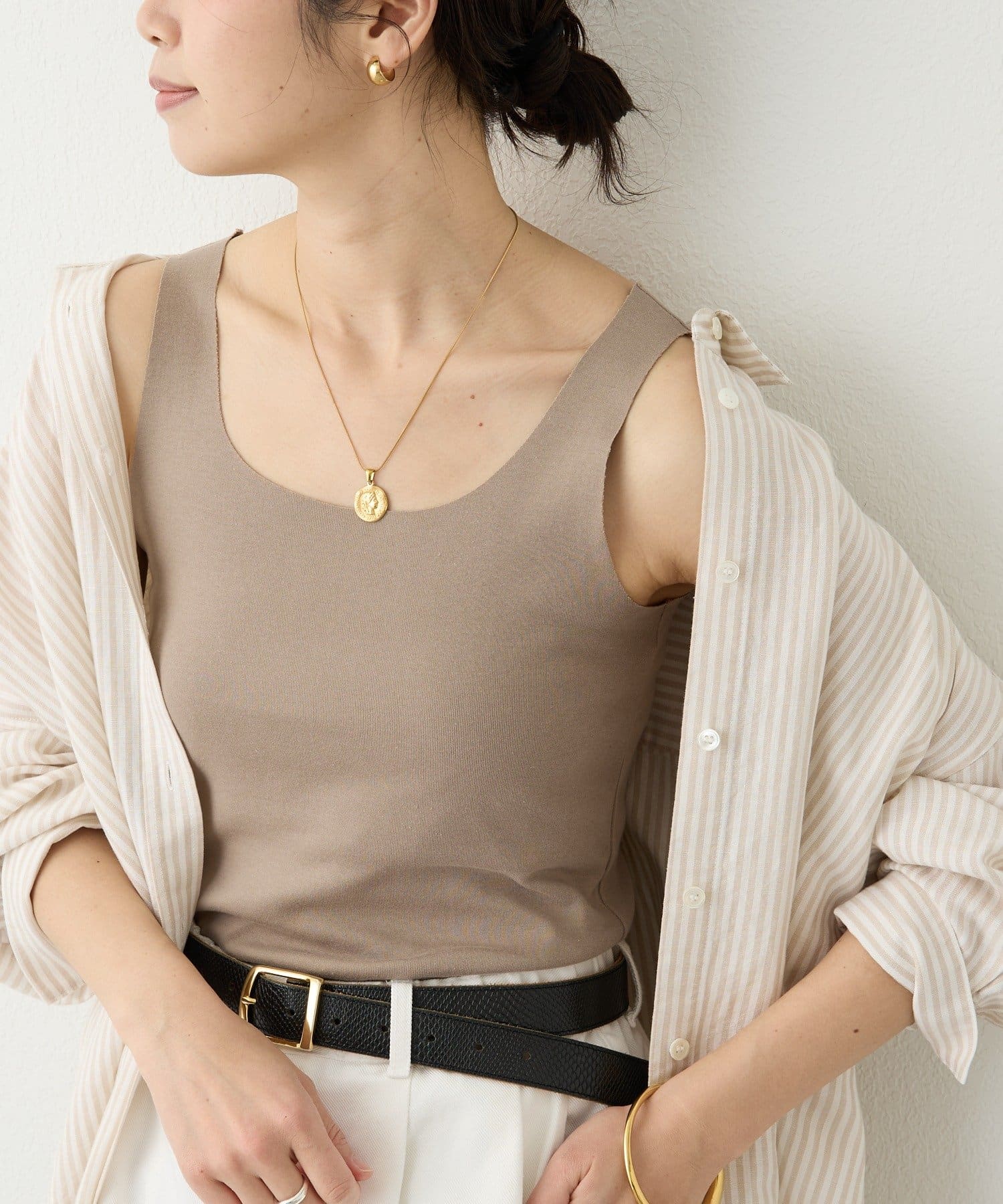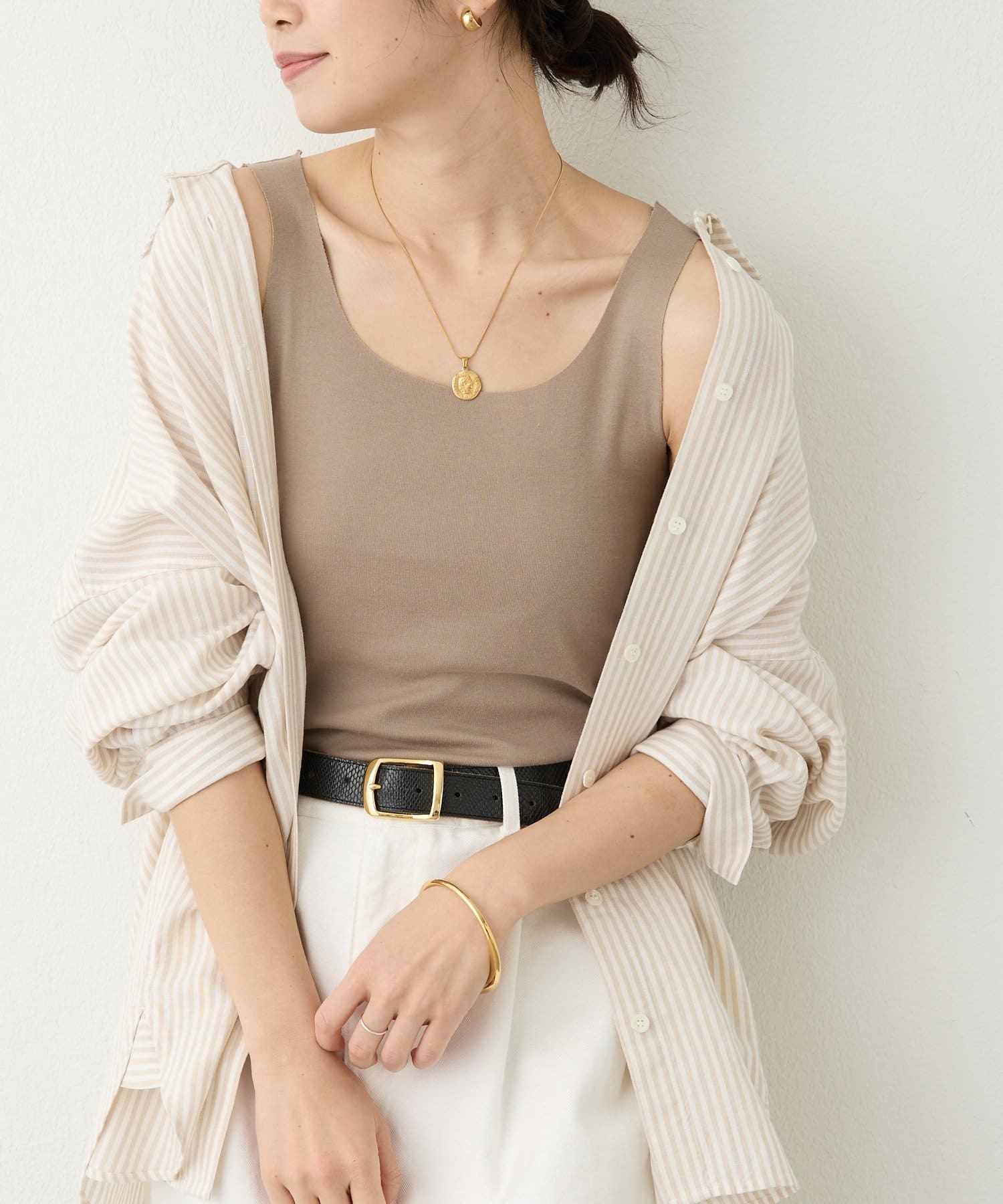 カットオフ仕様で身体に馴染み、薄手のブラウスもアタリを気にせずきれいに着用いただける優秀アイテム。 シアー素材とレイヤードしても品よくまとまる絶妙なくすみカラーも使い勝手が良く、用途に合わせて色違いで揃えておくのもオススメです。
