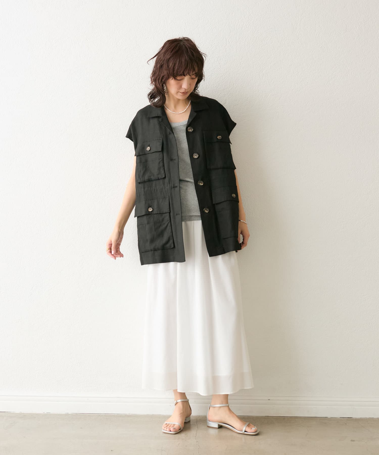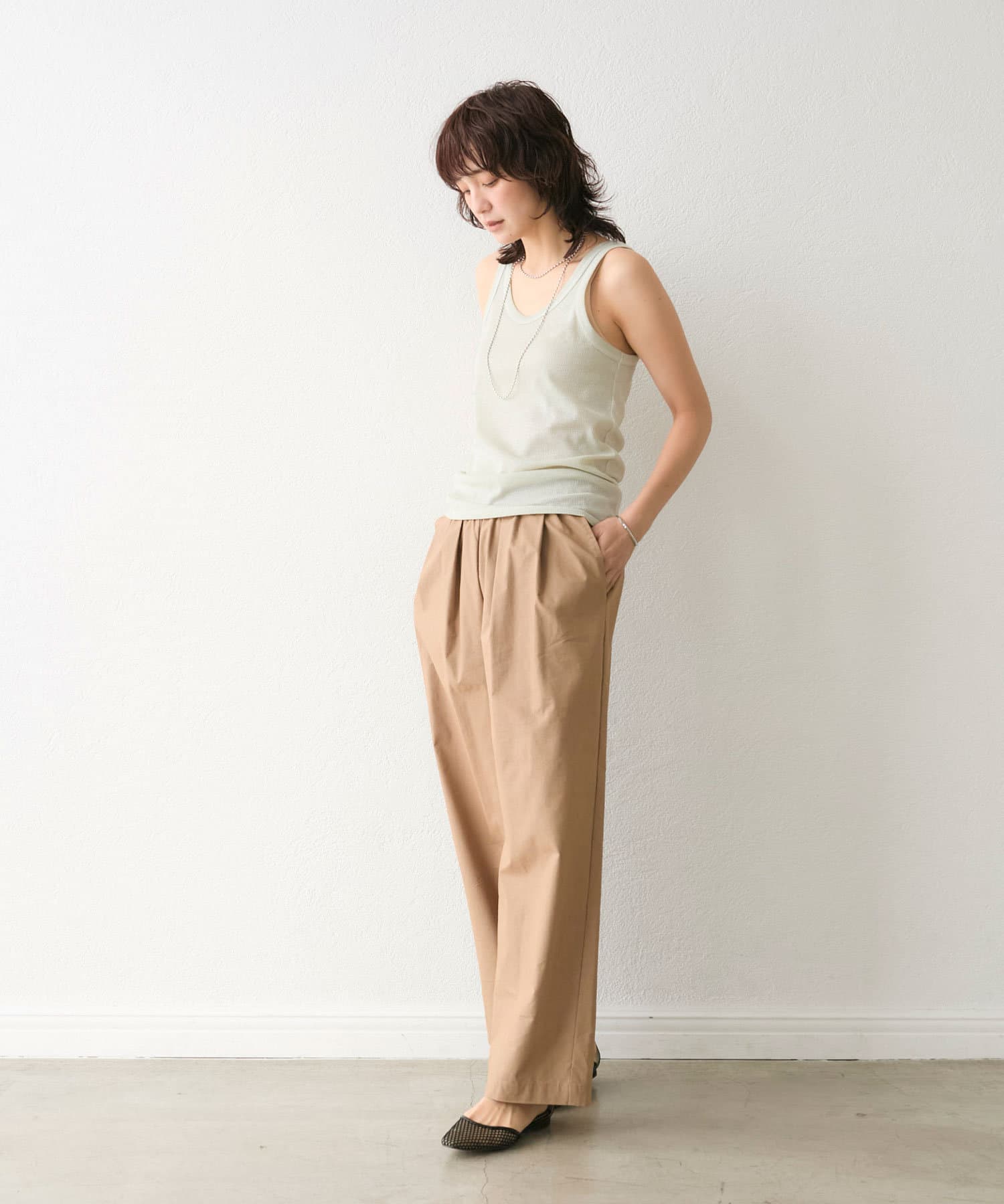 すっきりとしたシルエットでシャツやニットの間から覗かせたり、