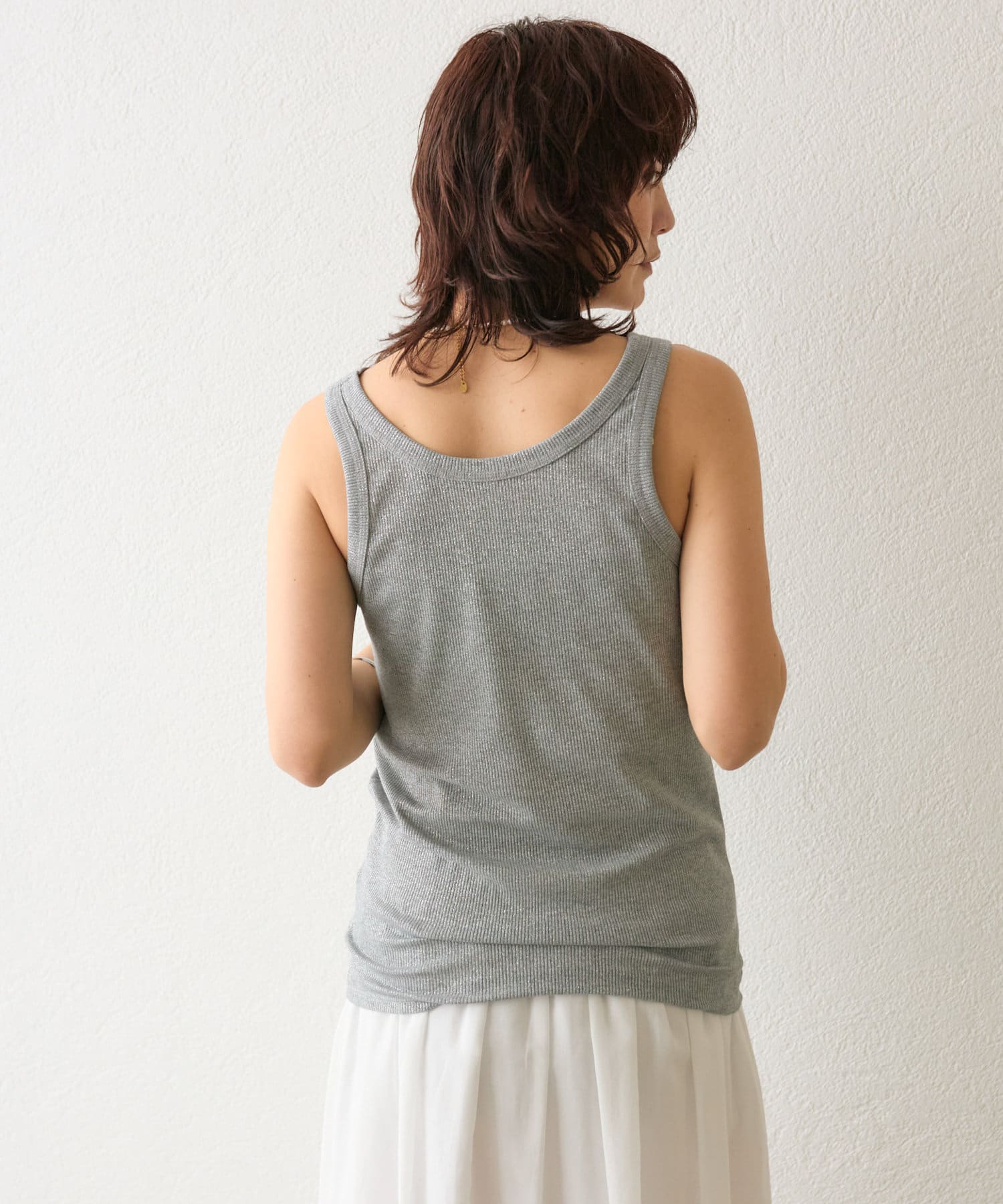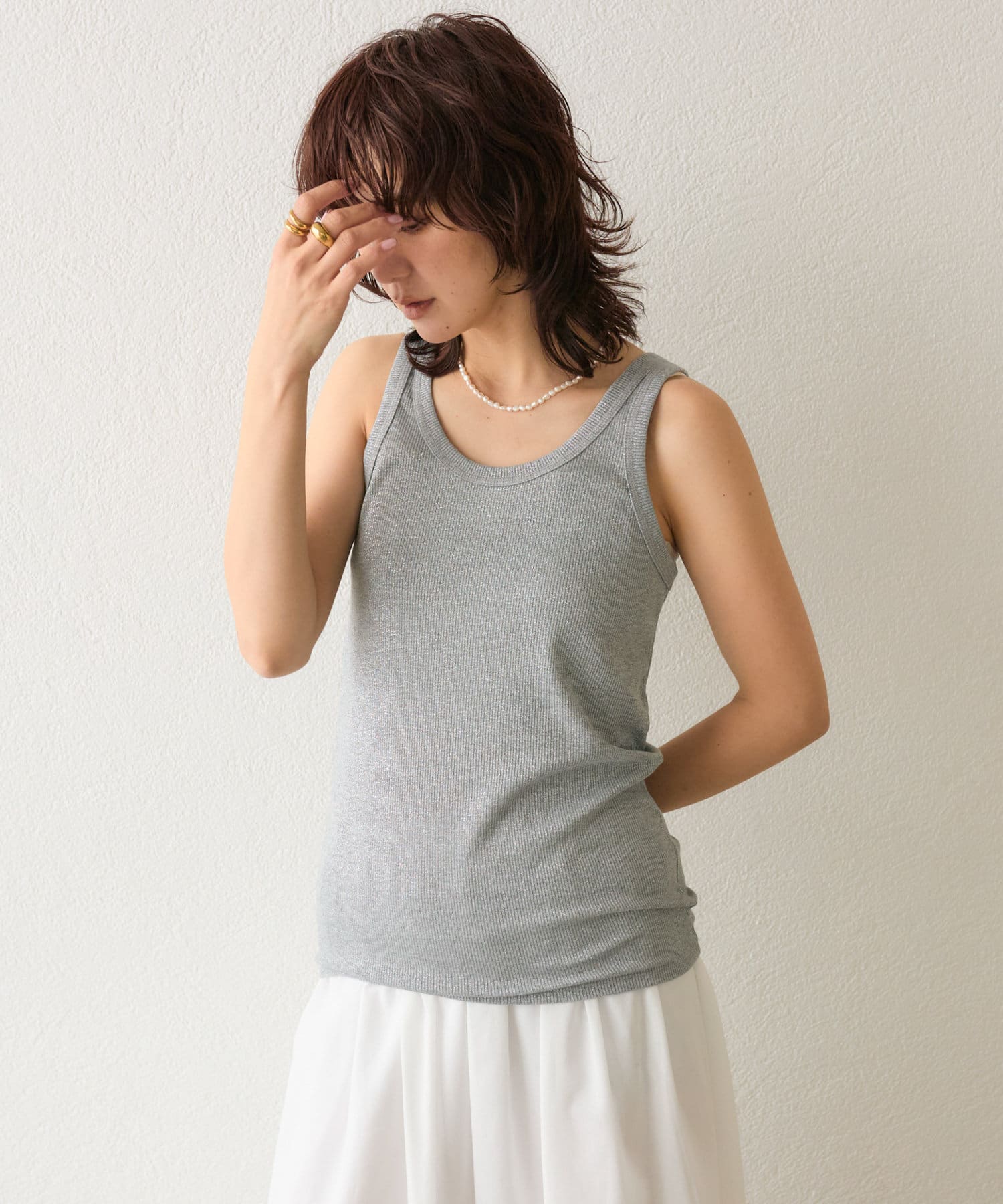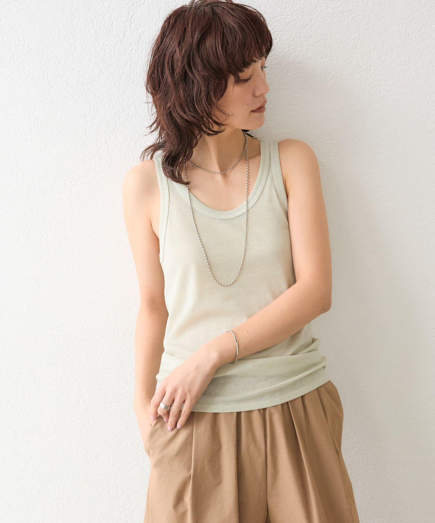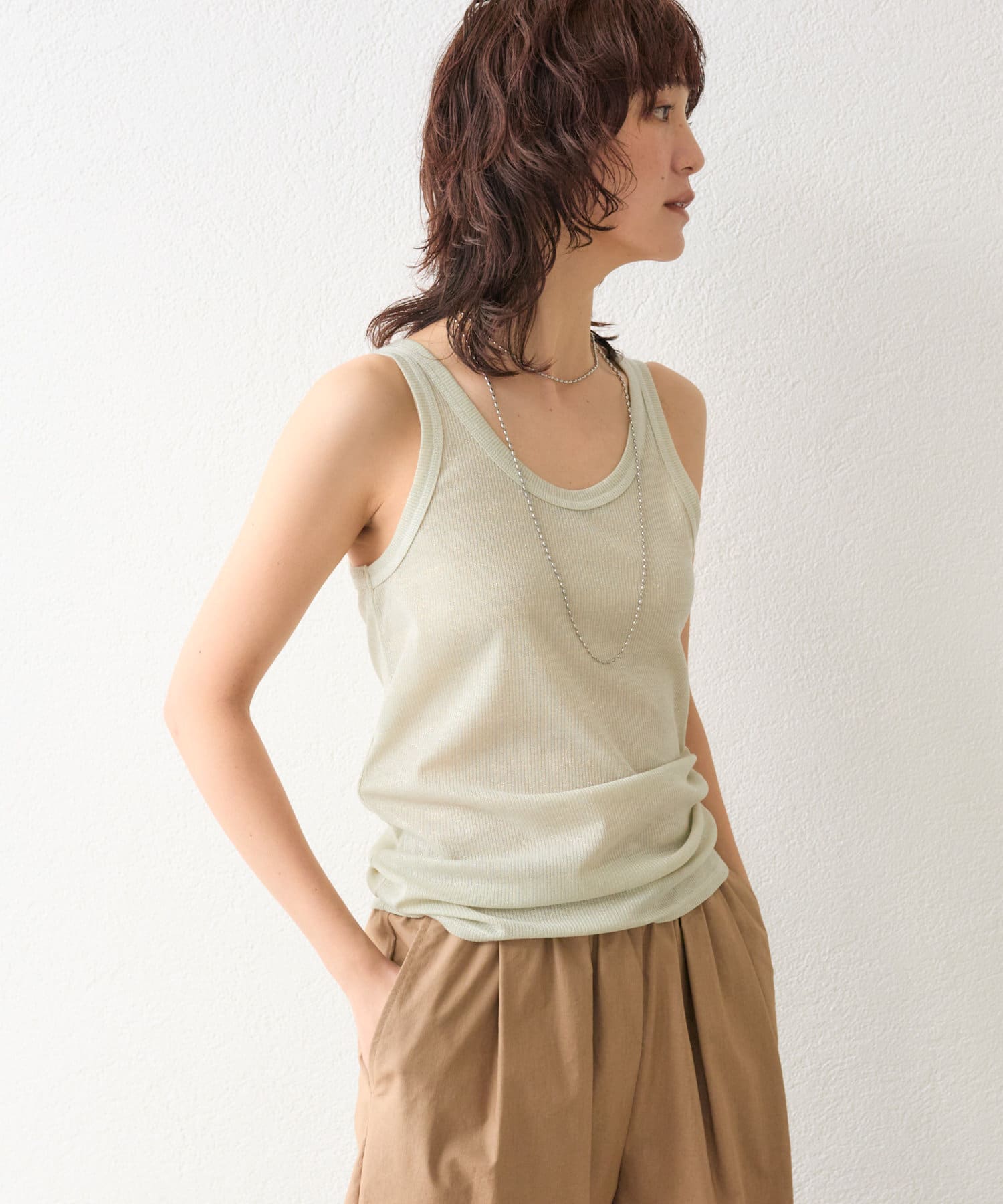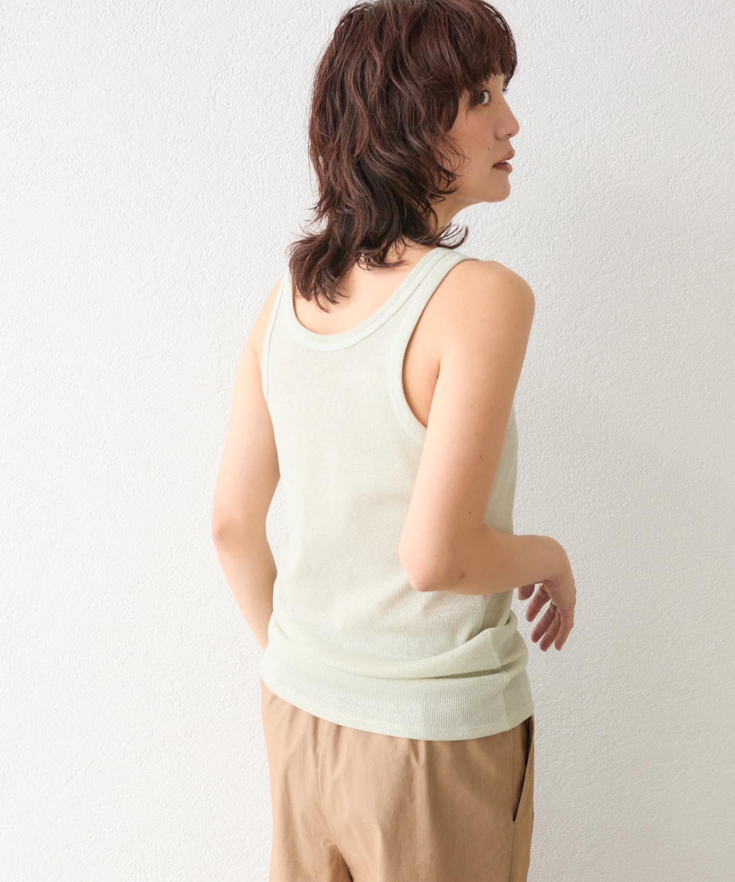 昨年好評だった華やかなラメ素材が編み込まれたタンクトップ。