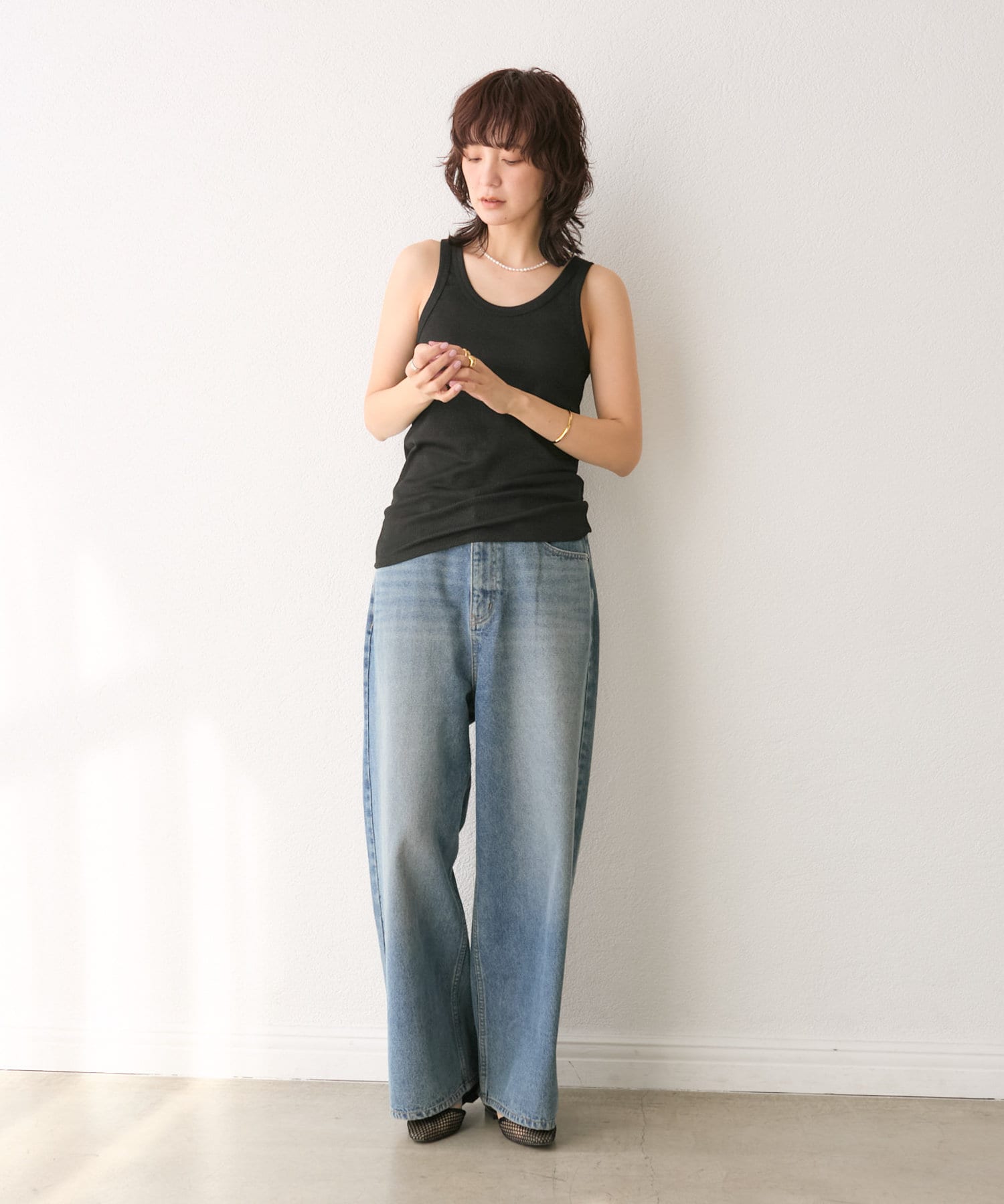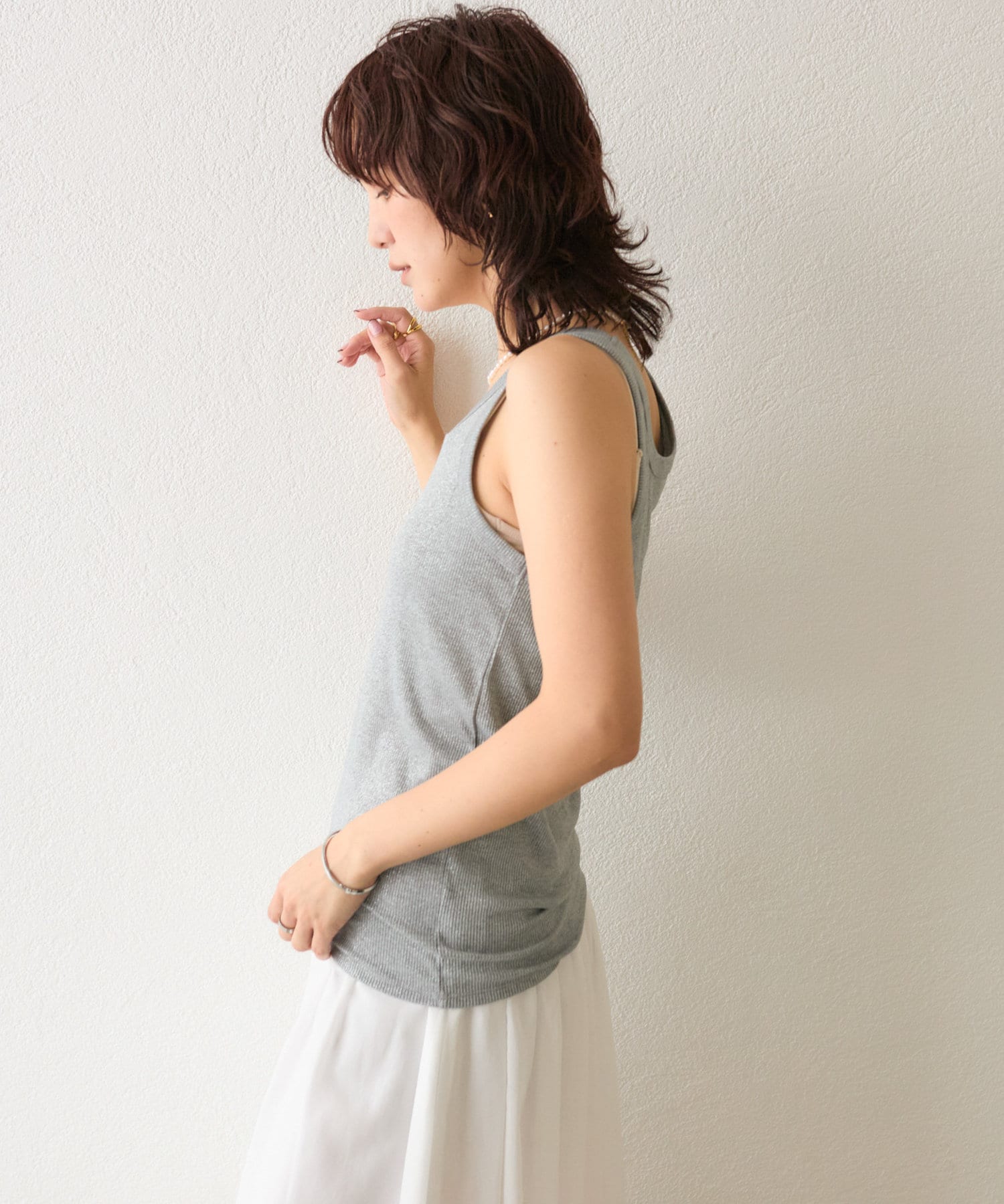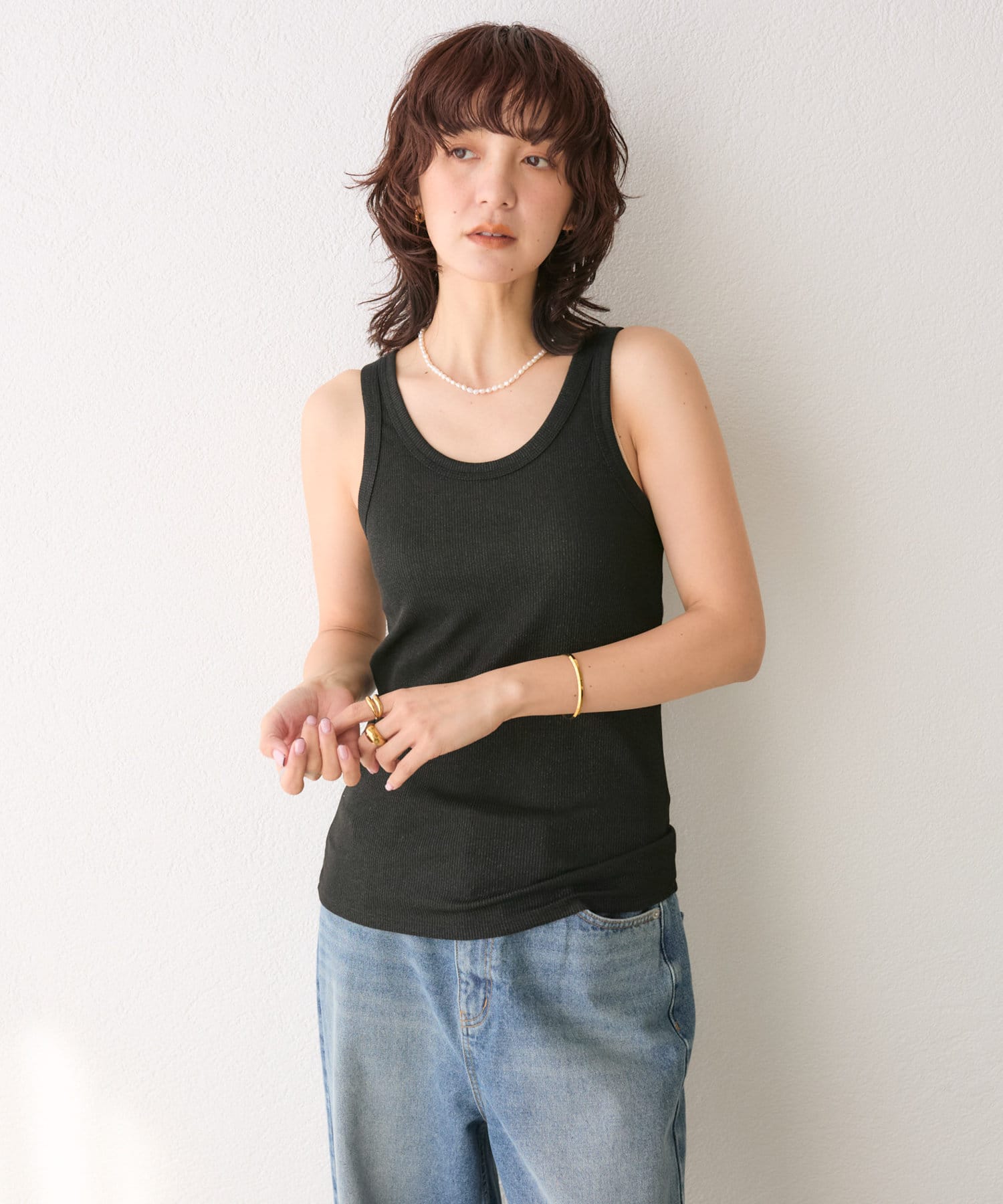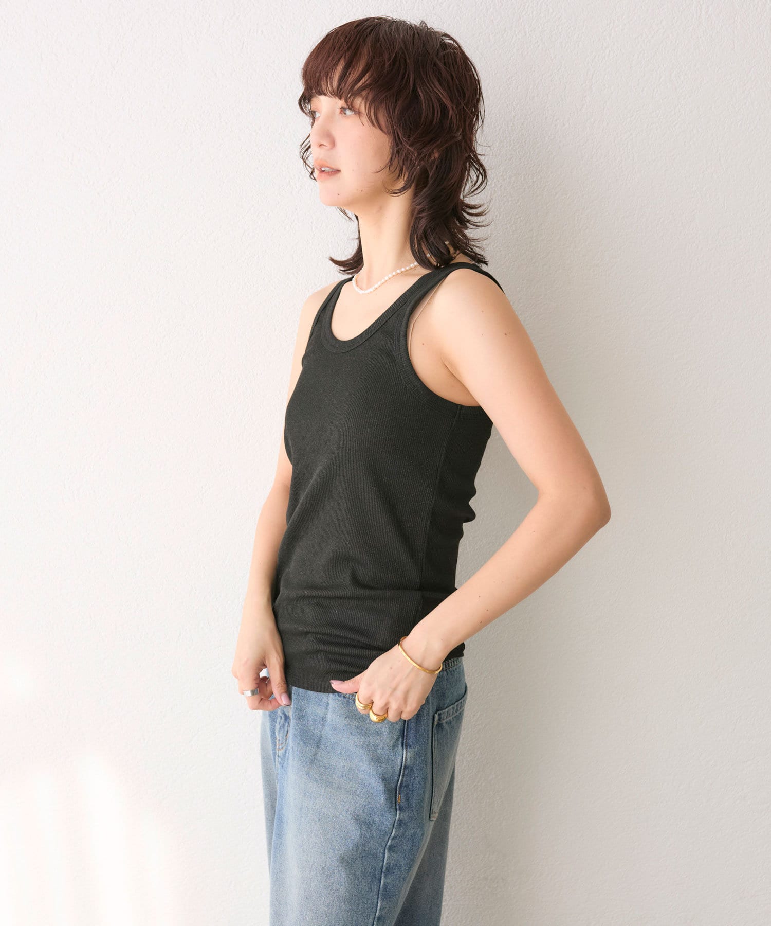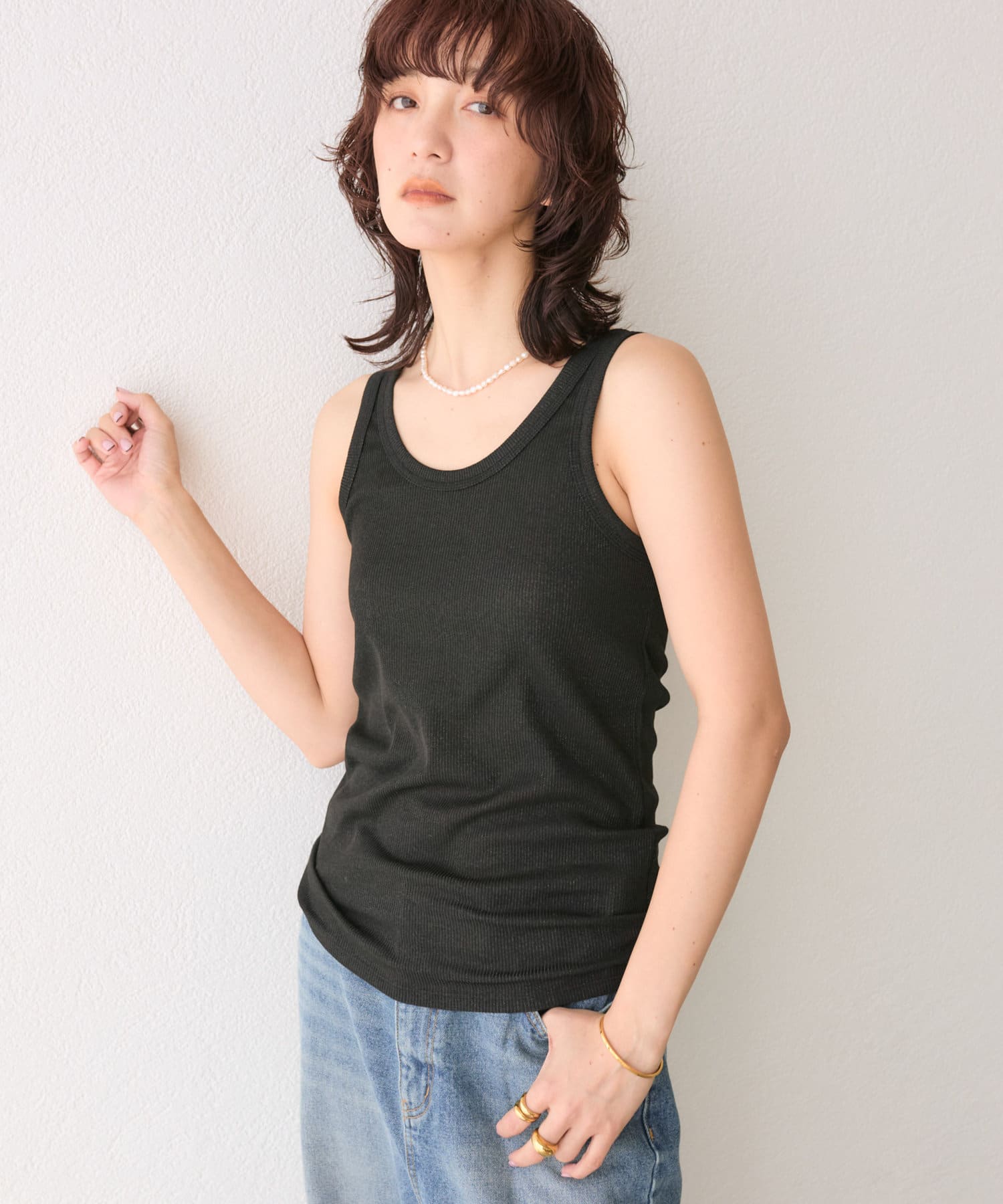 昨年好評だった華やかなラメ素材が編み込まれたタンクトップ。
