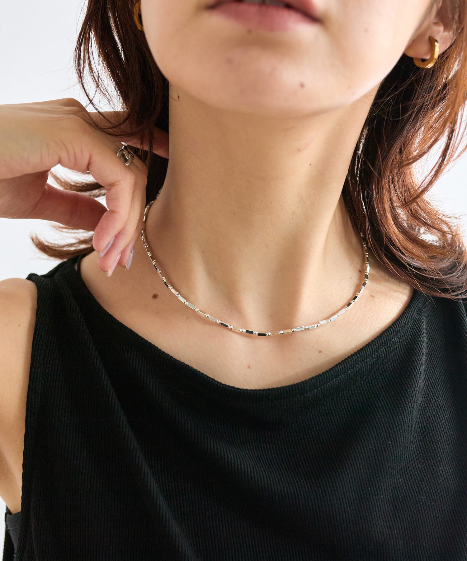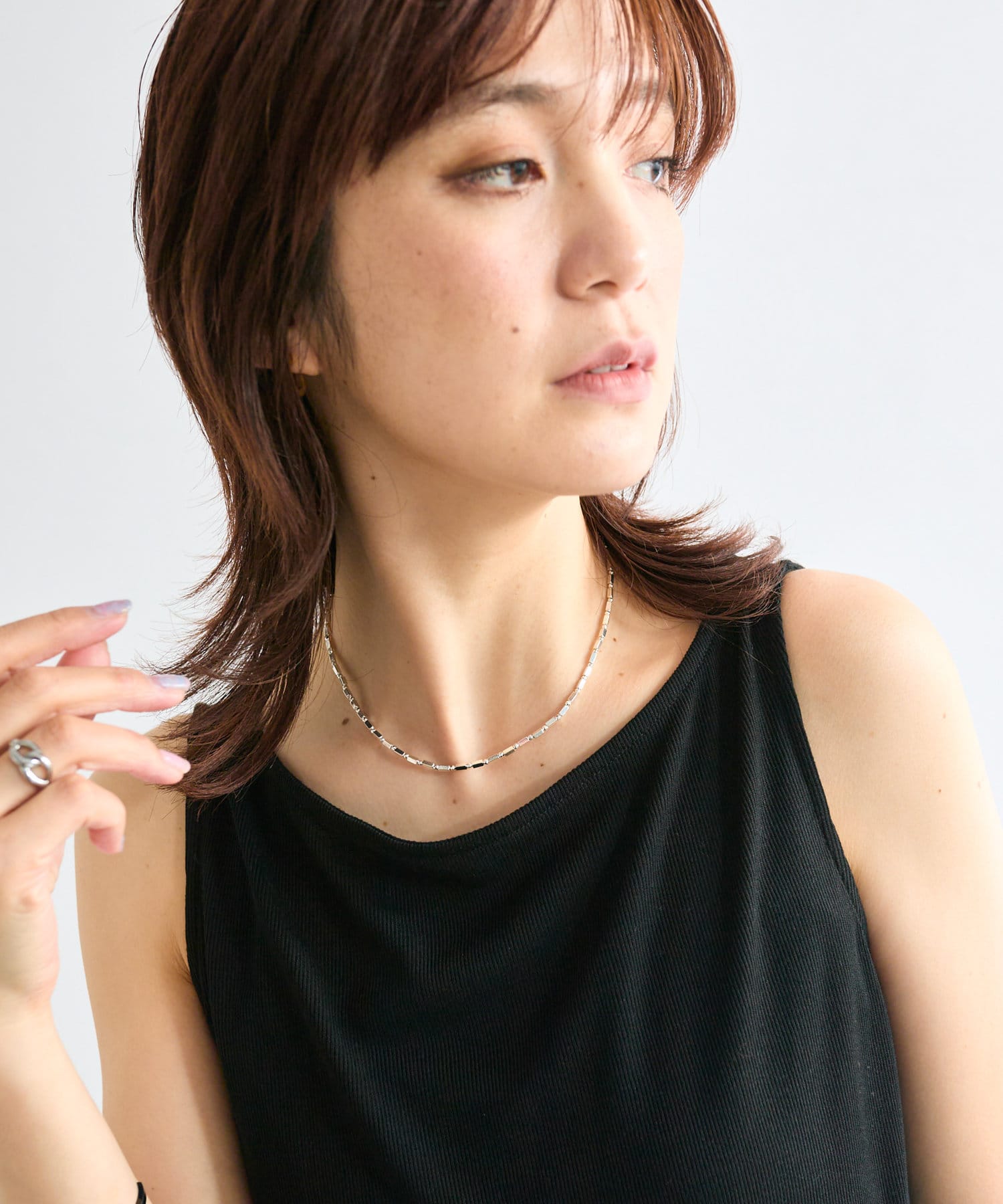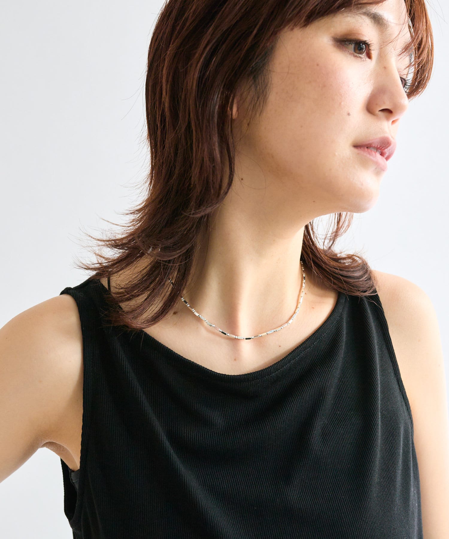 ショート丈が首周りのアクセントに効果抜群◎