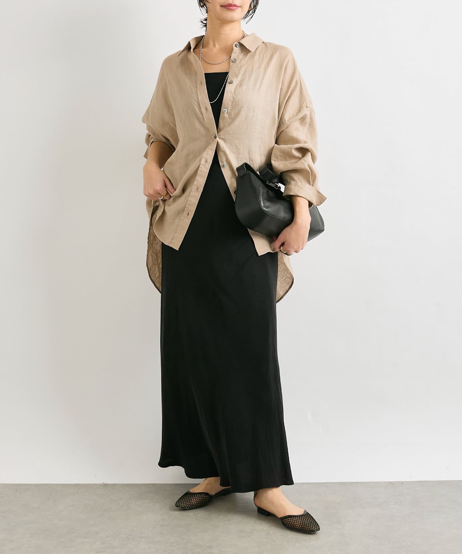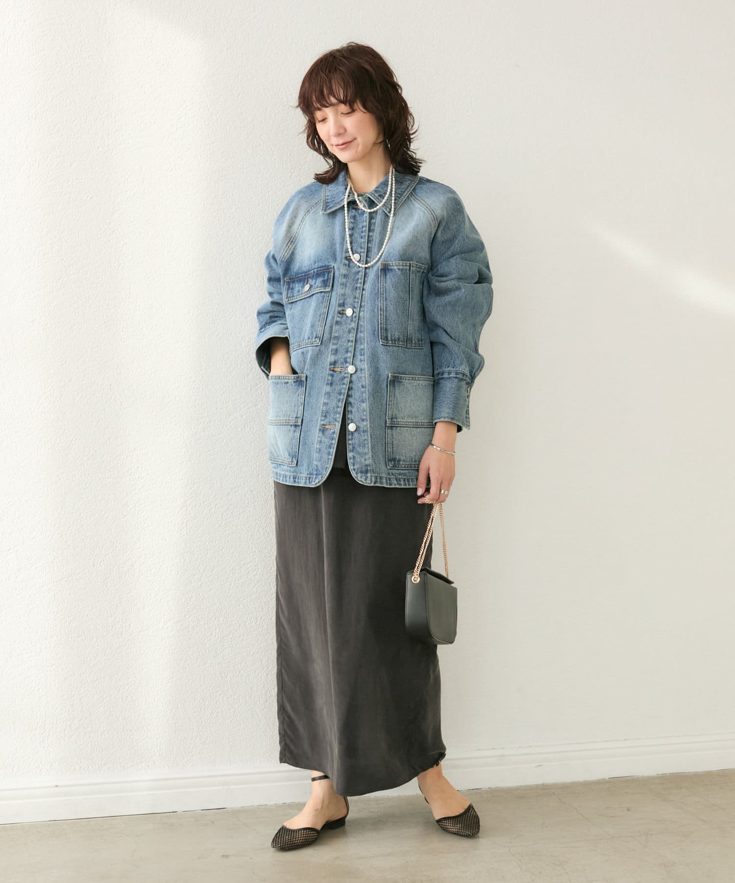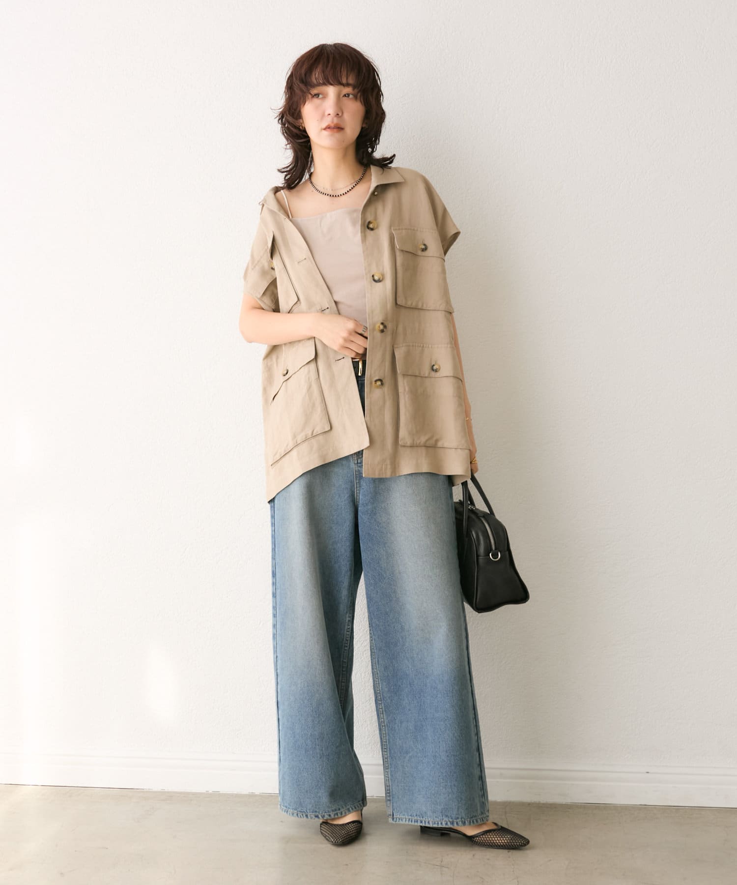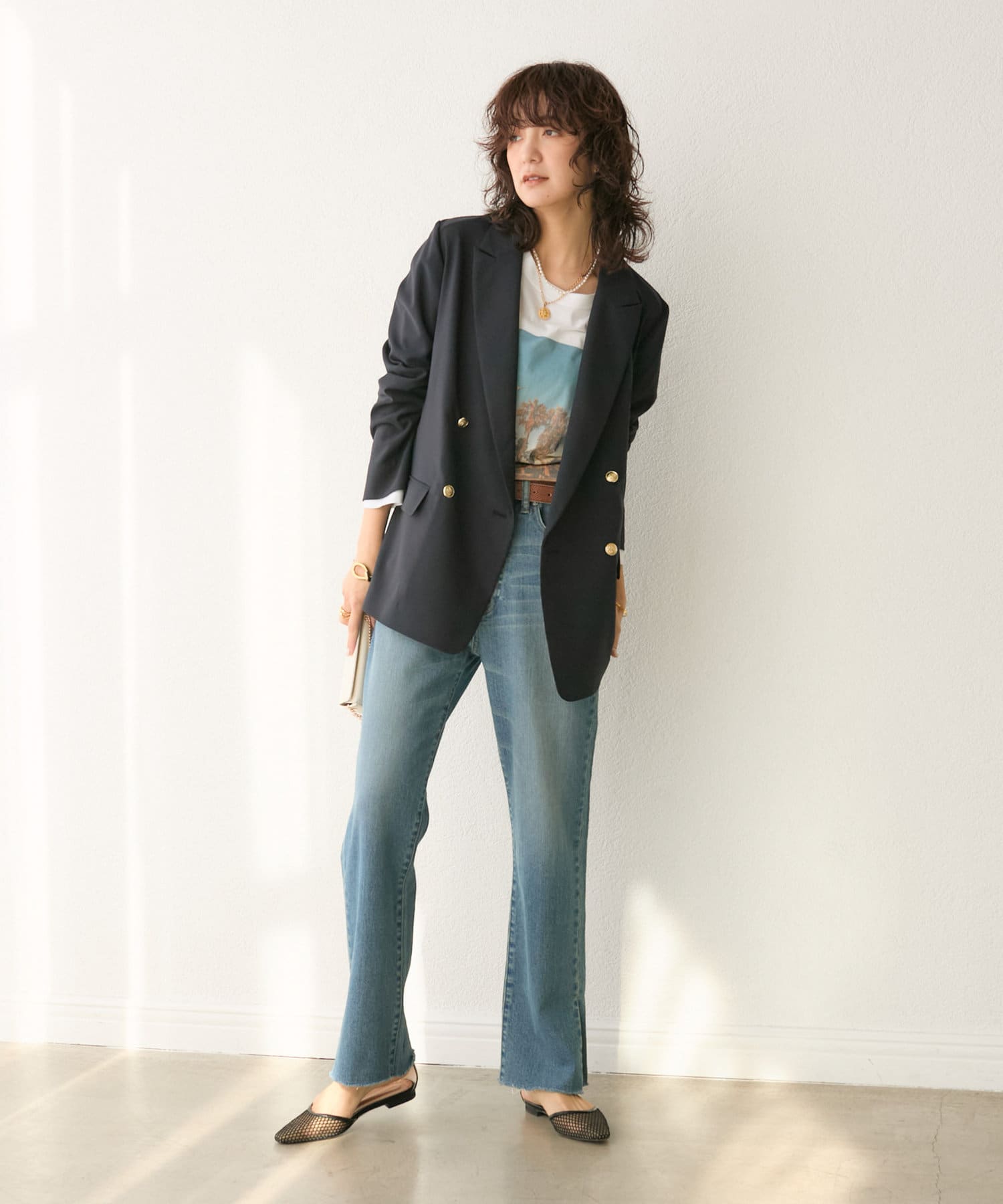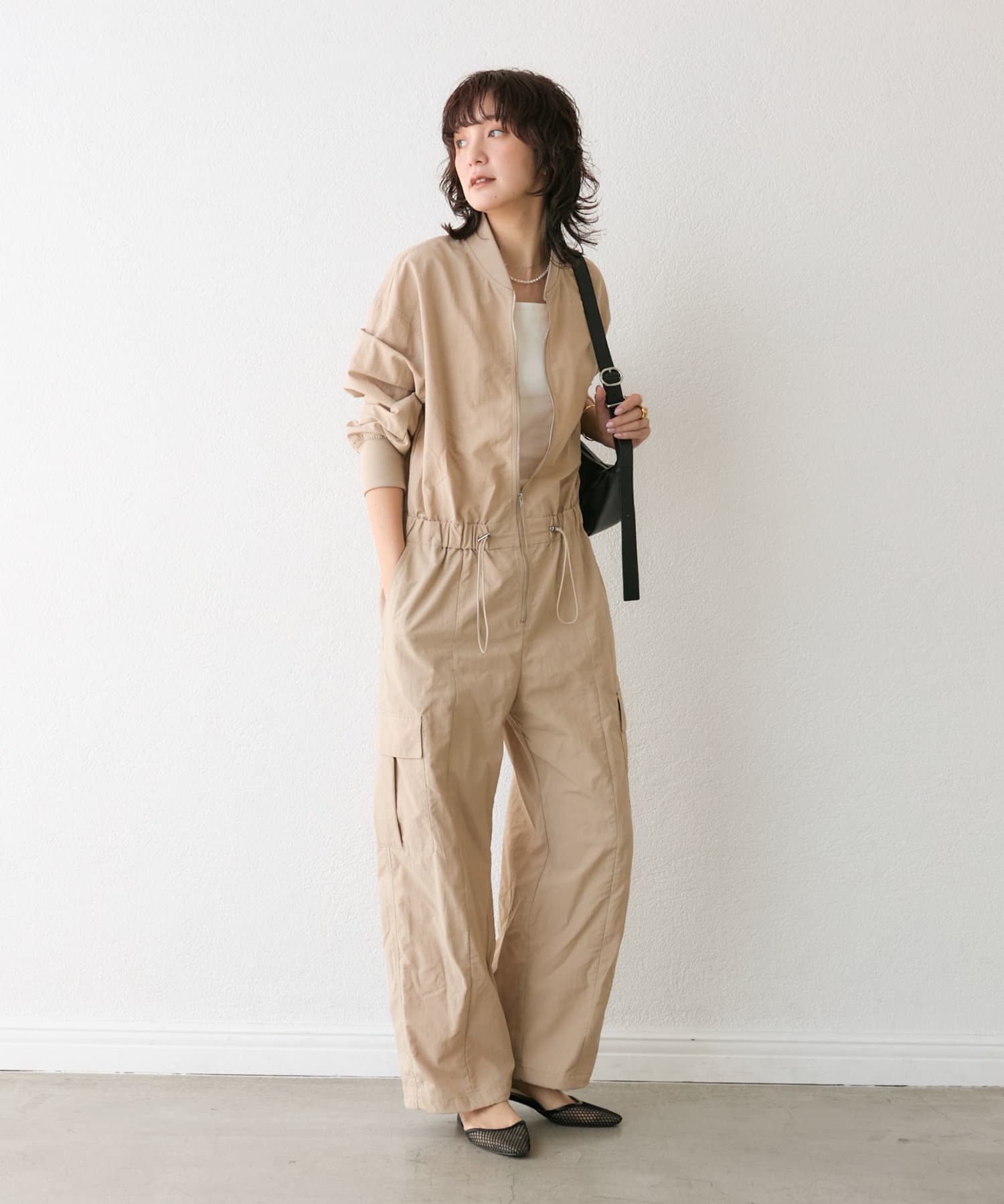 抜け感のあるシルエットなので、足元をスッキリキレイに見せ、軽めの素材感で夏まで着用可能。