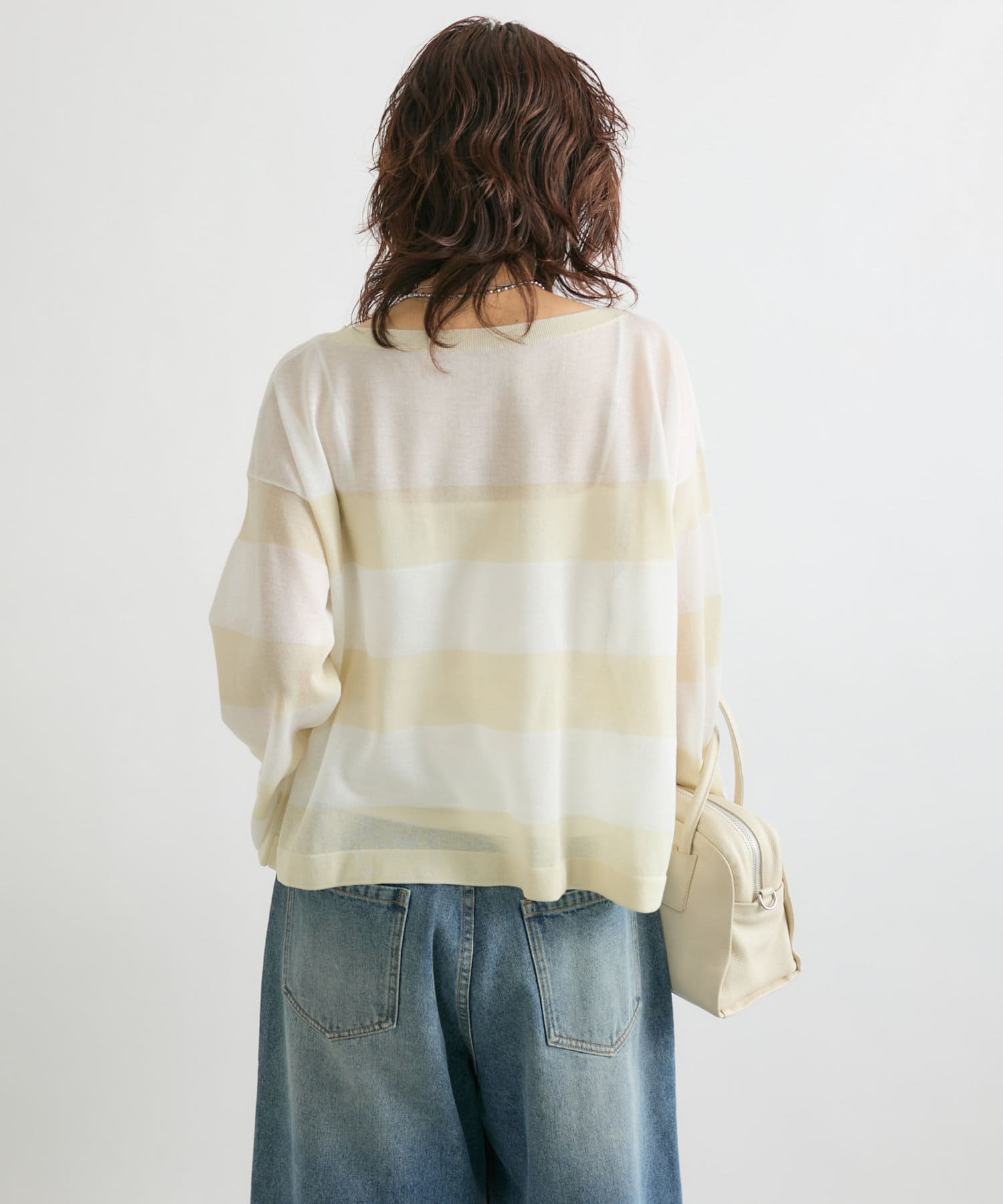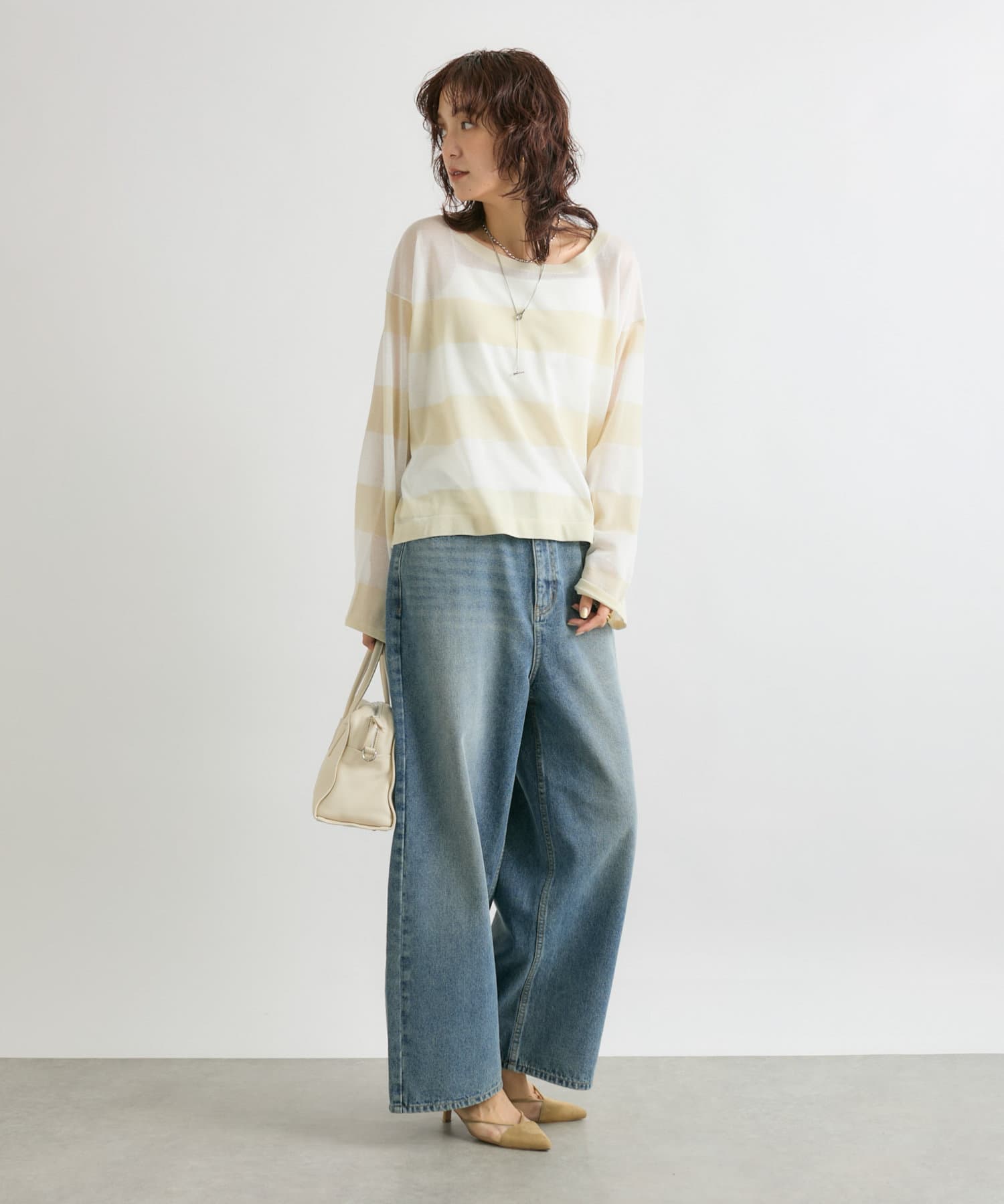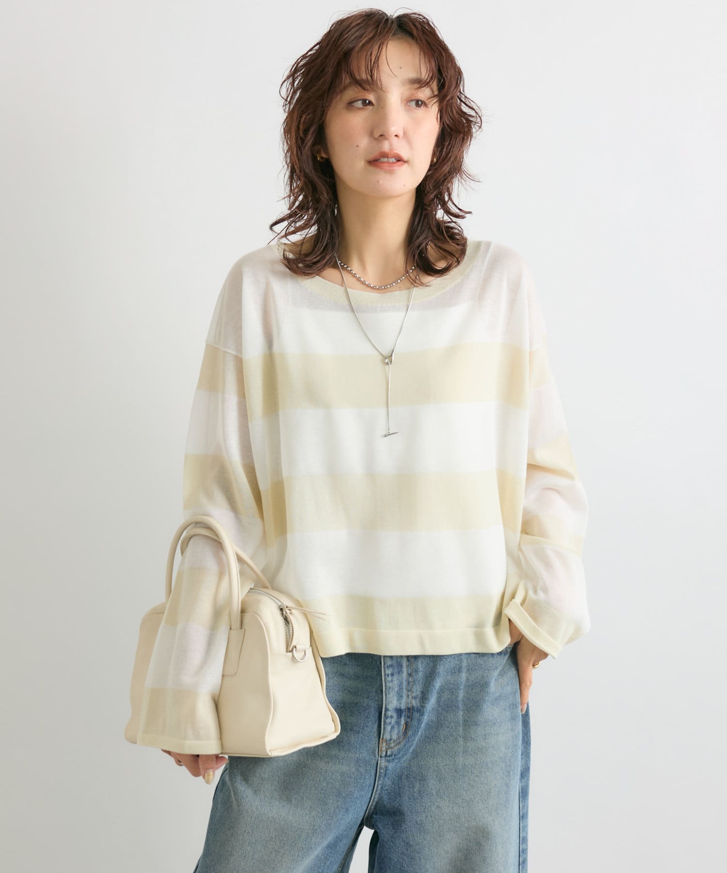 無地感覚で使っていただけるボーダーニットなので、ボトム問わず合わせやすいアイテムとなっています。