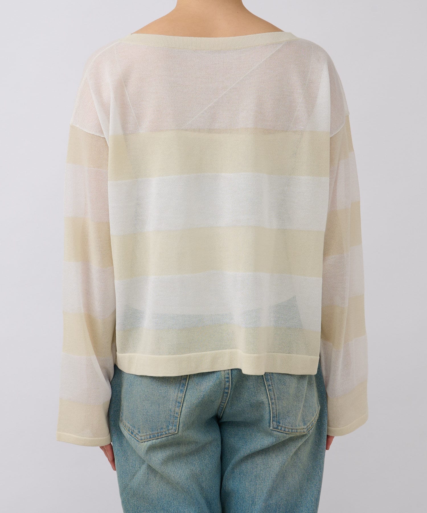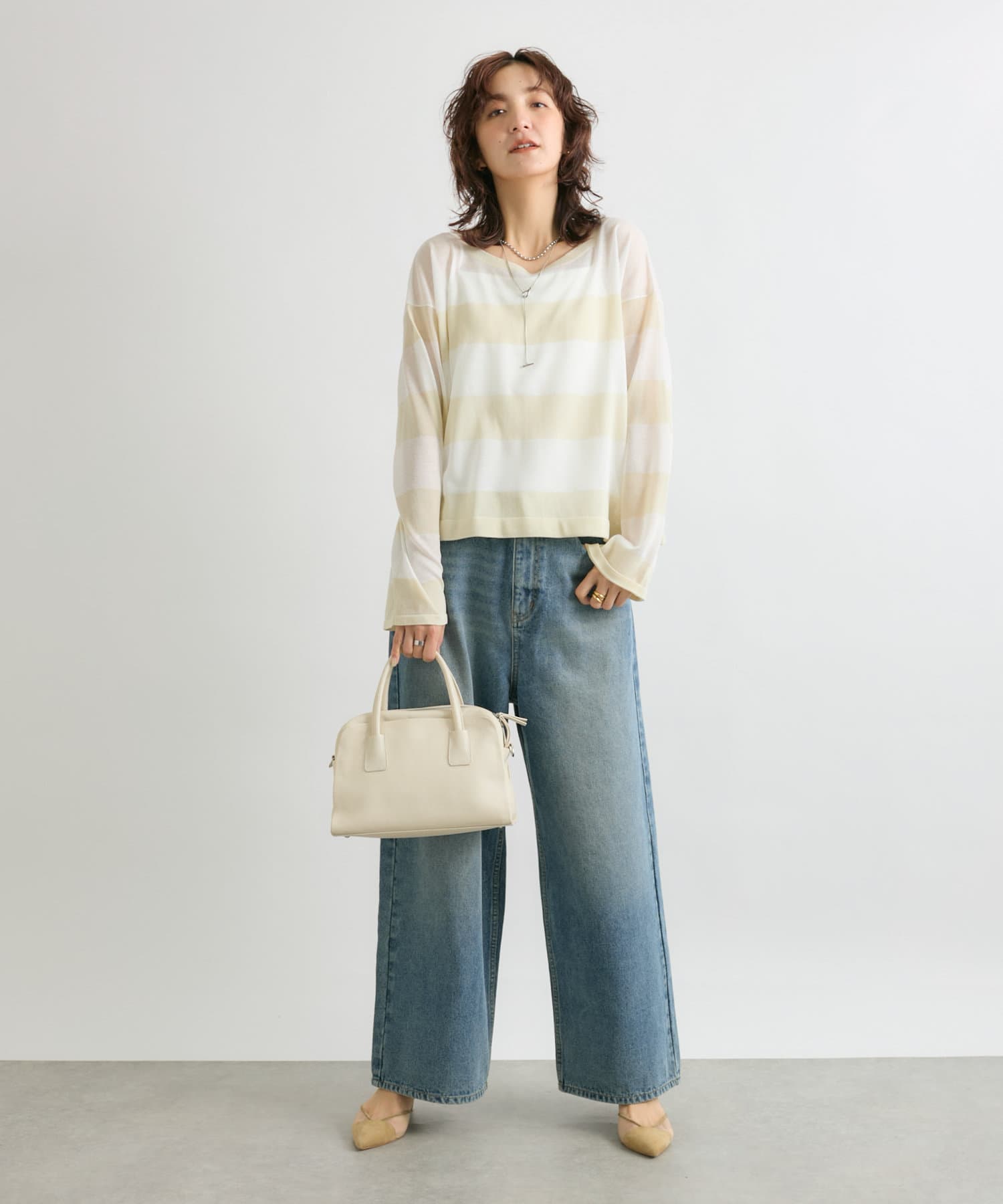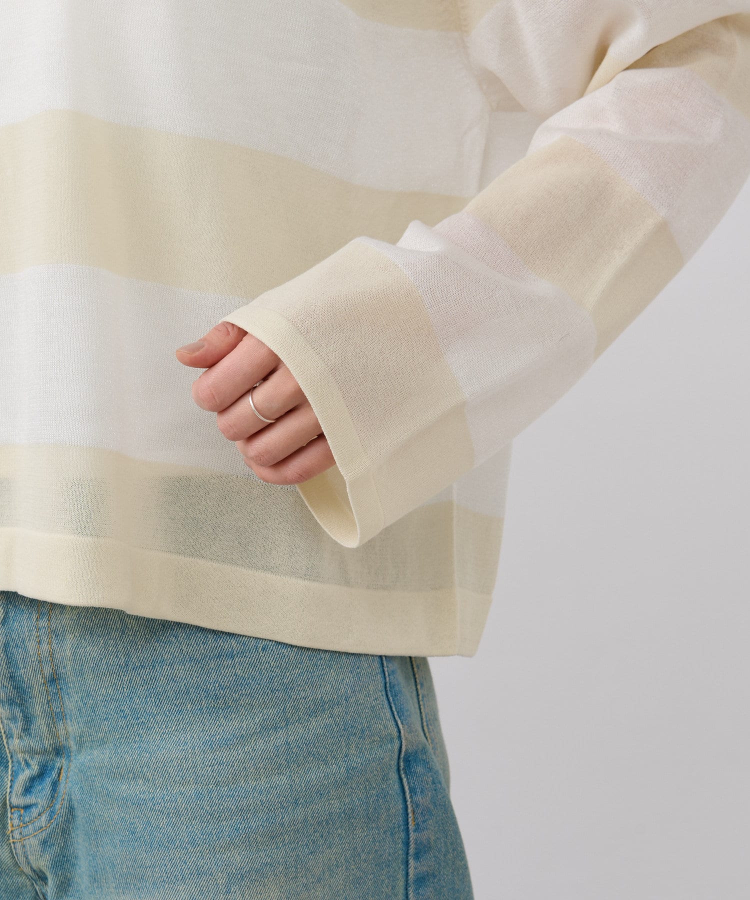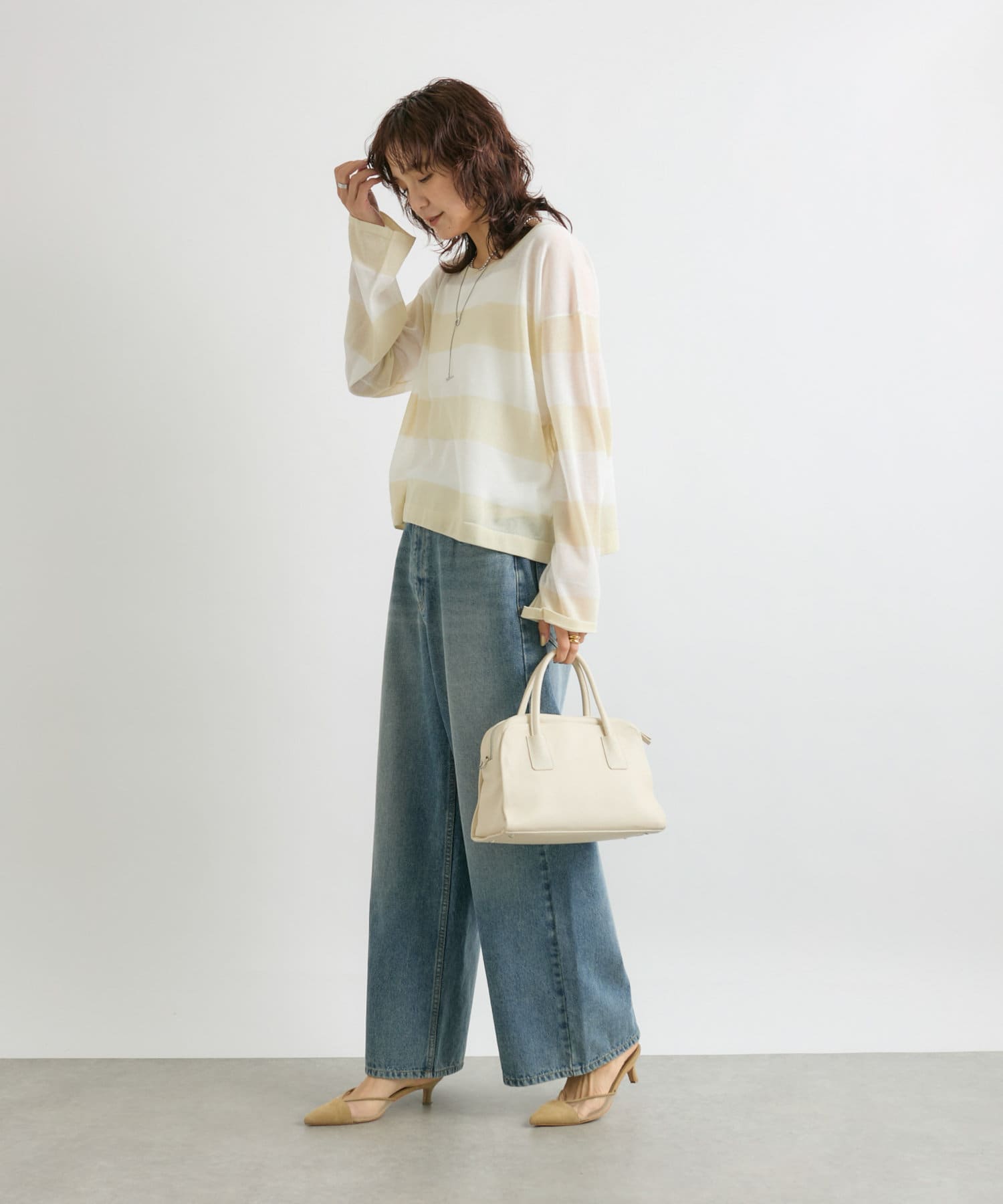 無地感覚で使っていただけるボーダーニットなので、ボトム問わず合わせやすいアイテムとなっています。