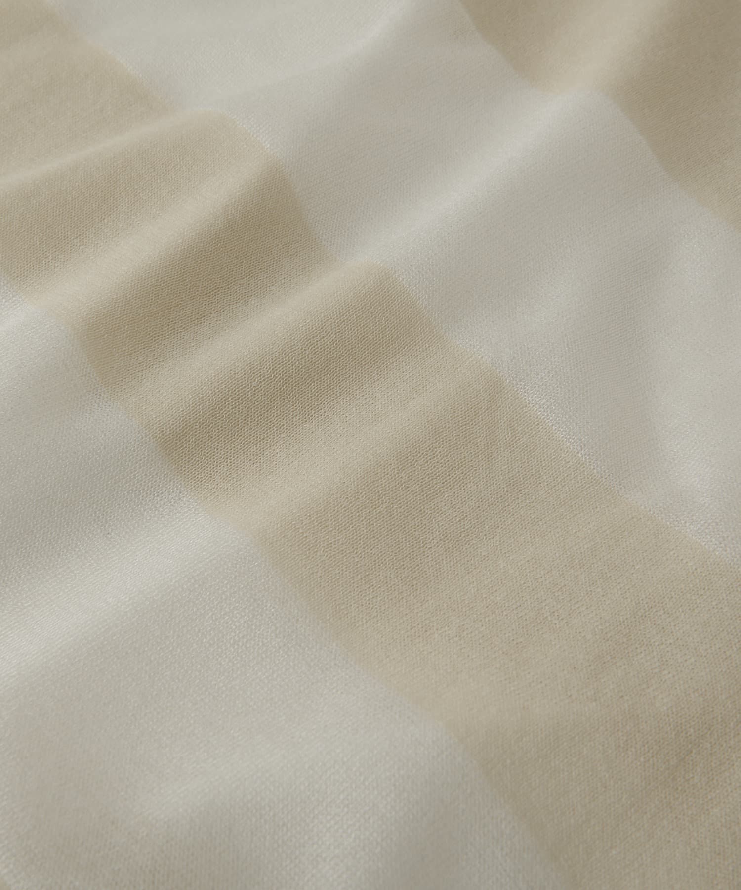 2種類の糸を使用しているので、洗うと縮み方の違いで切り替え位置にギャザーが入ったようになる可能性がございます。