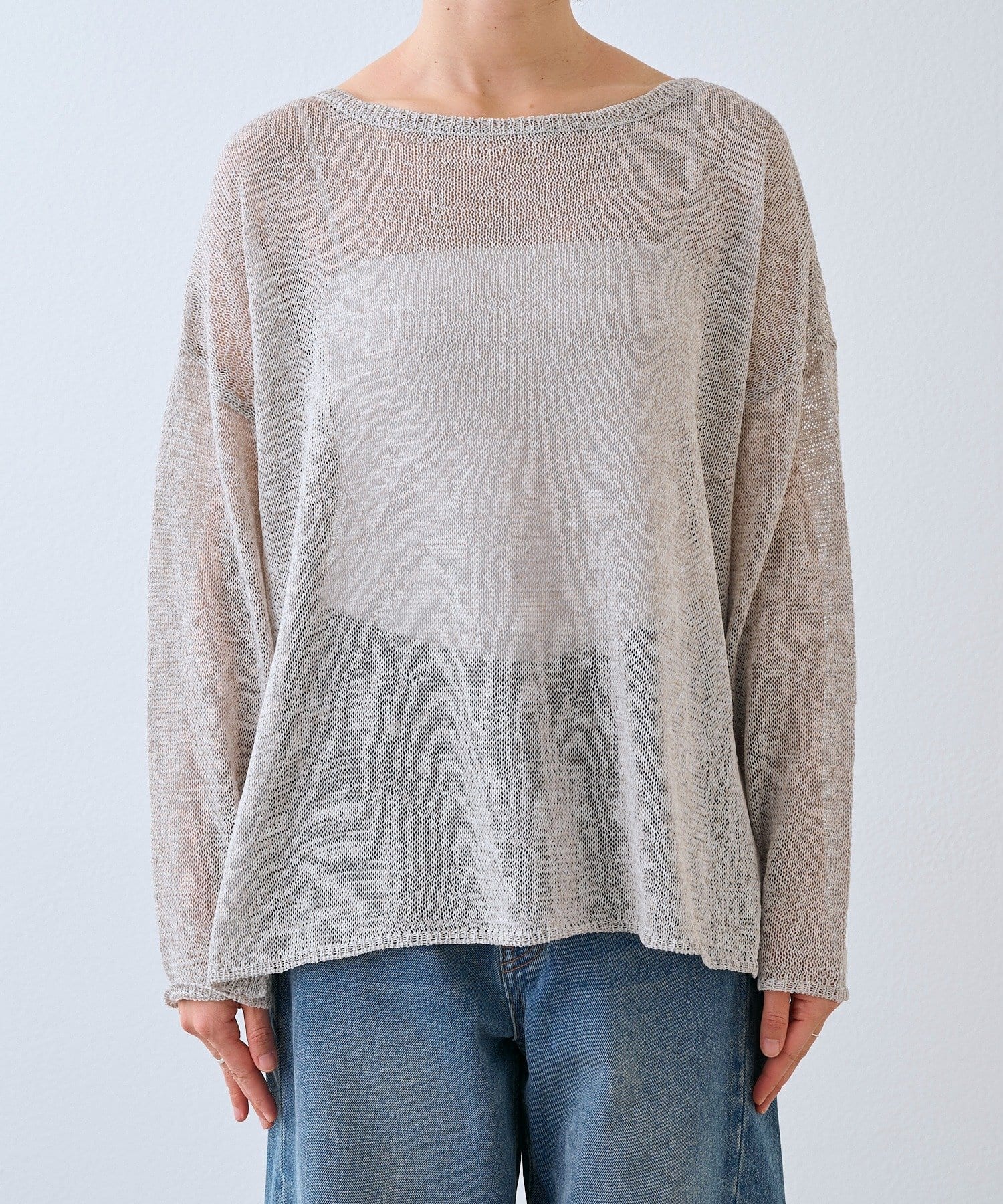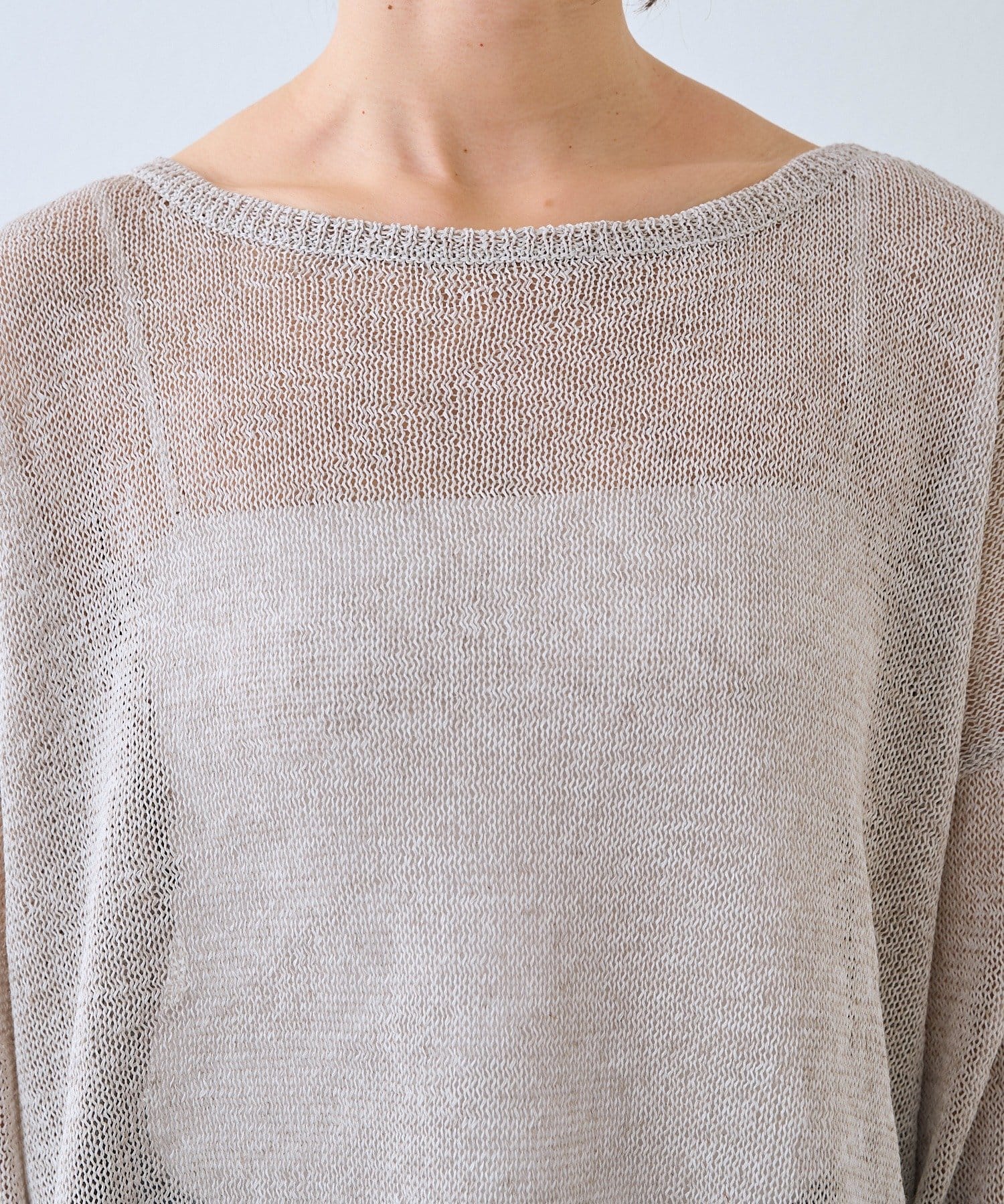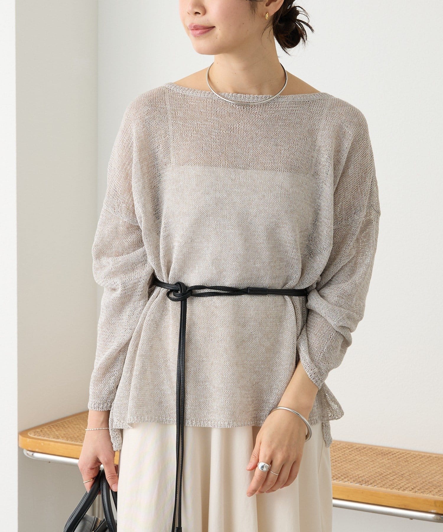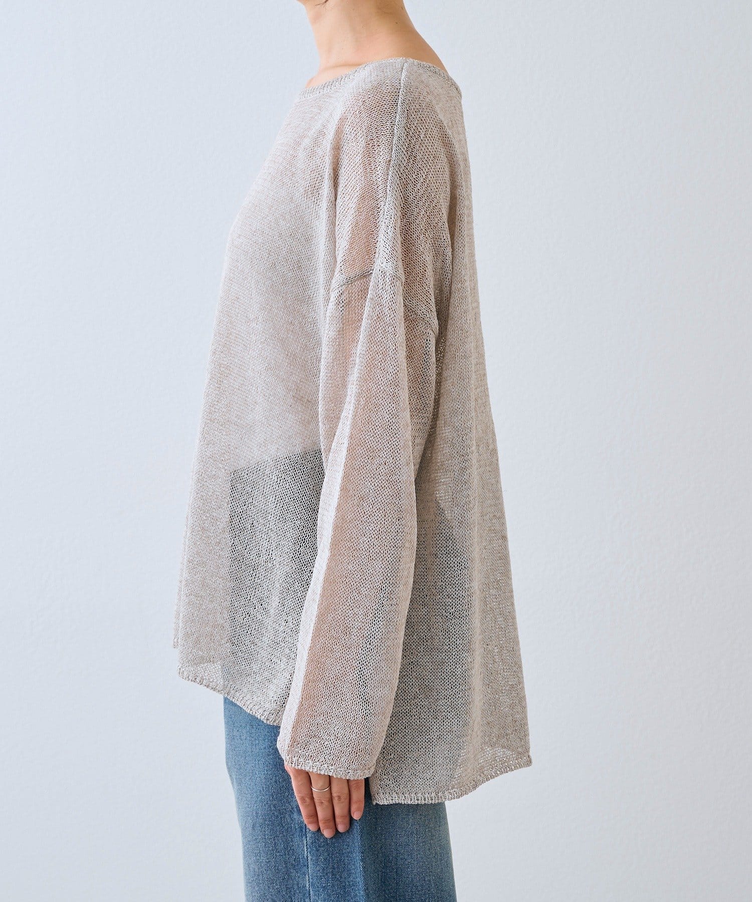 リネンのナチュラルさを活かした風合いと、肌離れが良く清涼感のある着用感が特徴のルーズニット。