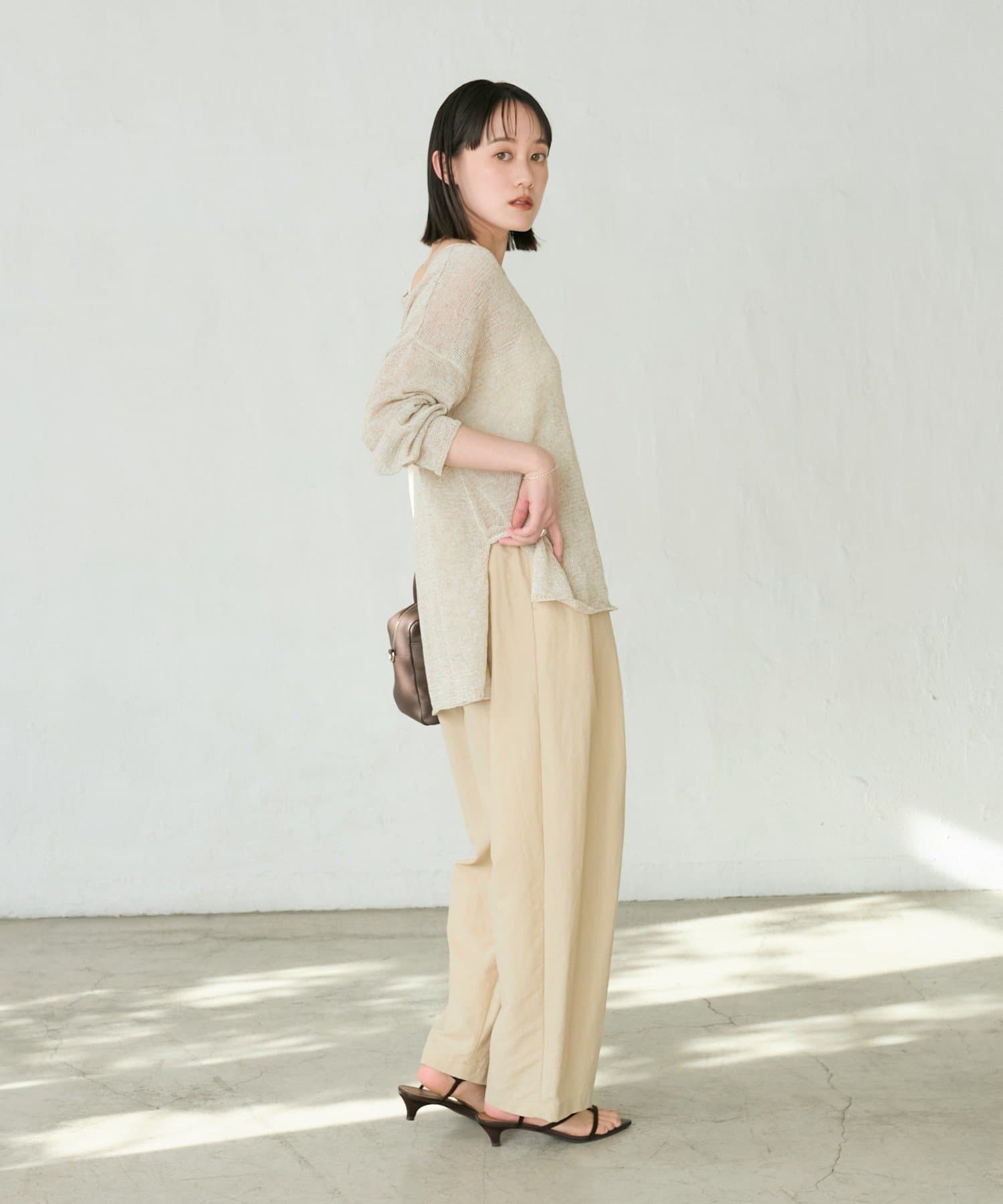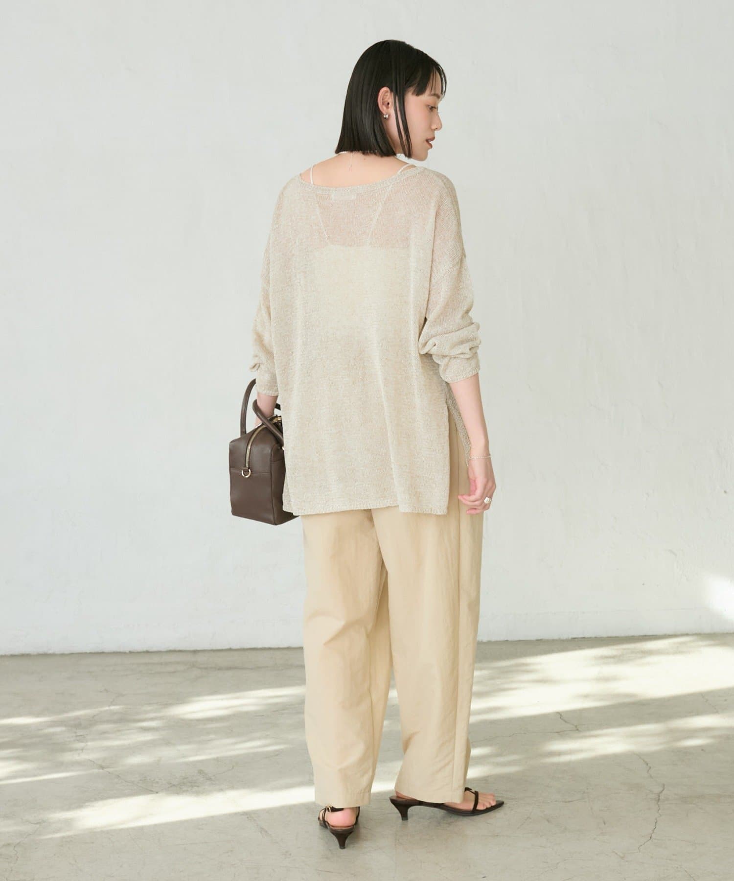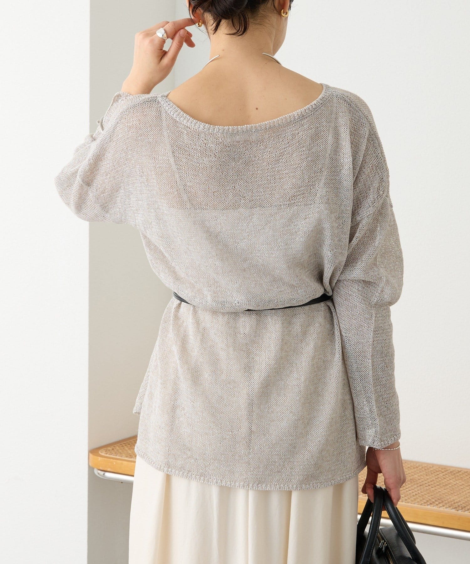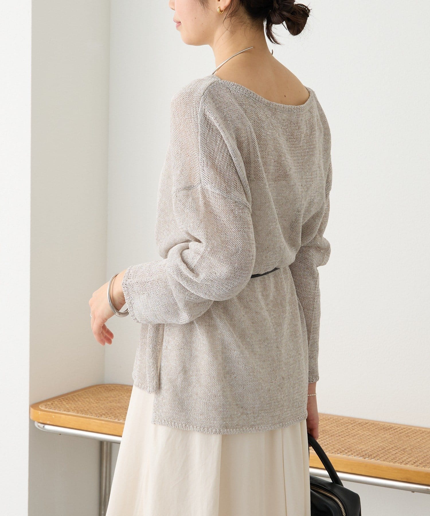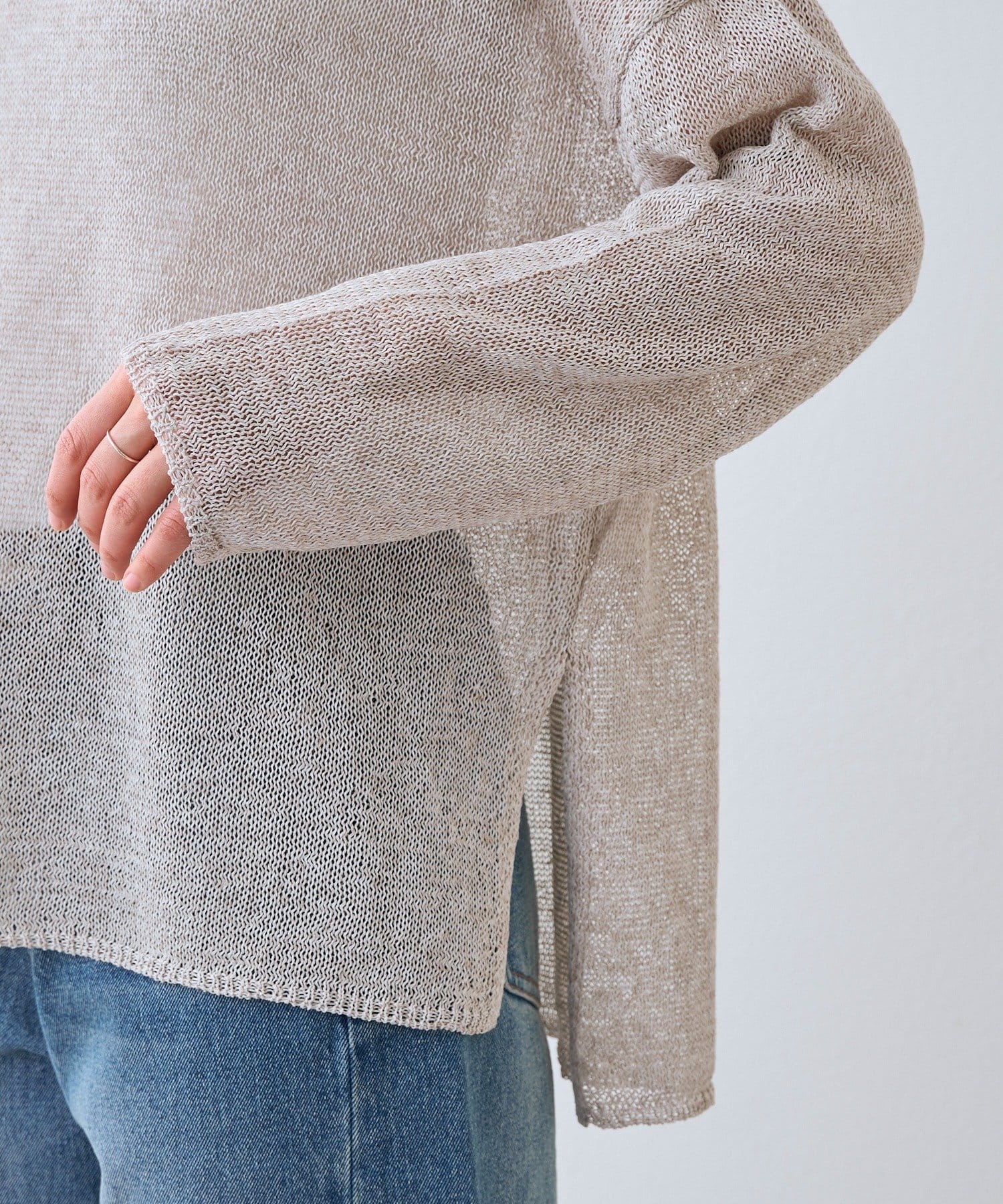 リネンのナチュラルさを活かした風合いと、肌離れが良く清涼感のある着用感が特徴のルーズニット。