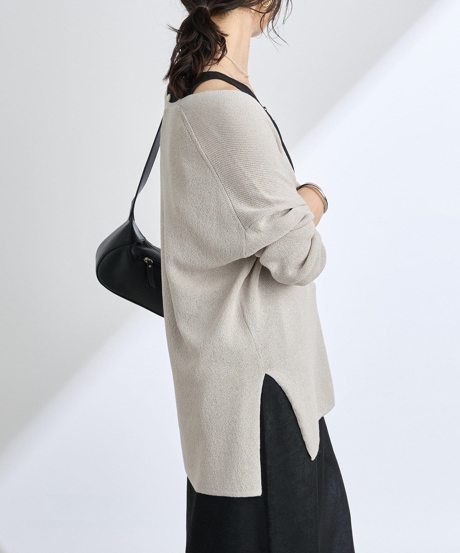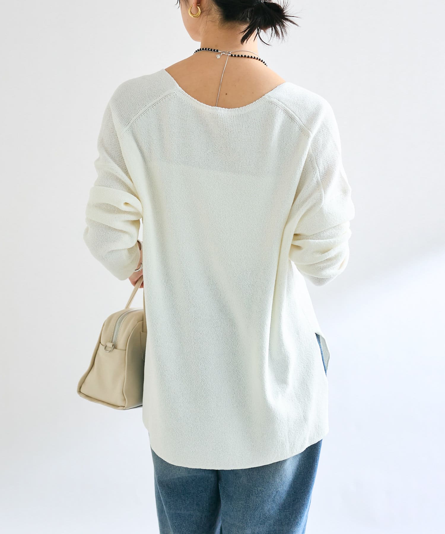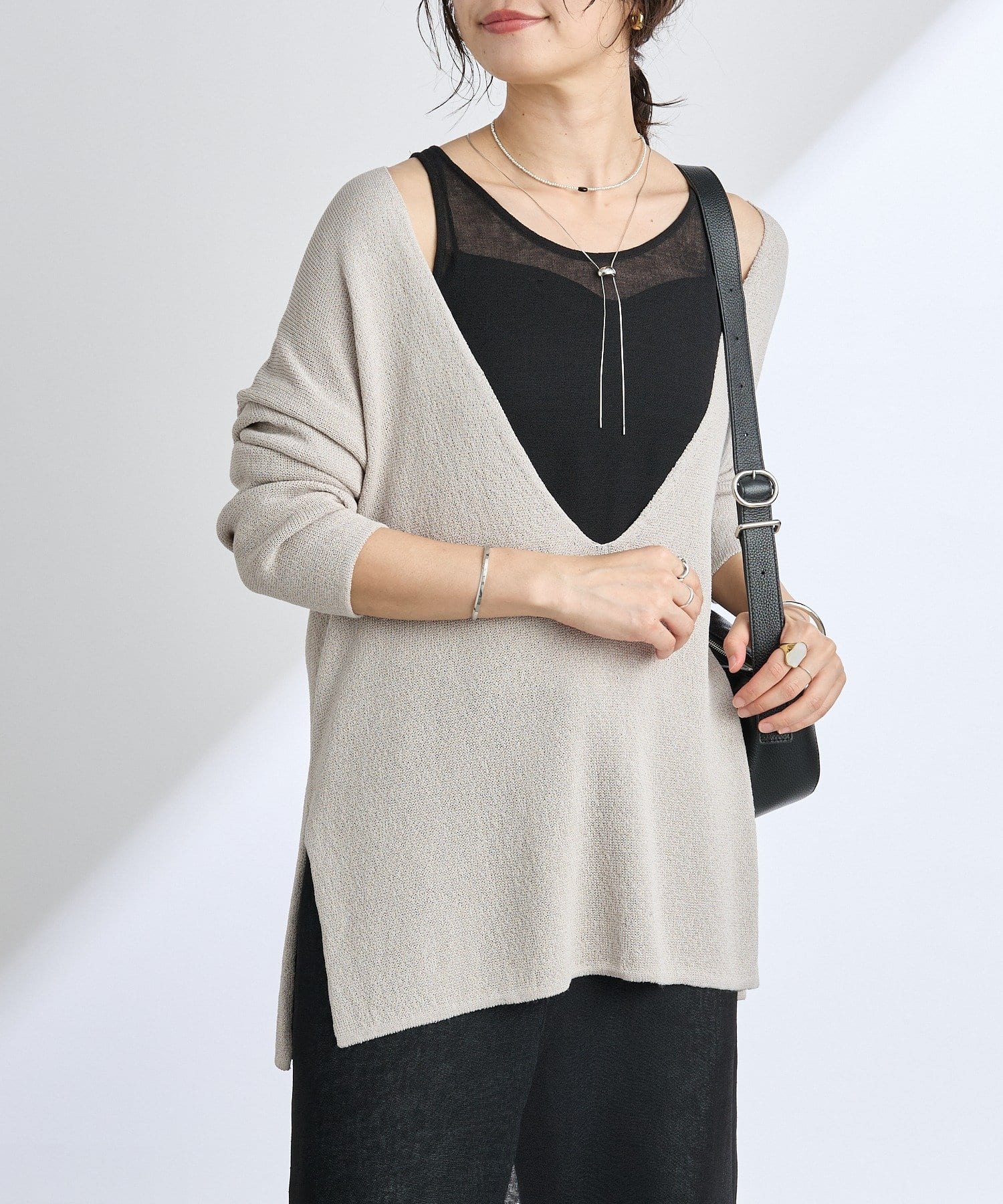 • ひんやりタッチのペーパーヤーンプランジネックニット