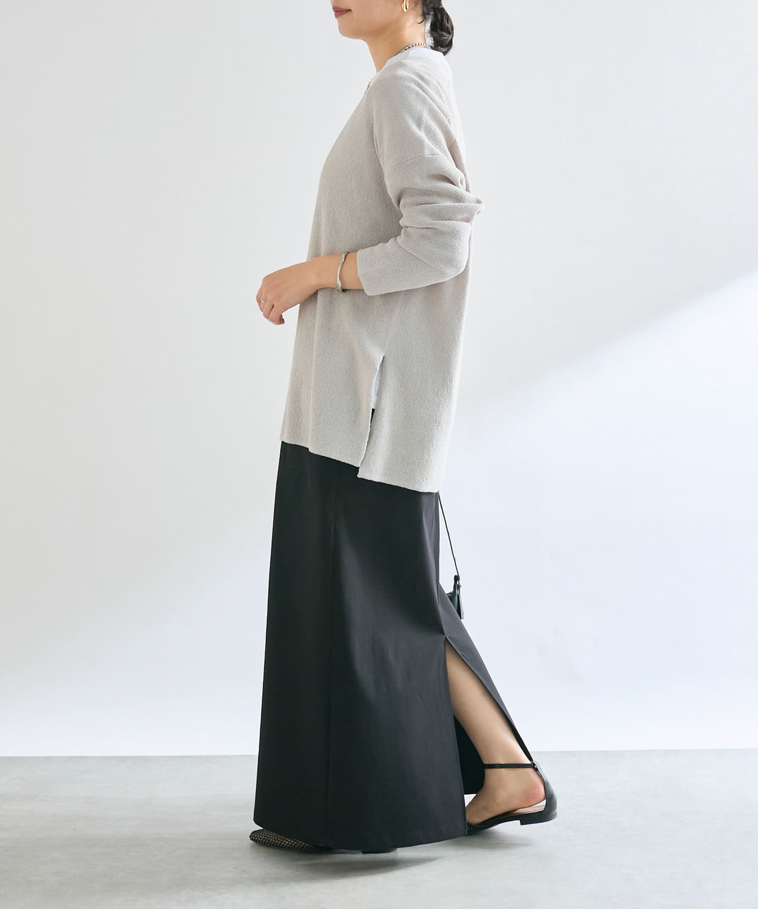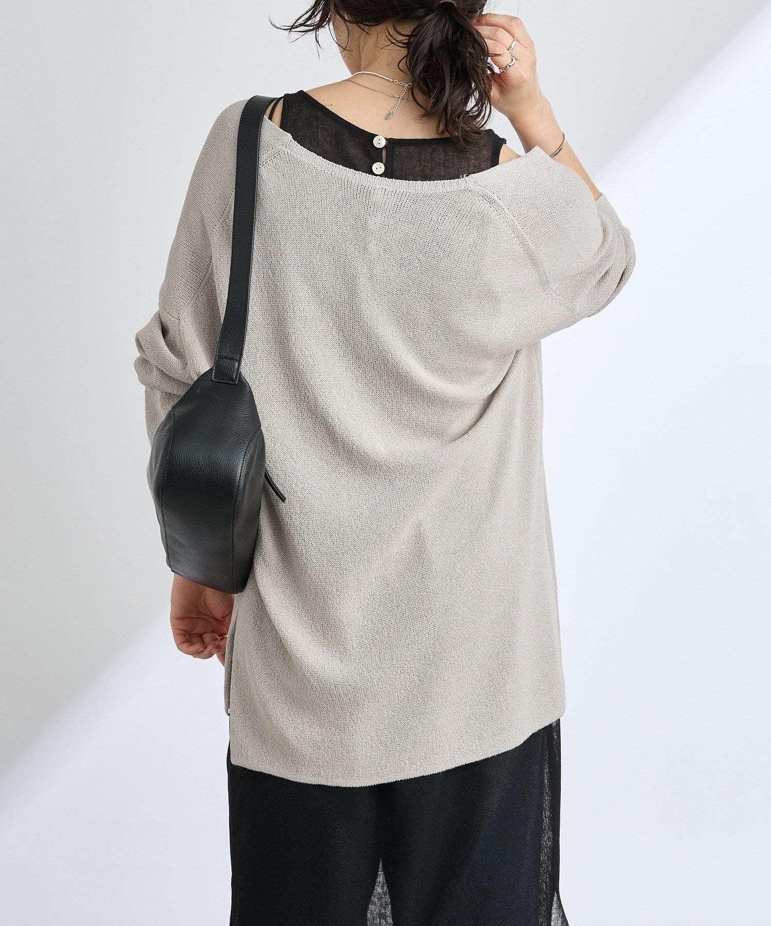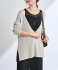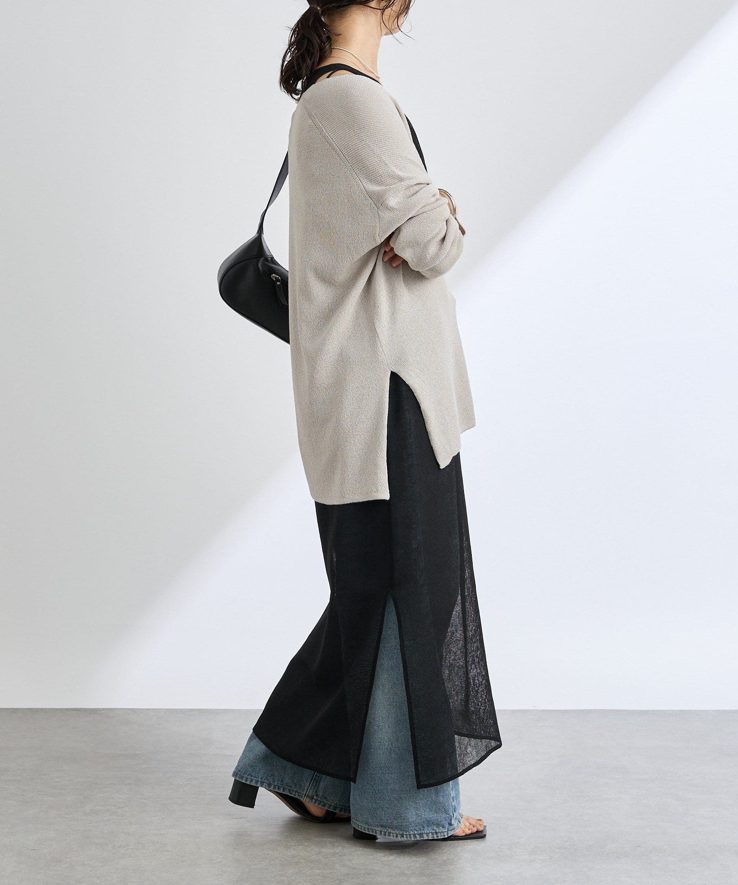 • ひんやりタッチのペーパーヤーンプランジネックニット