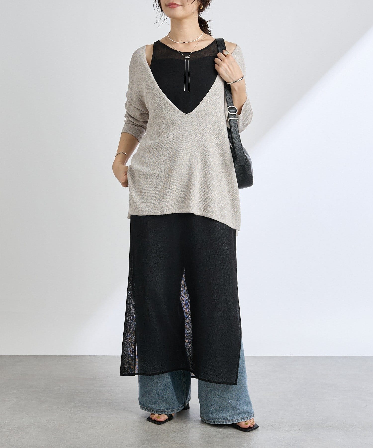 キャミソールや2WAYリブタンクワンピースにサラッと重ねて頂いても素敵です。