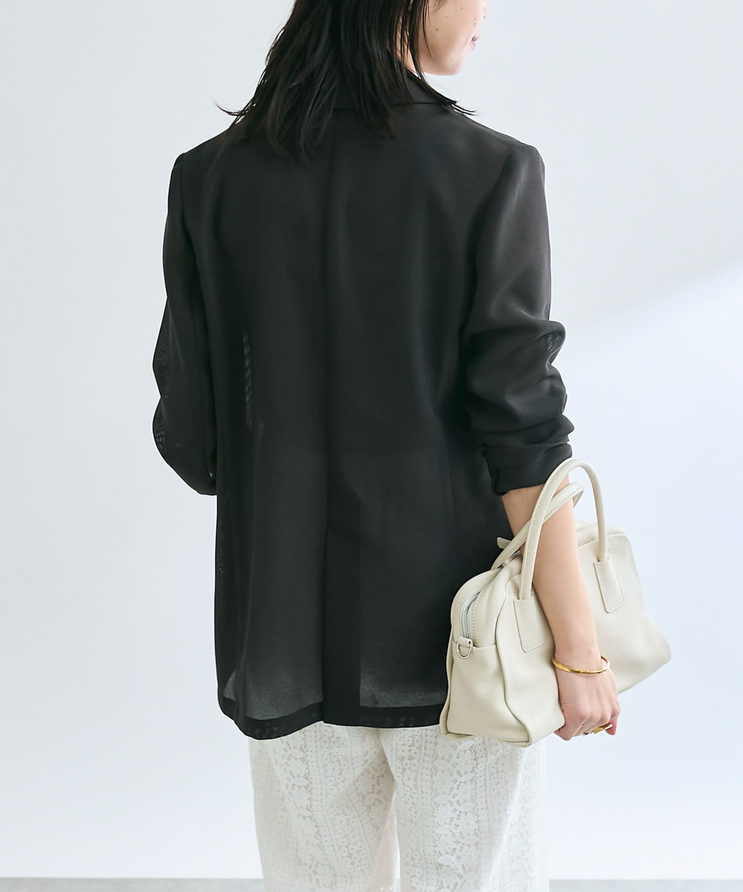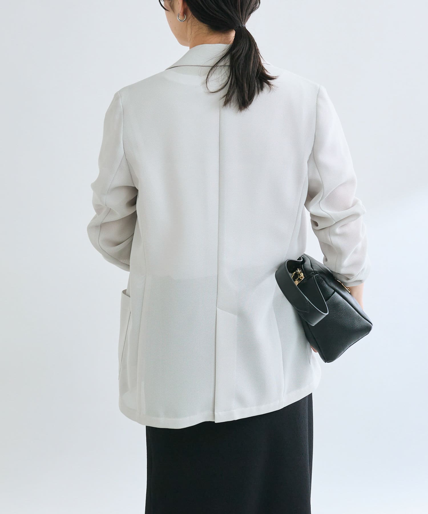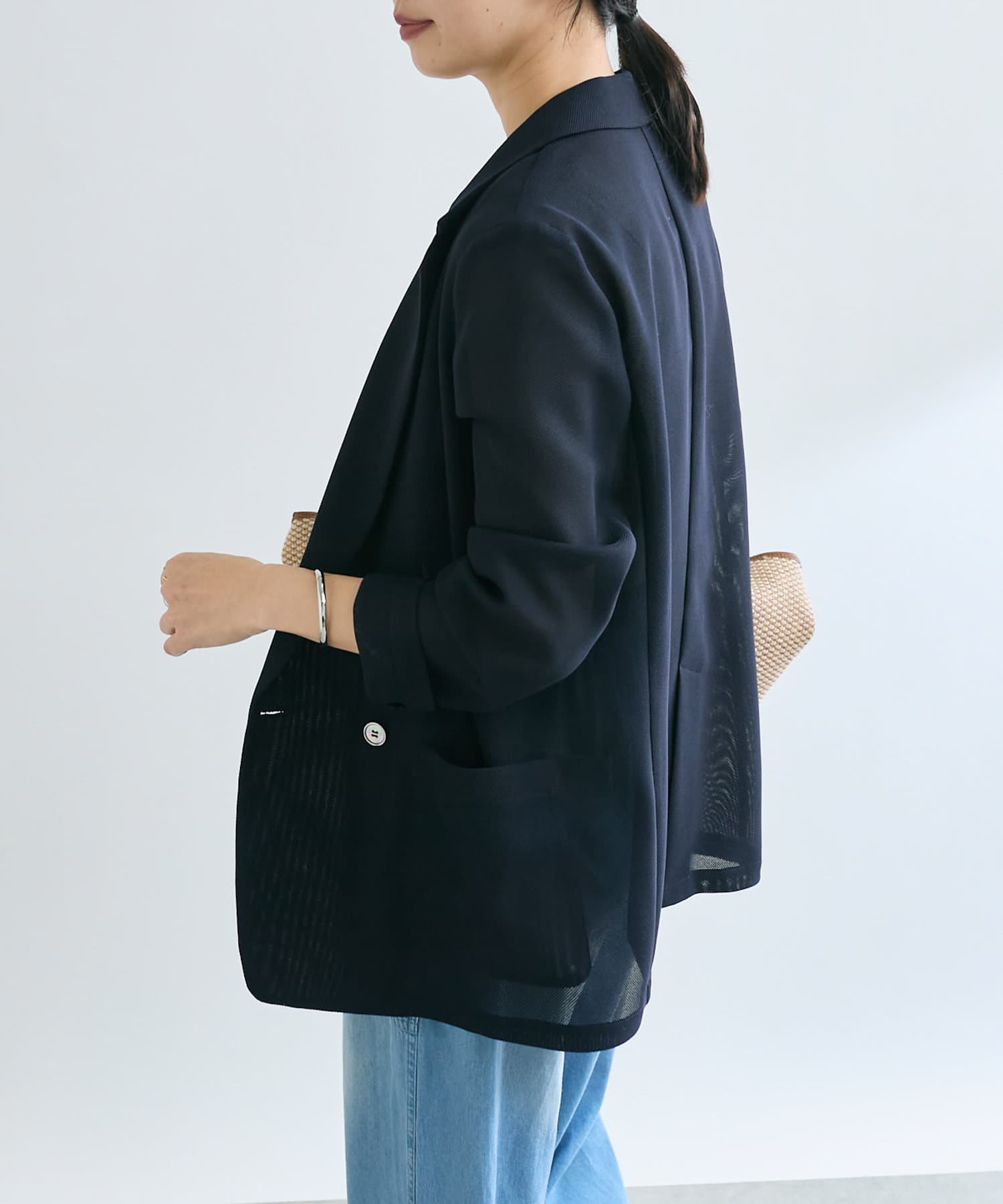 膨らみのあるメッシュ素材の特徴を生かしたテーラードジャケット。