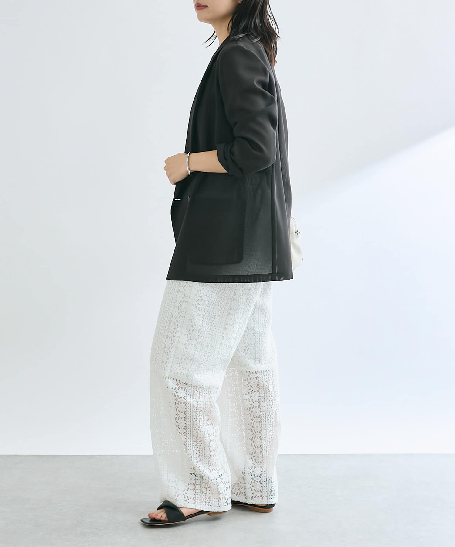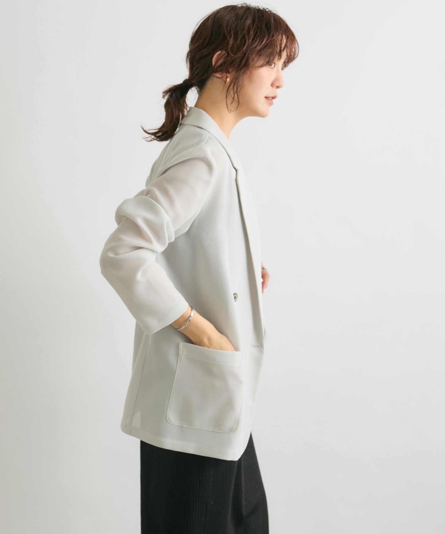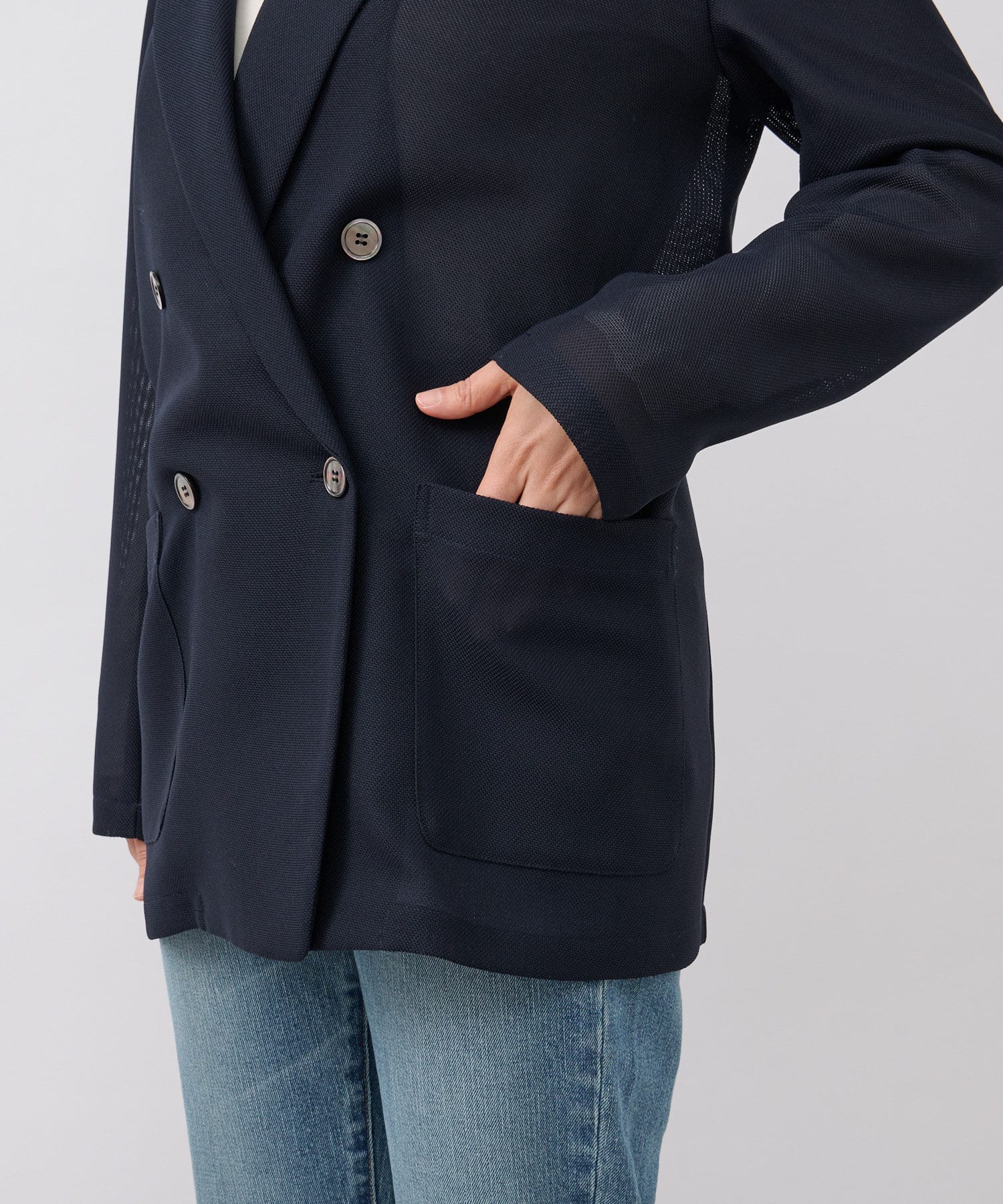 膨らみのあるメッシュ素材の特徴を生かしたテーラードジャケット。
