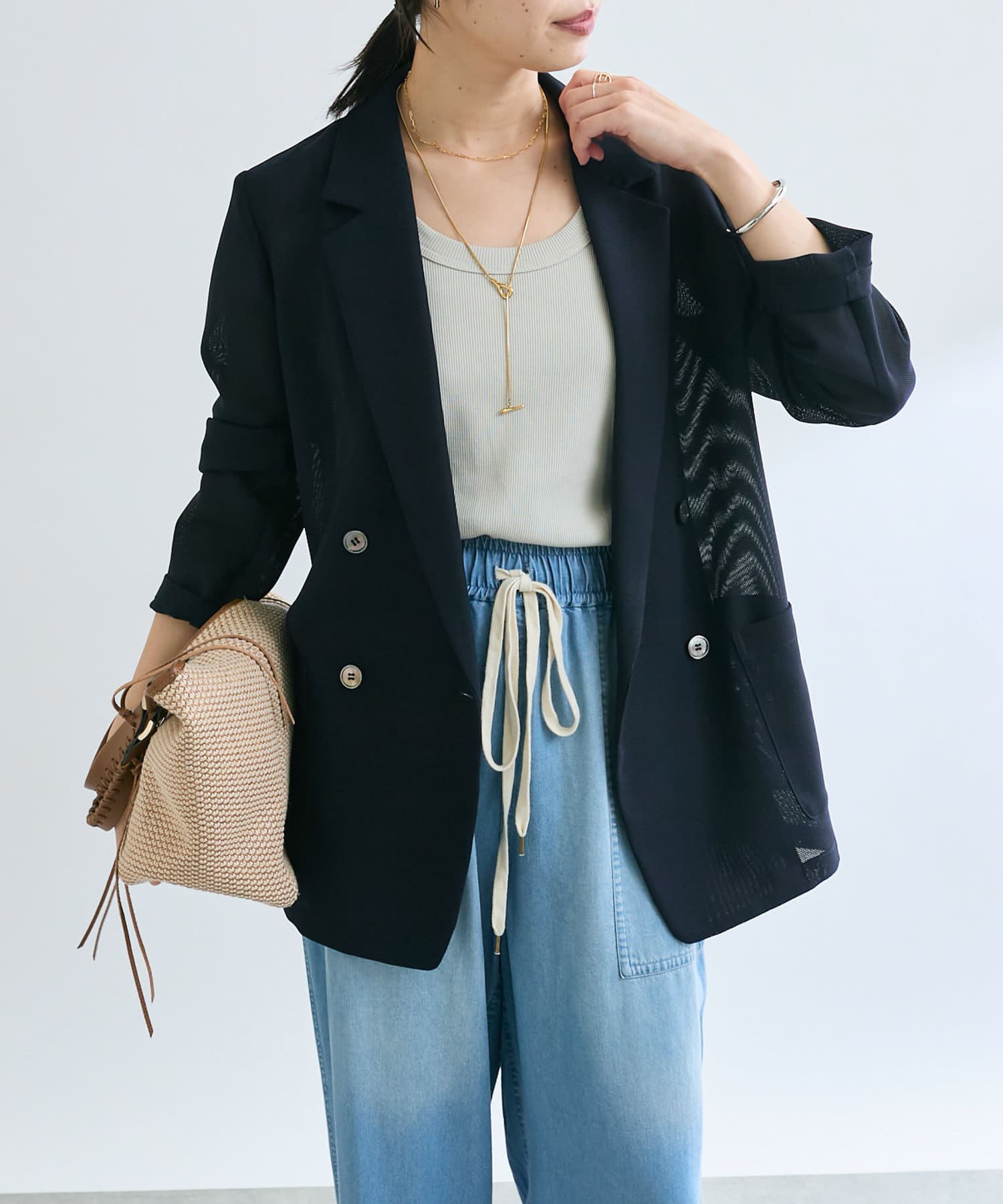 大人のための清涼感あふれるメッシュテーラードジャケット