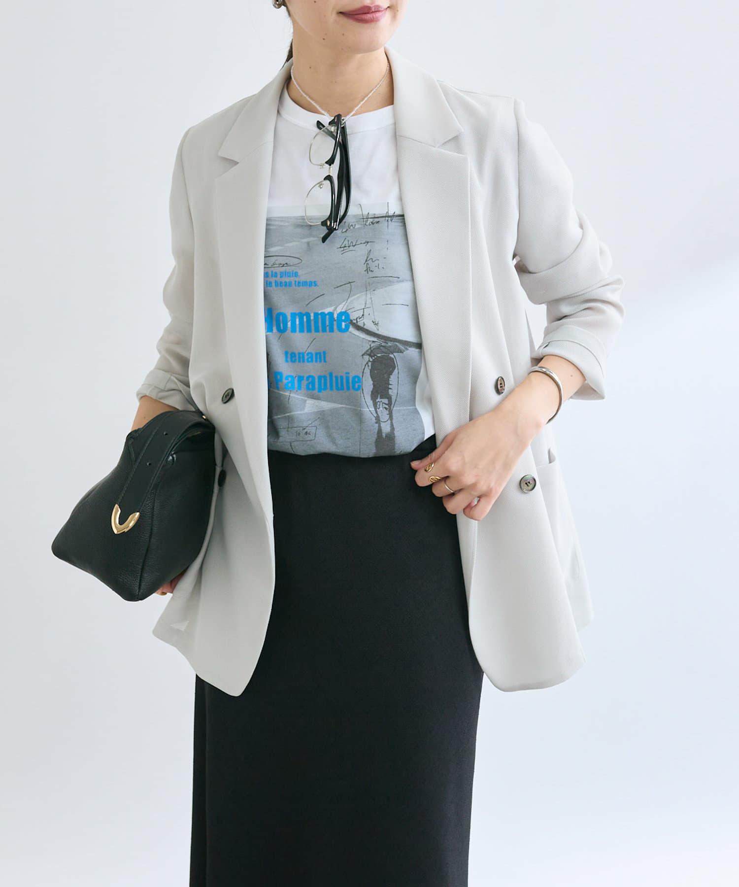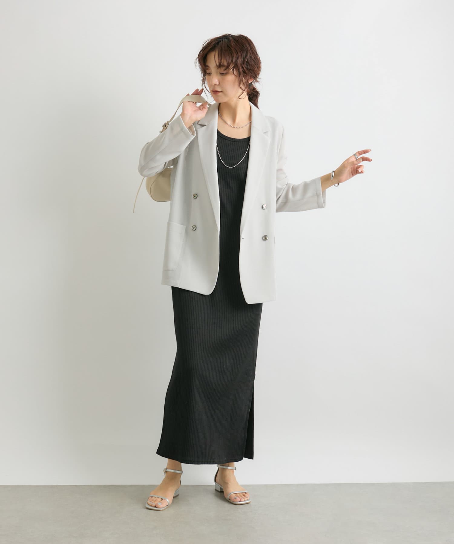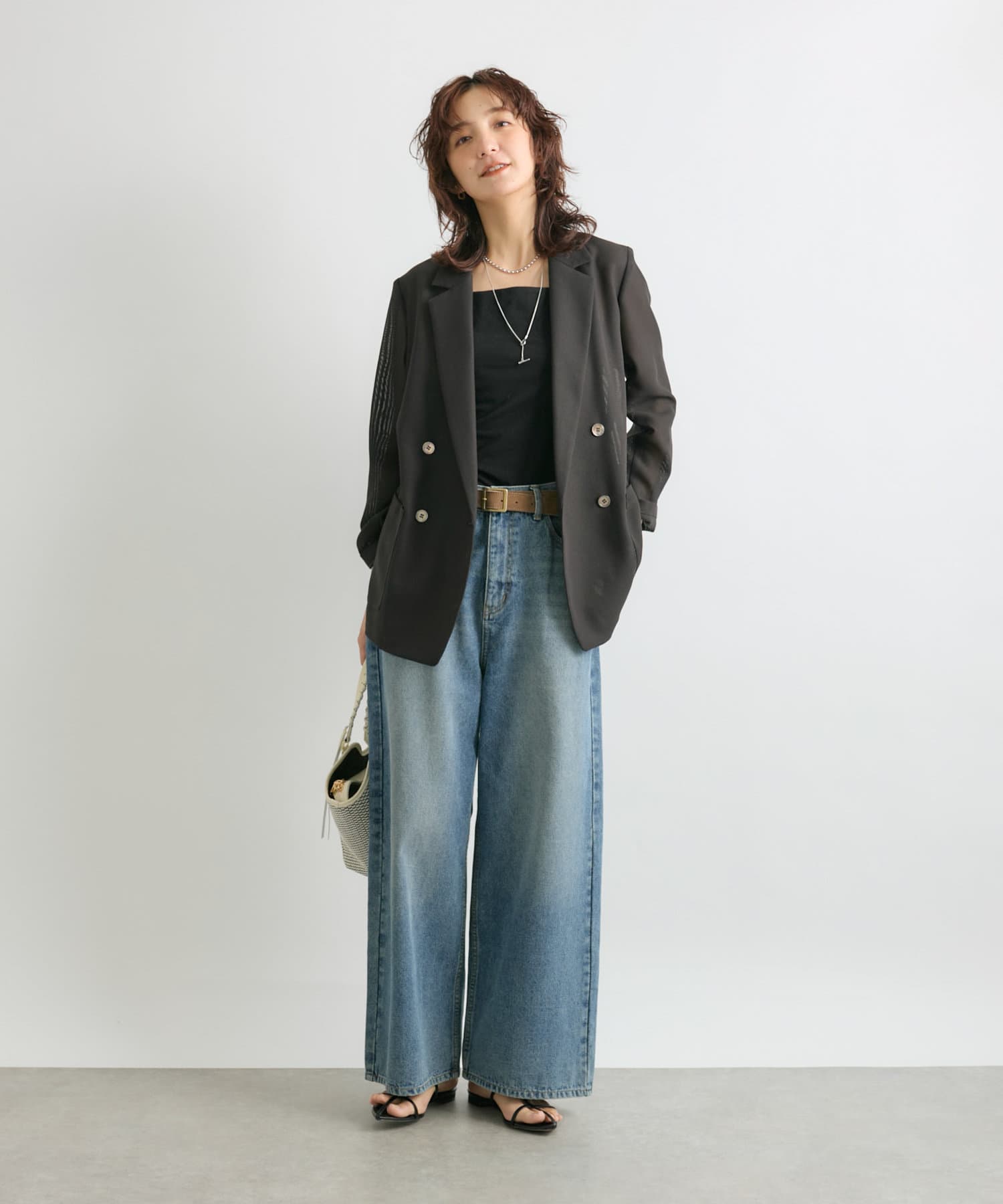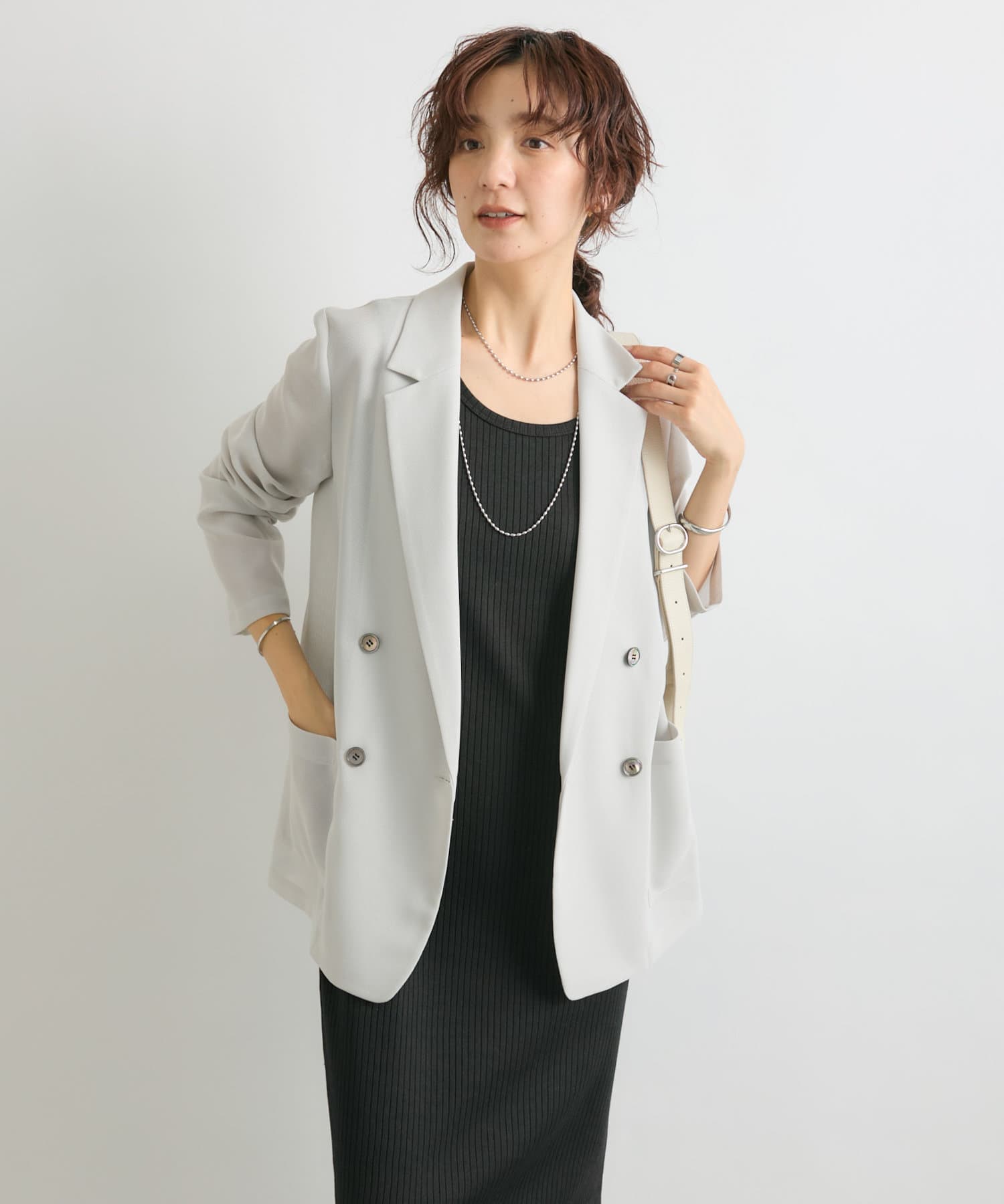ダブルブレストできちんと感があり、ON/OFF着用できる着回し力の高さも魅力のアイテムです。