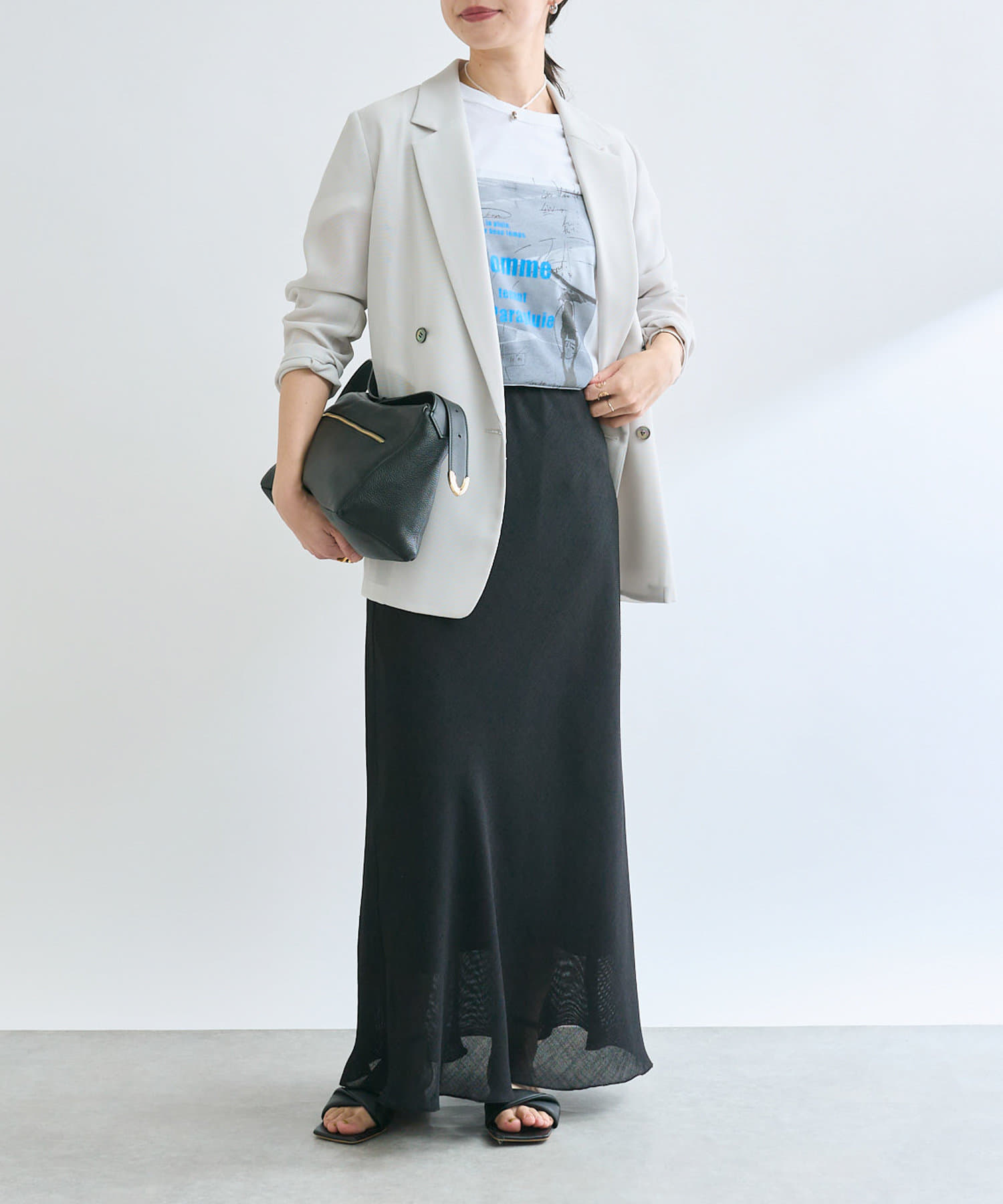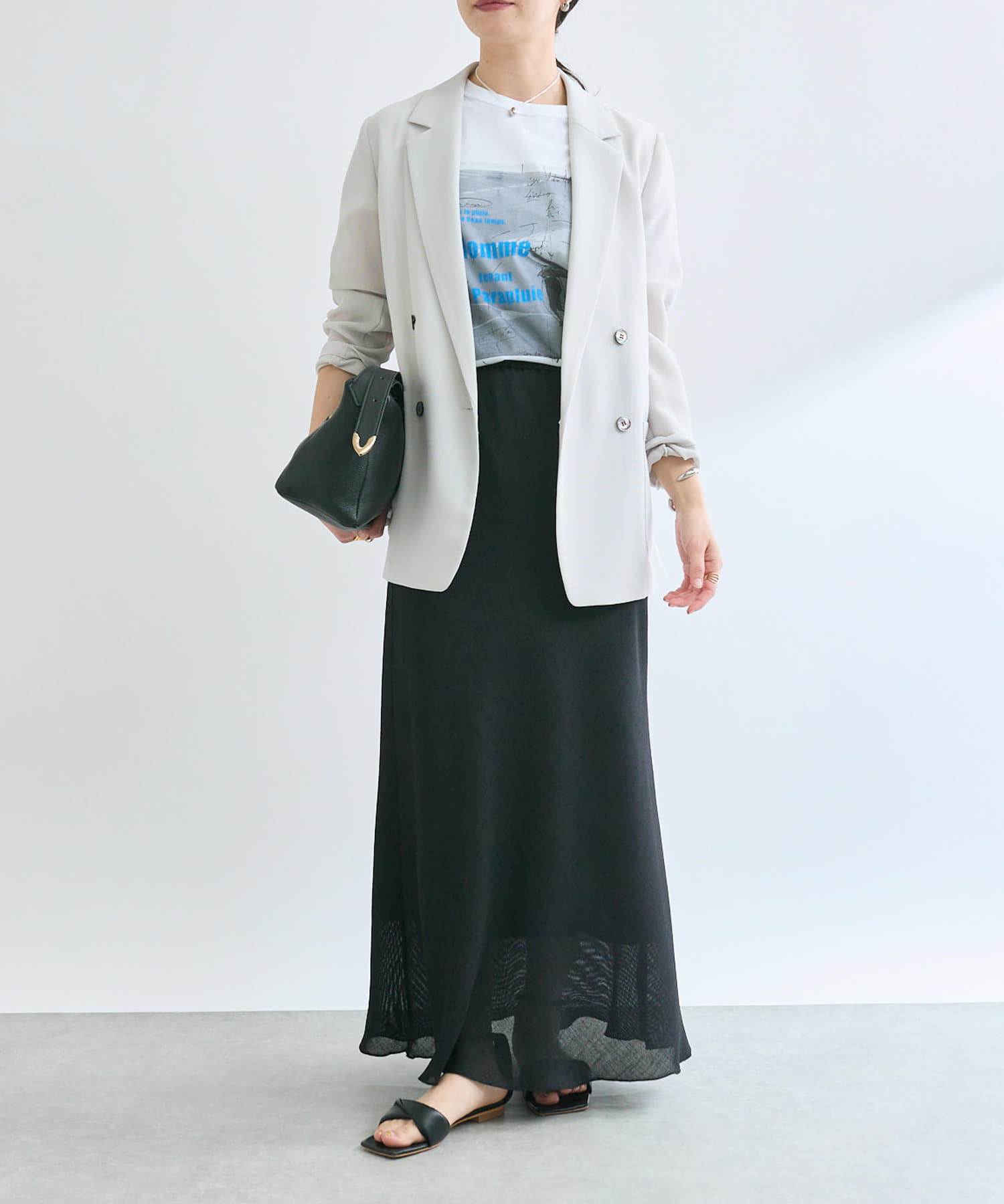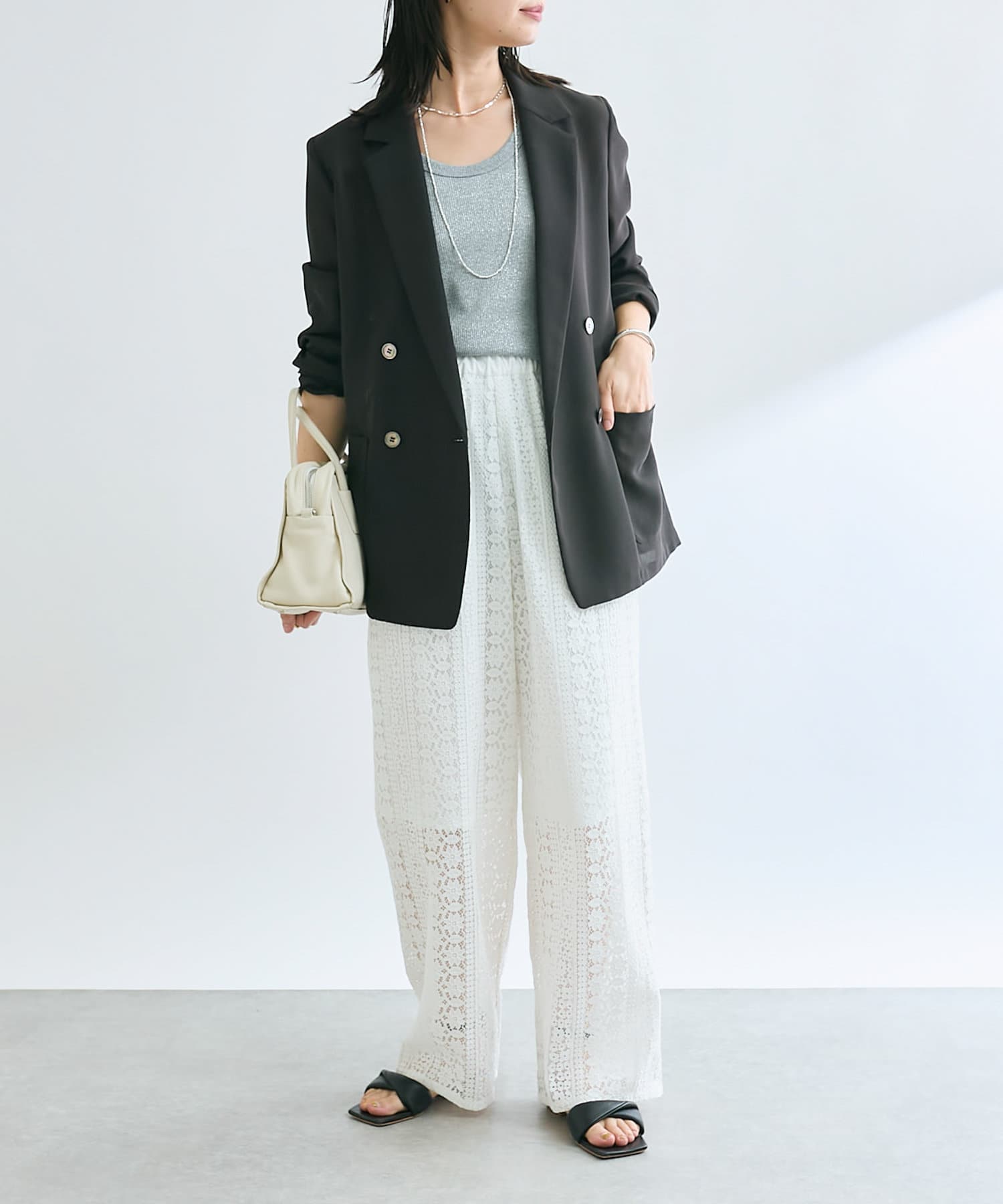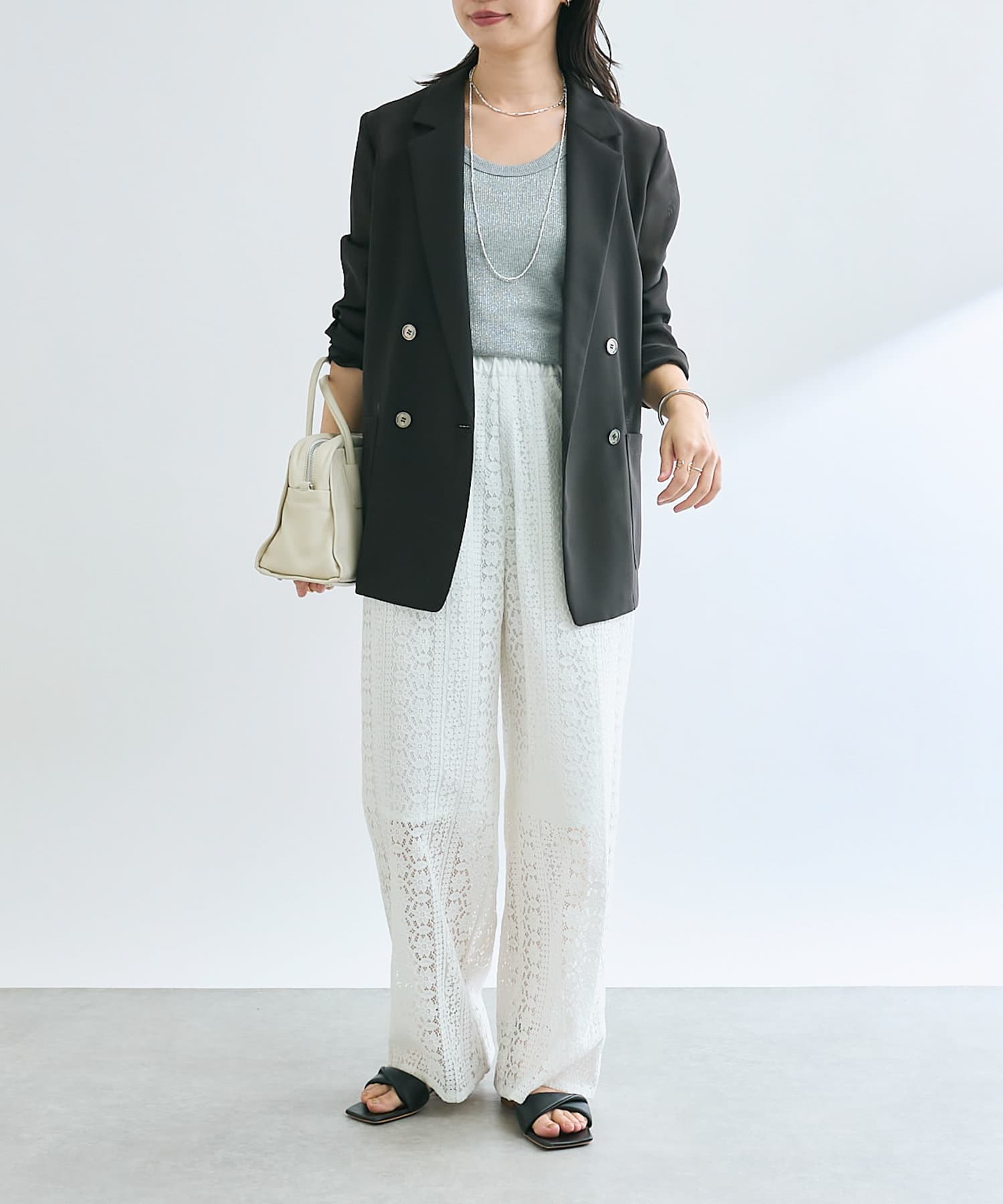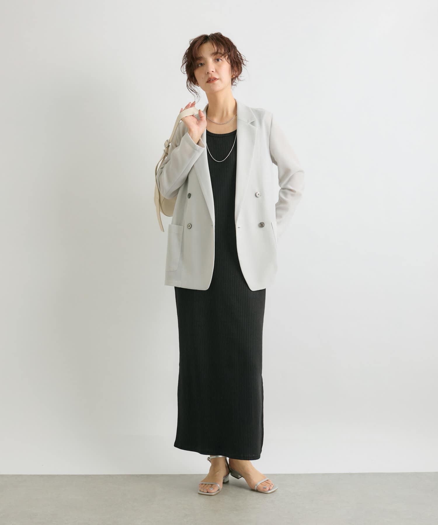 ダブルブレストできちんと感があり、ON/OFF着用できる着回し力の高さも魅力のアイテムです。