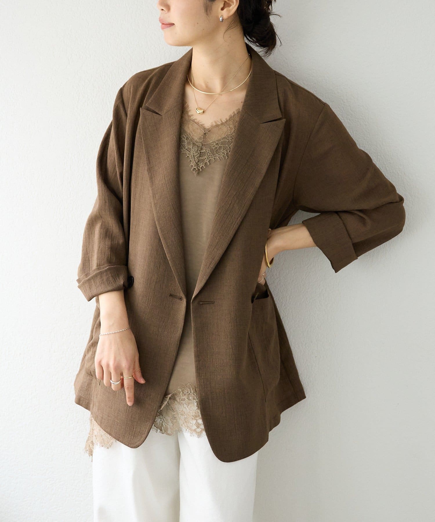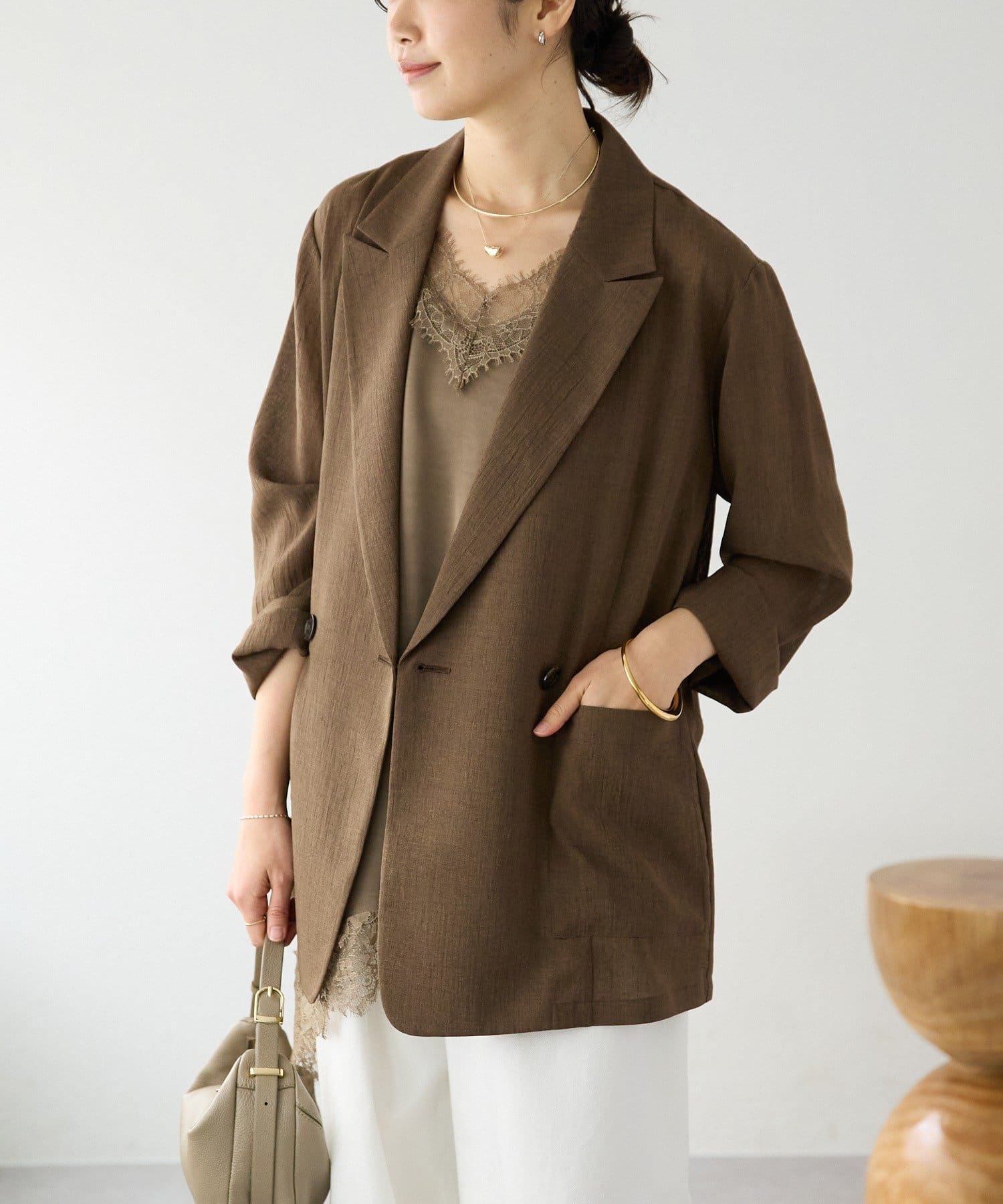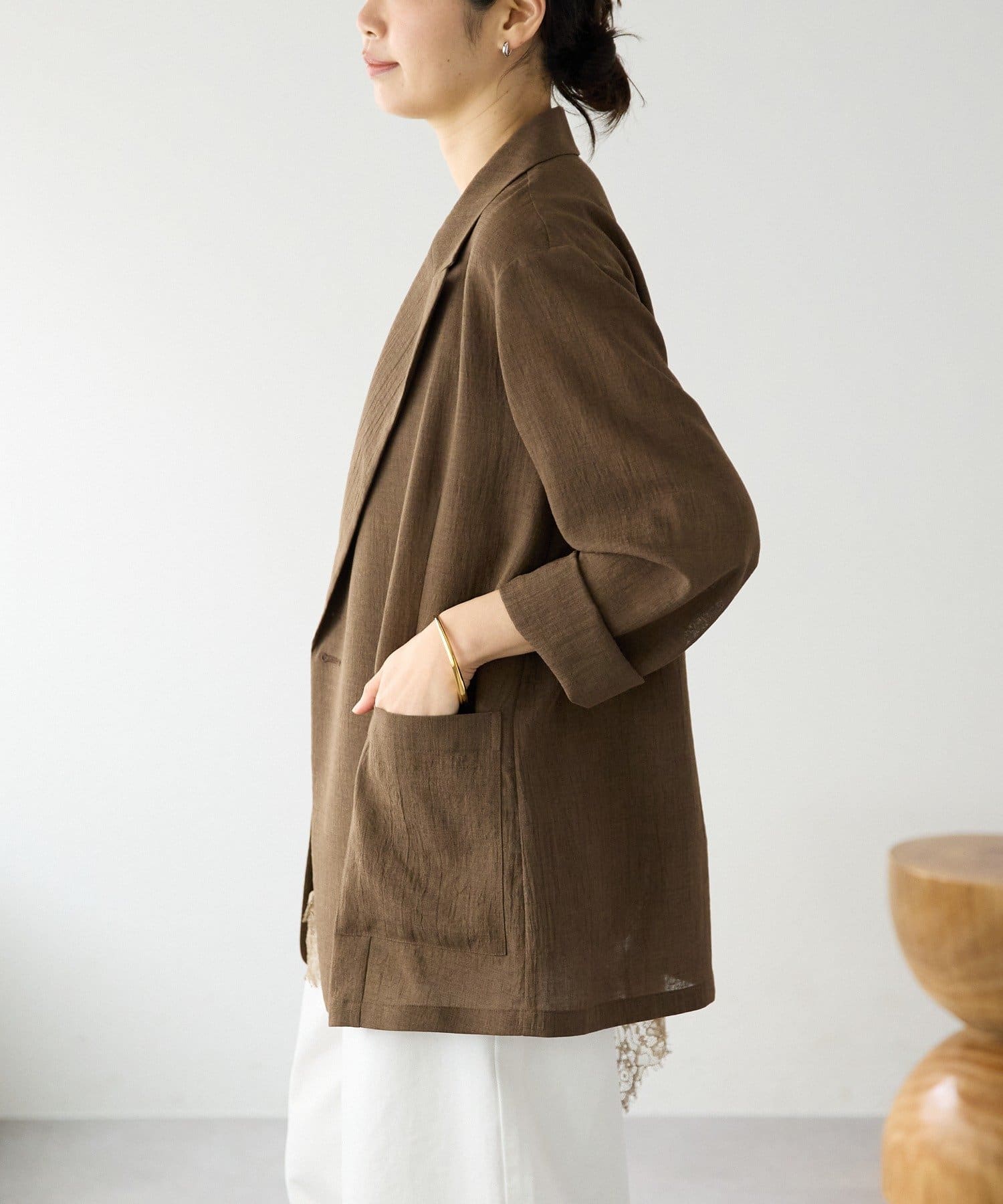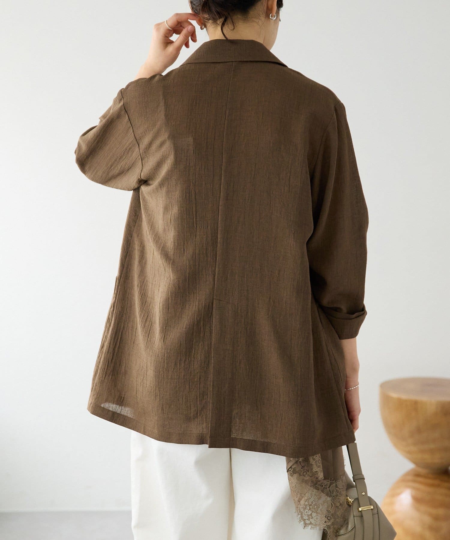 凹凸のある表情とナチュラルな透け感が涼しげな印象のジャケット。