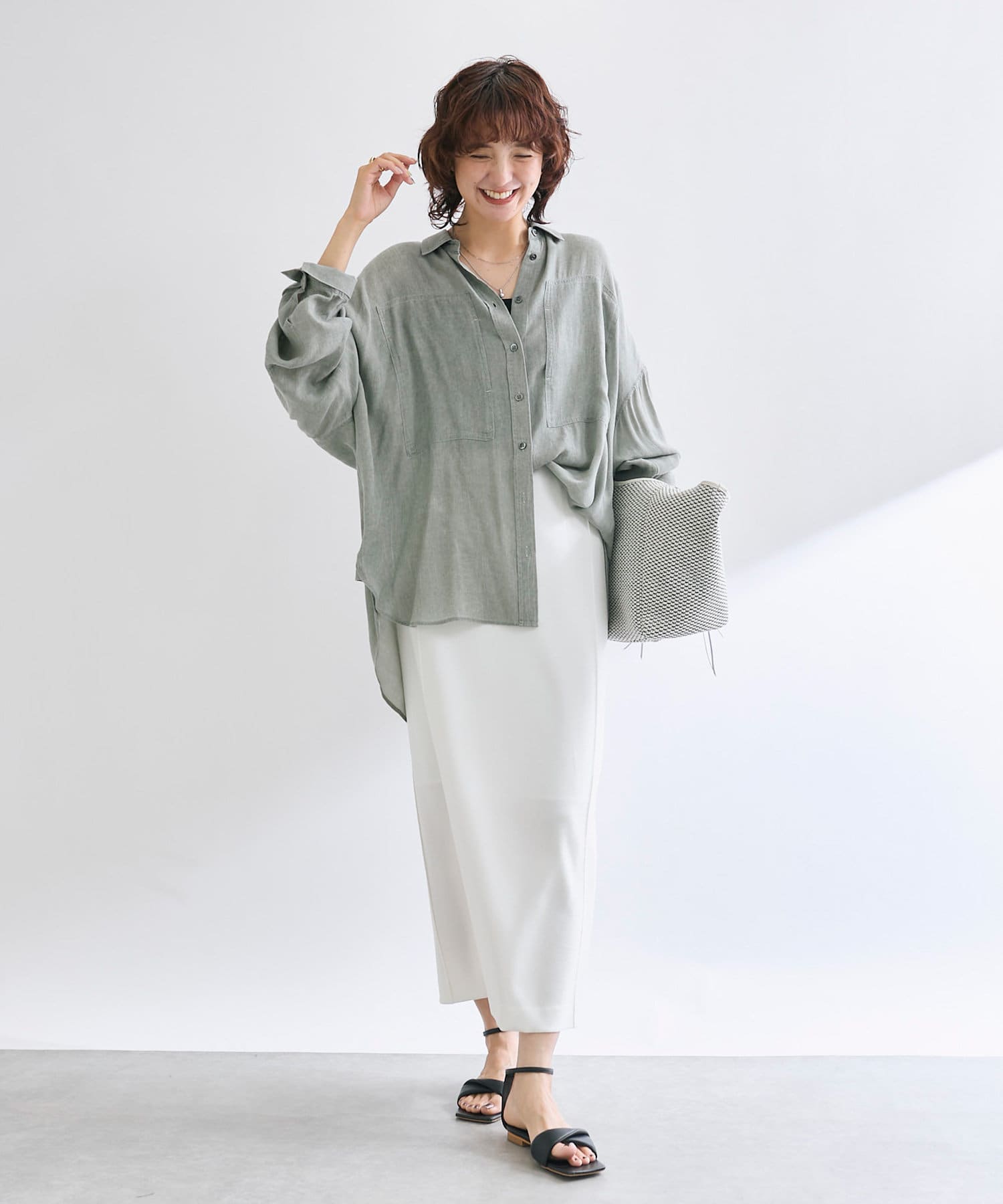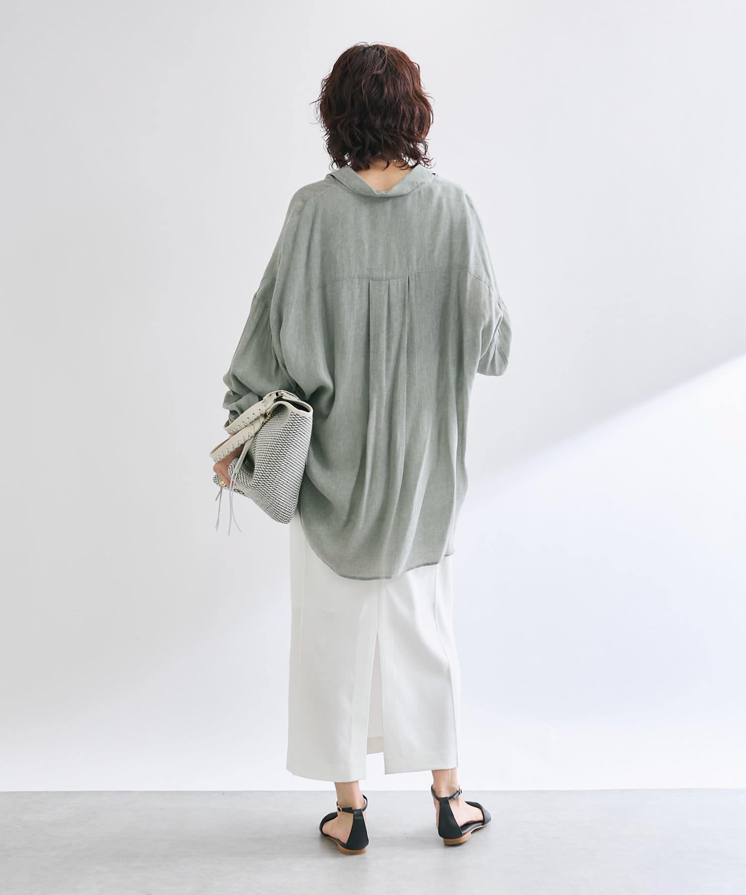 麻の風合いは楽しみつつ、シワを気にせず着まわしていただけるので、通勤対応としてもおすすめ◎