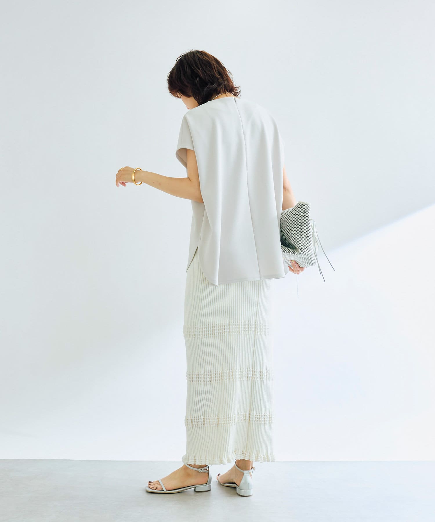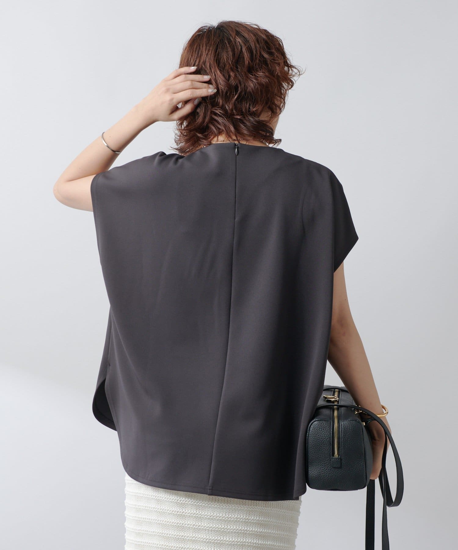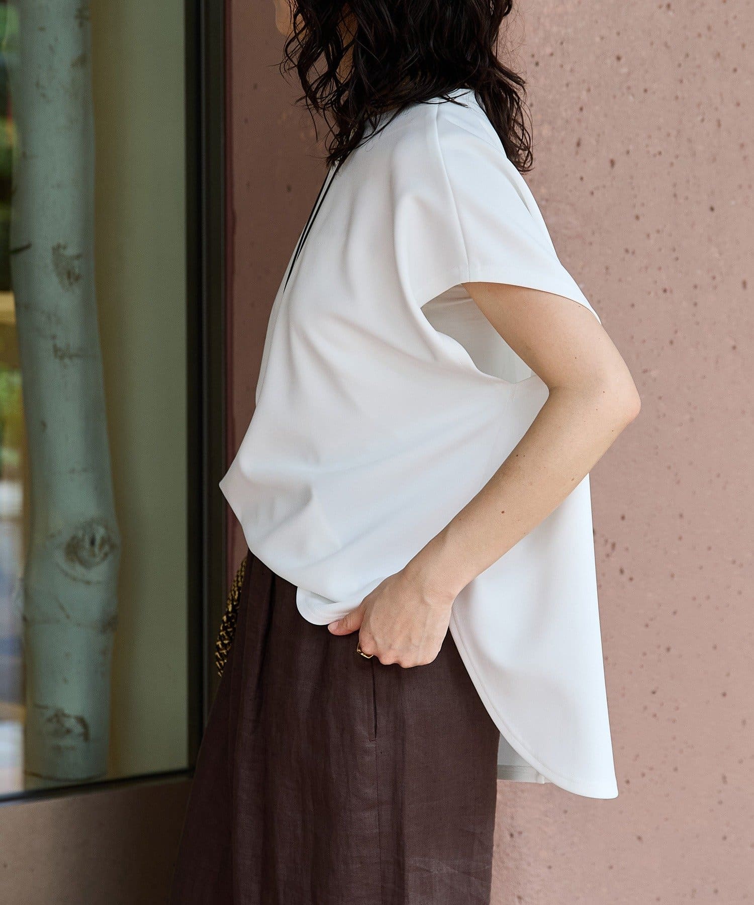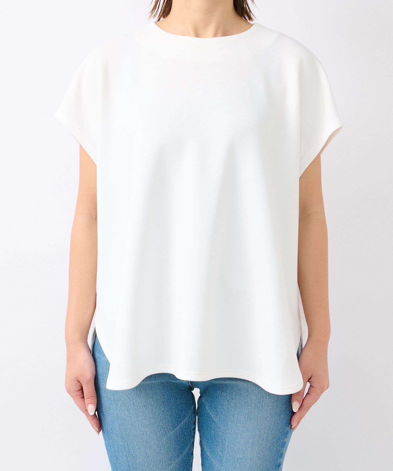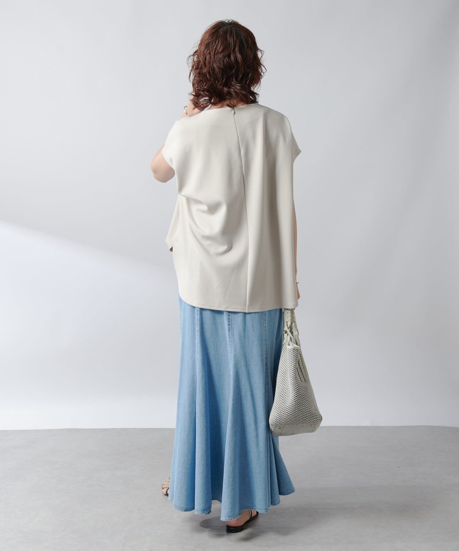 やわらかな着心地の素材でキレイ目なシルエットながら体型カバーが叶う一枚に。