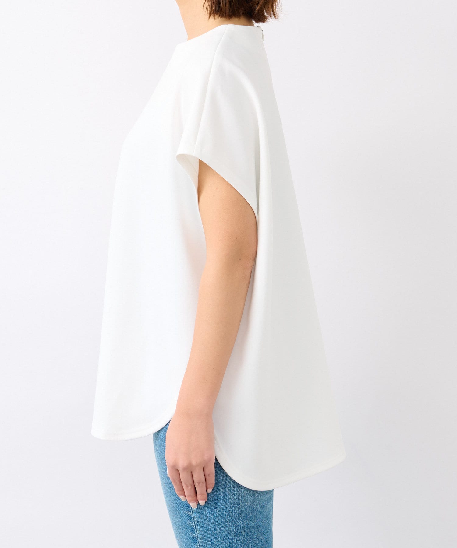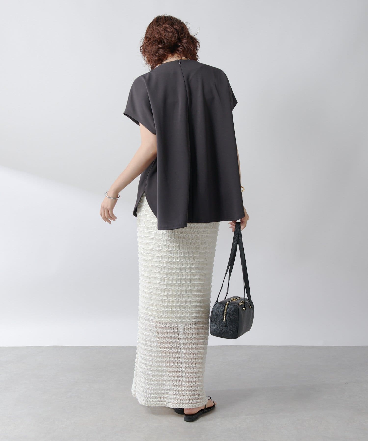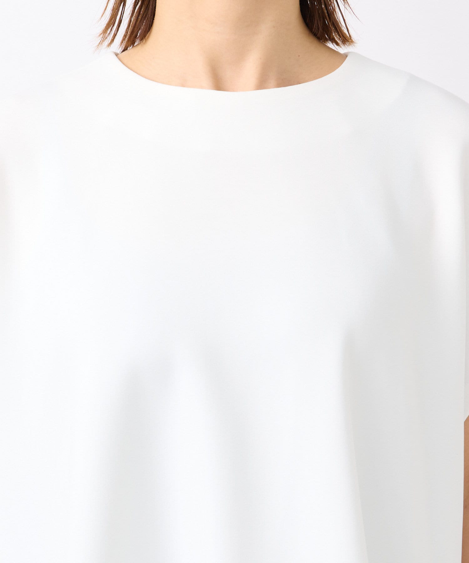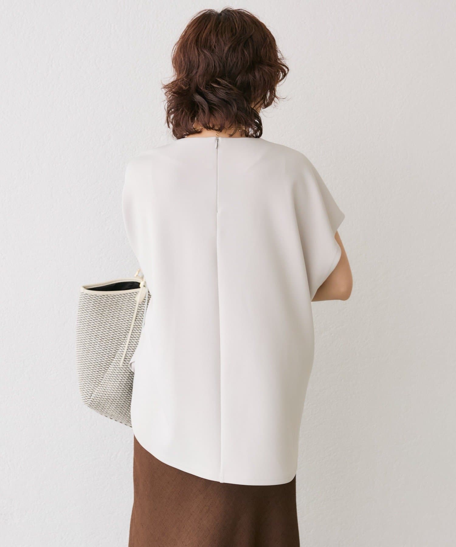 やわらかな着心地の素材でキレイ目なシルエットながら体型カバーが叶う一枚に。