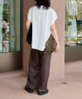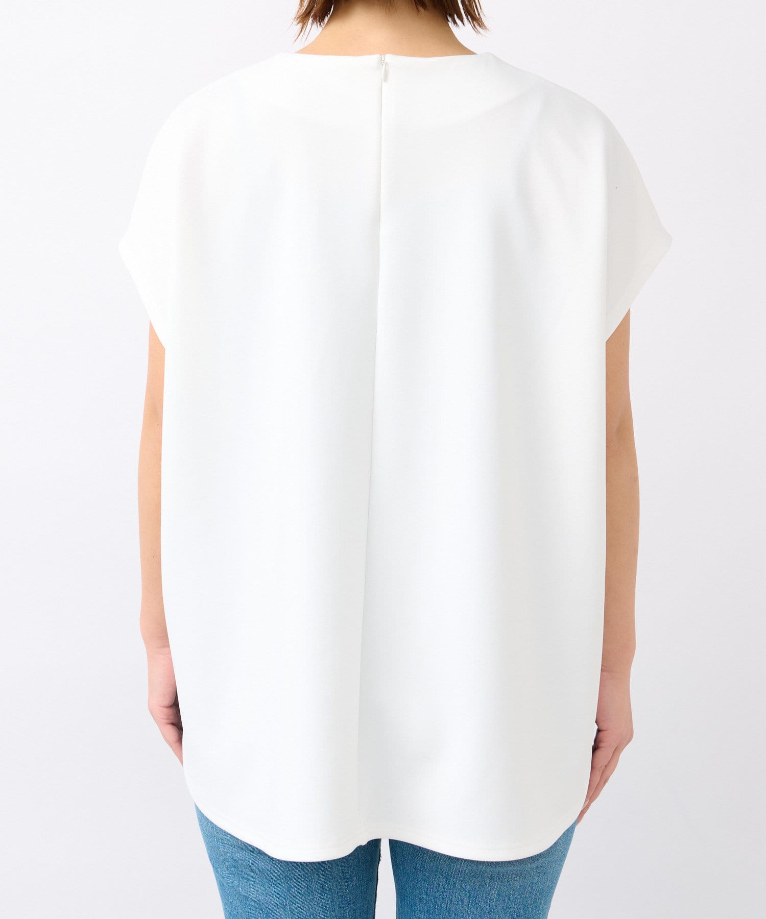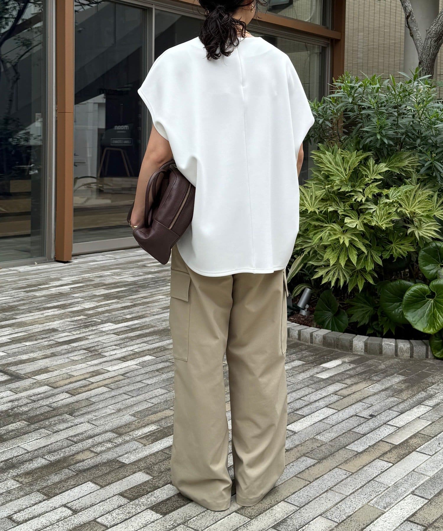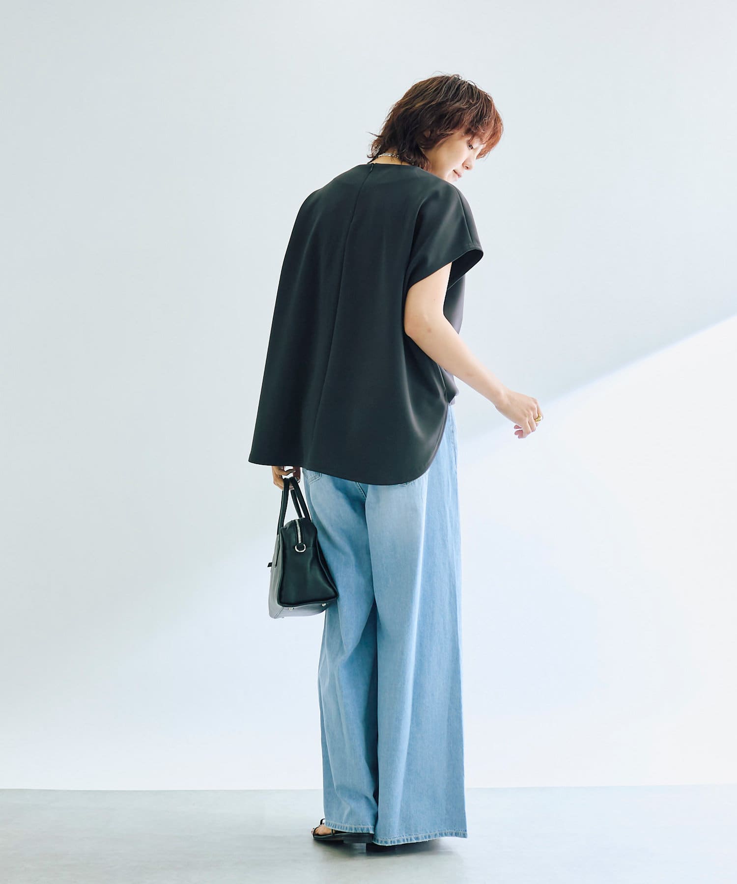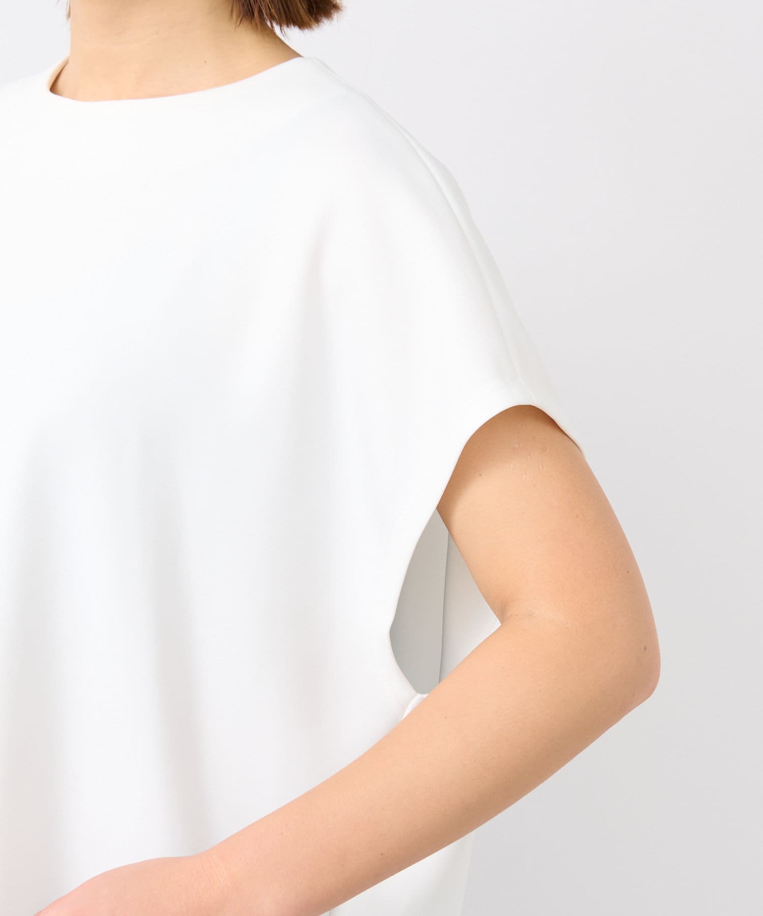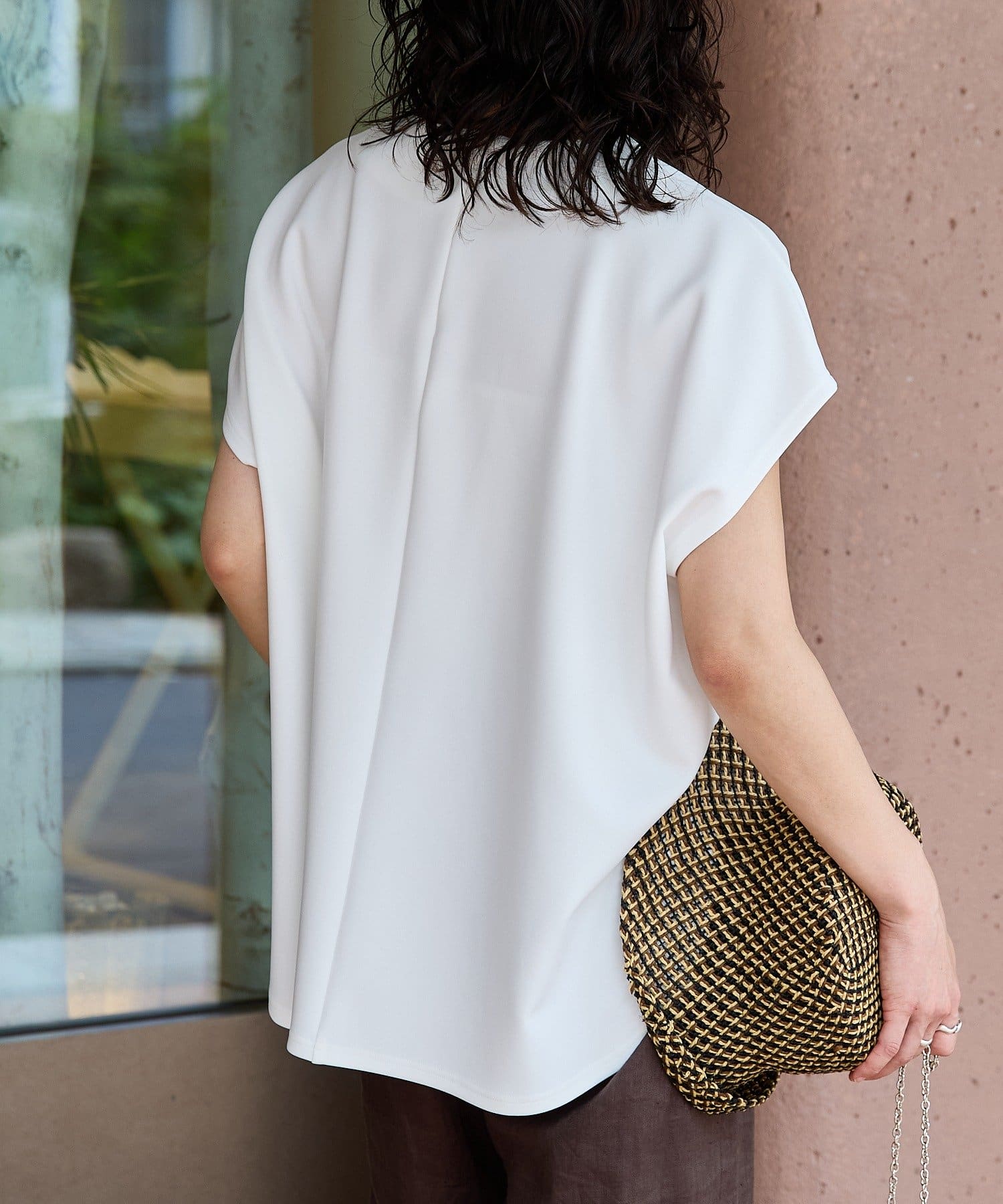 やわらかな着心地の素材でキレイ目なシルエットながら体型カバーが叶う一枚に。
