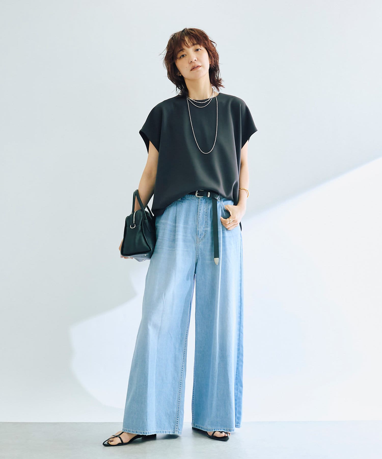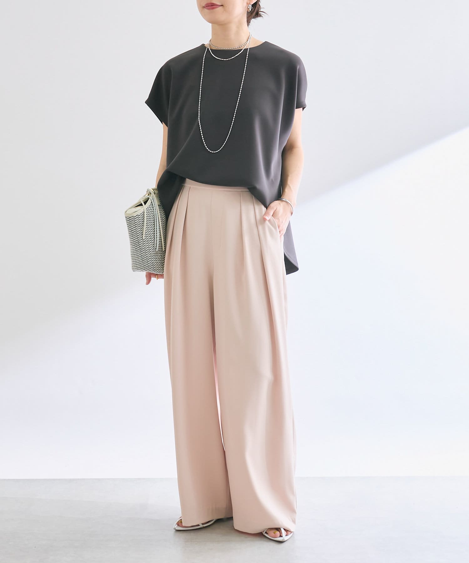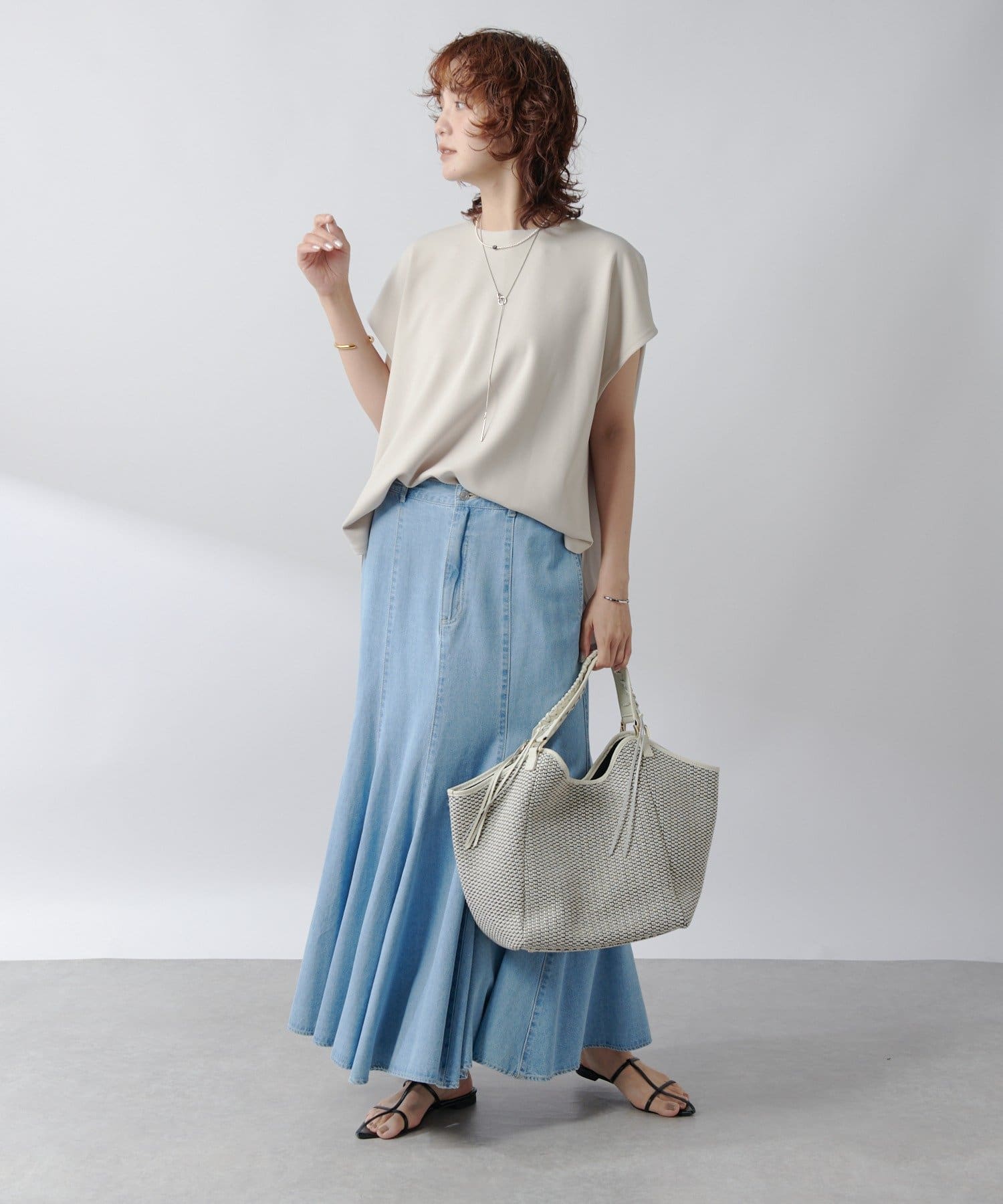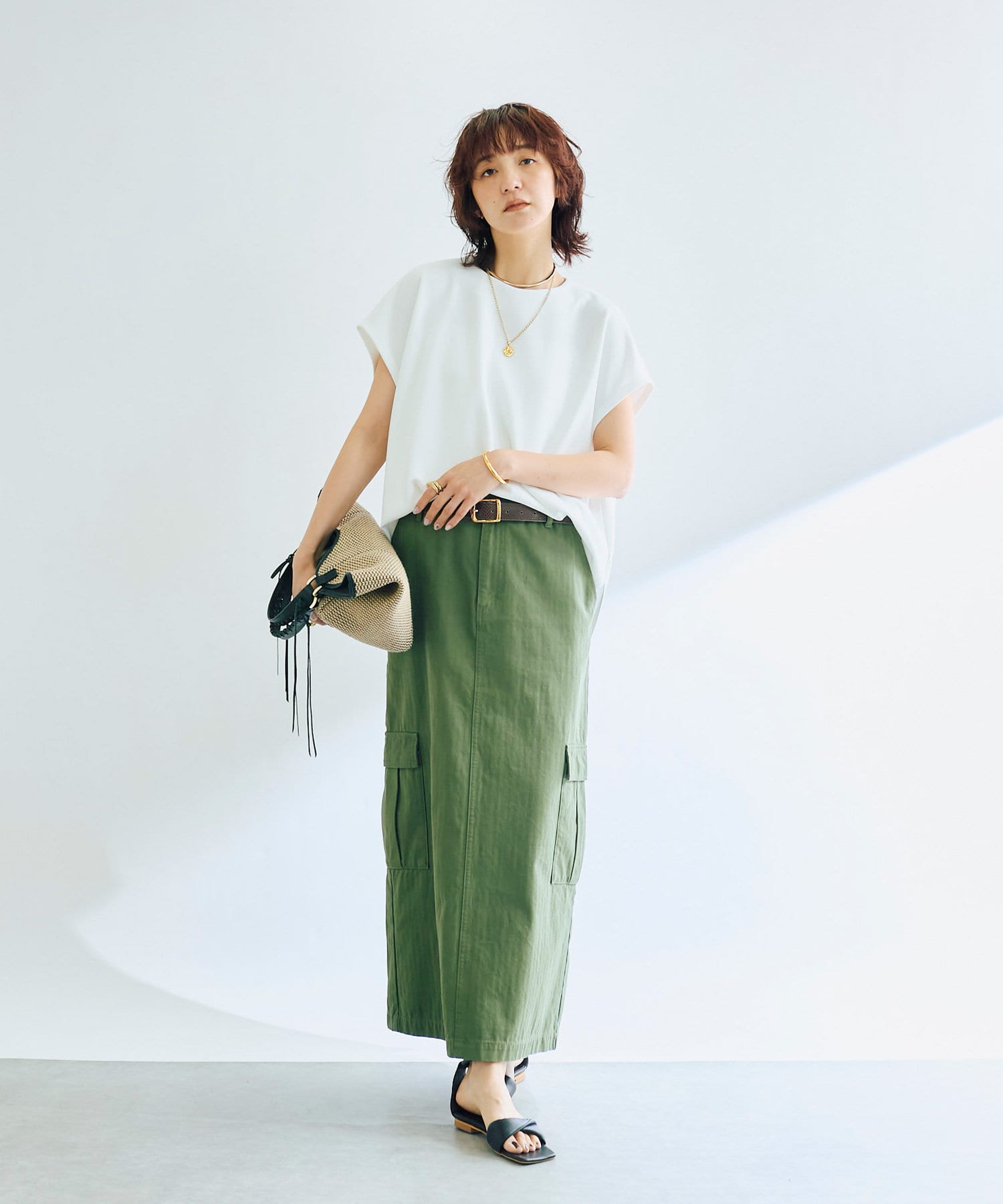 ワイドパンツやマキシスカートと合わせたコーディネートがおススメです。