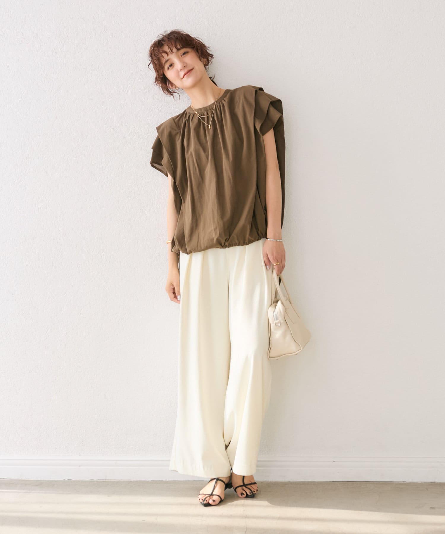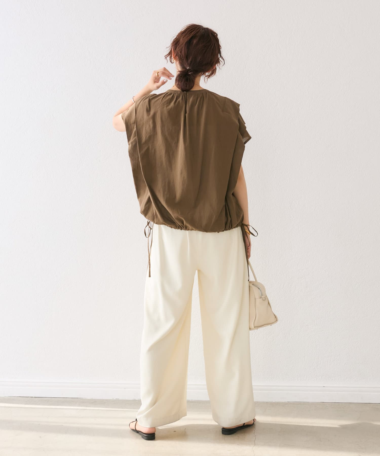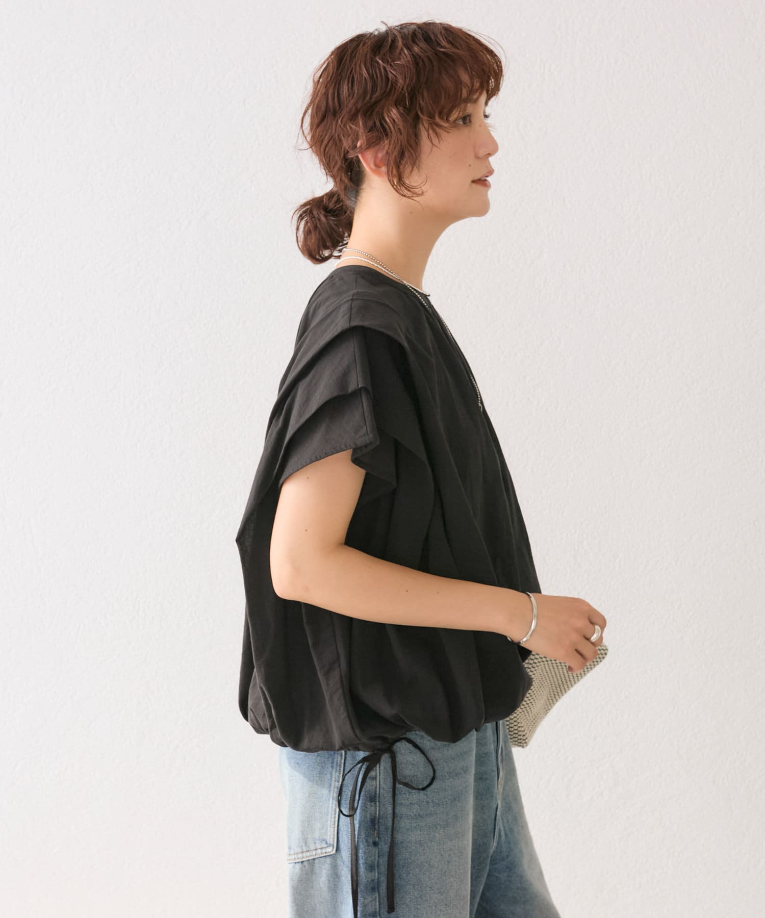 袖に入ったタックが華やかさもありつつ、二の腕をすっきり見せてくれます。