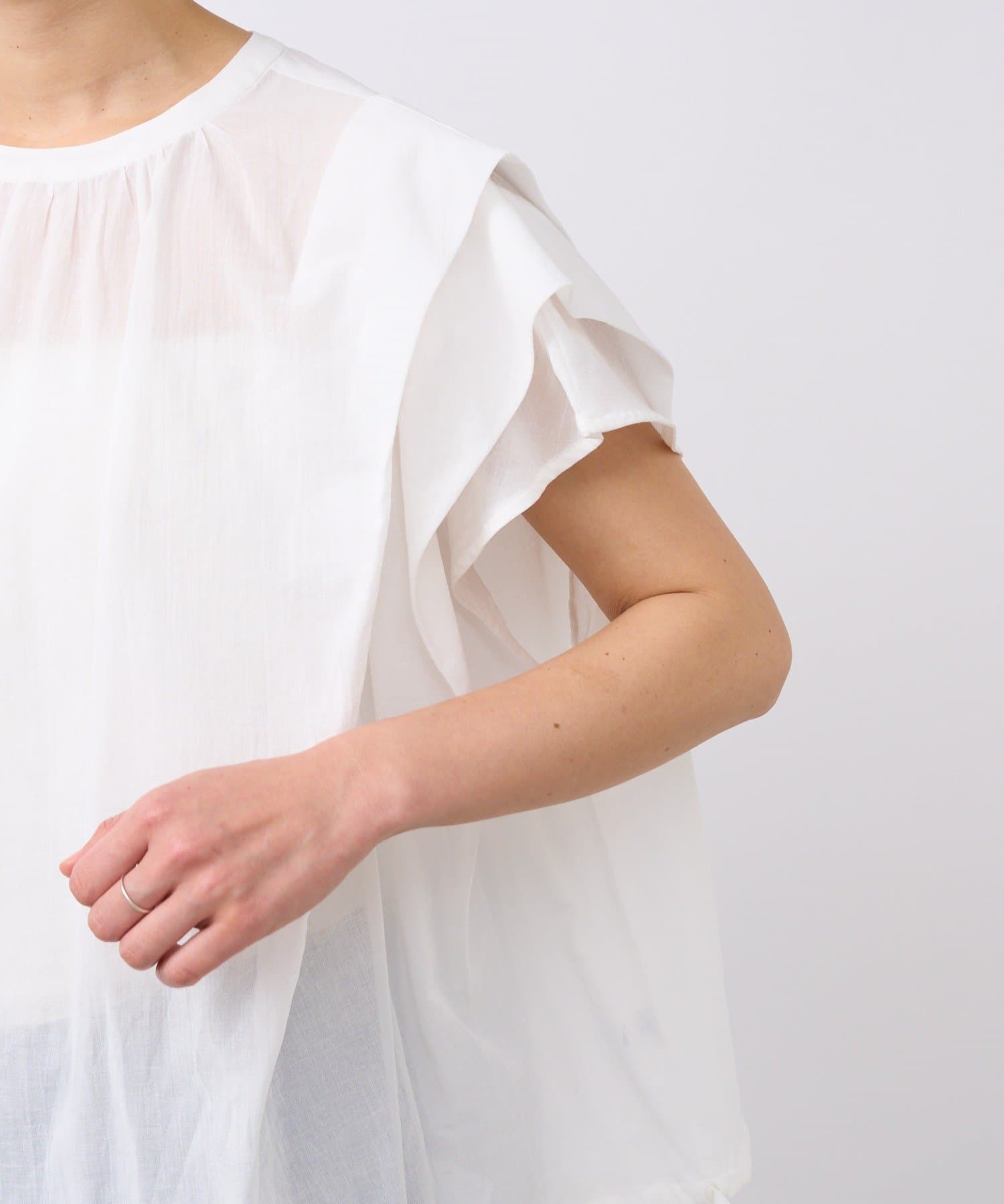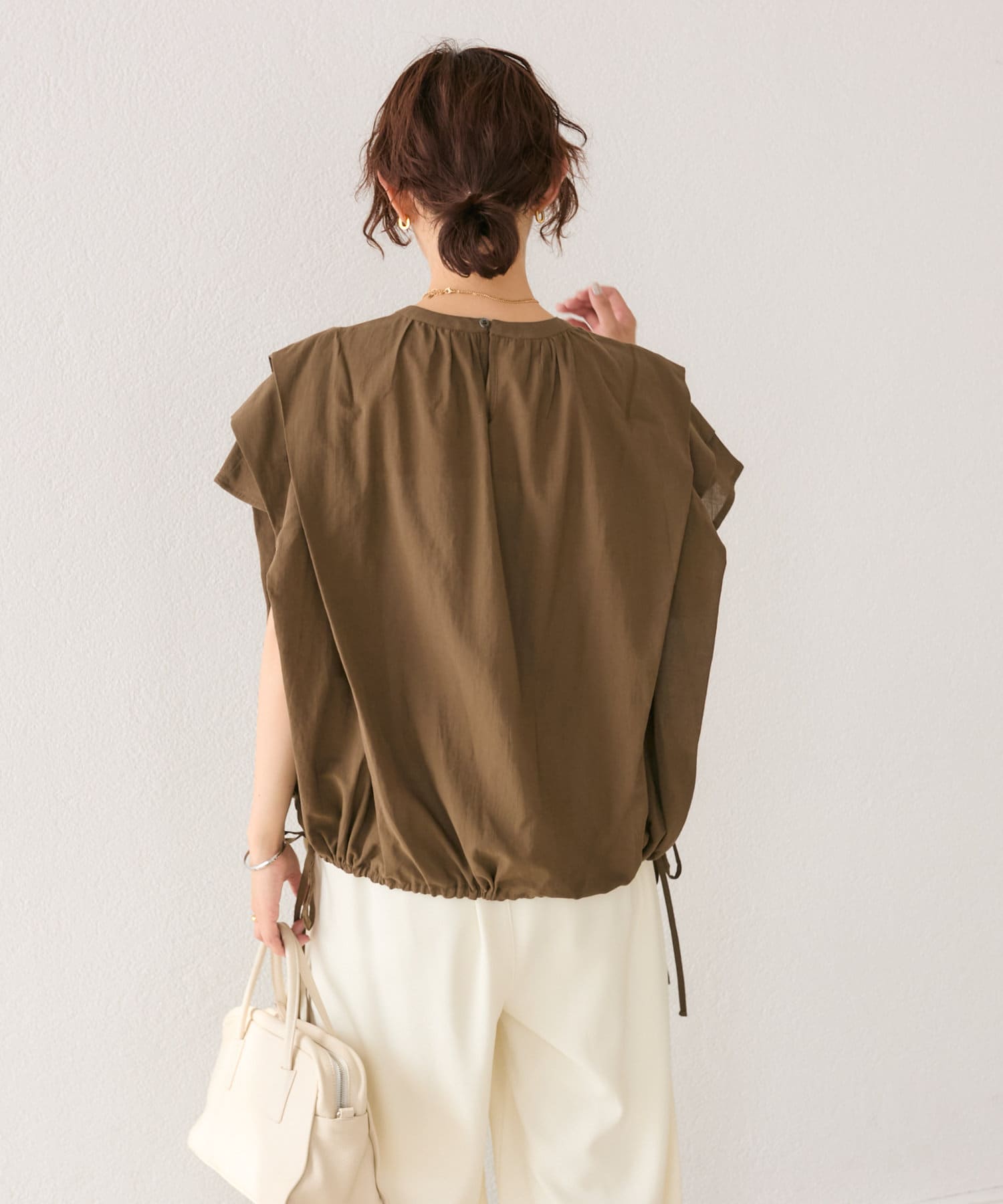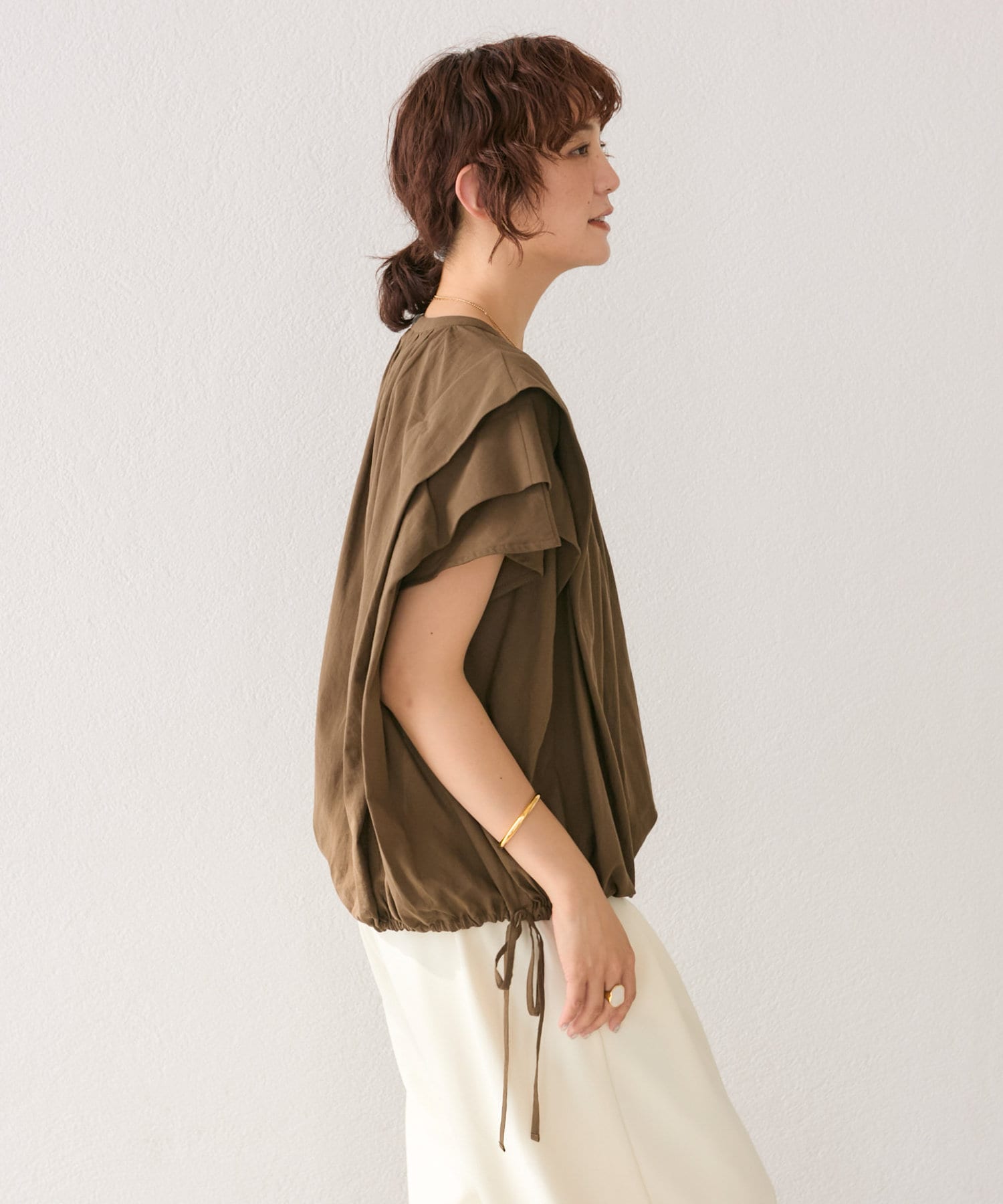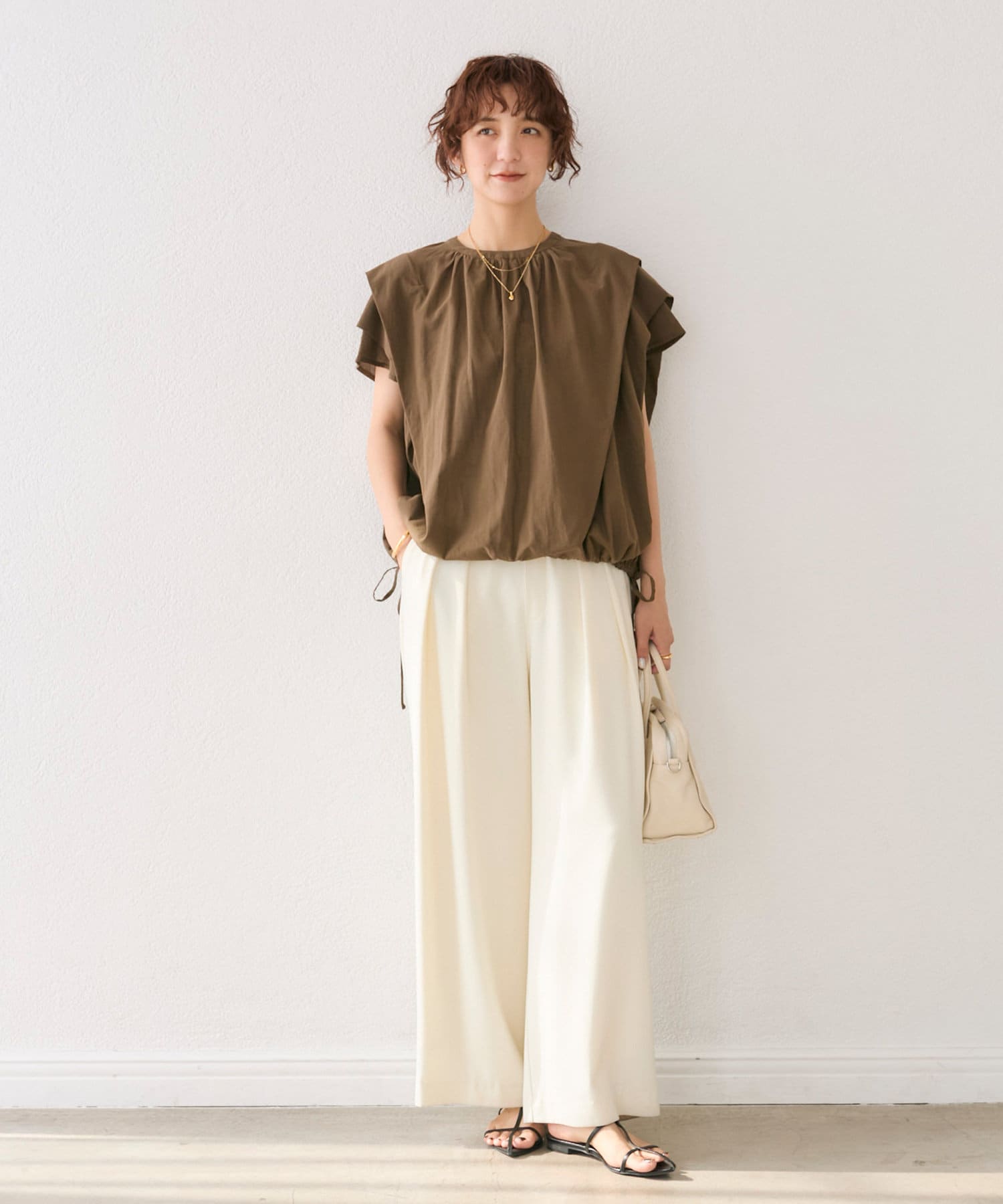 袖に入ったタックが華やかさもありつつ、二の腕をすっきり見せてくれます。