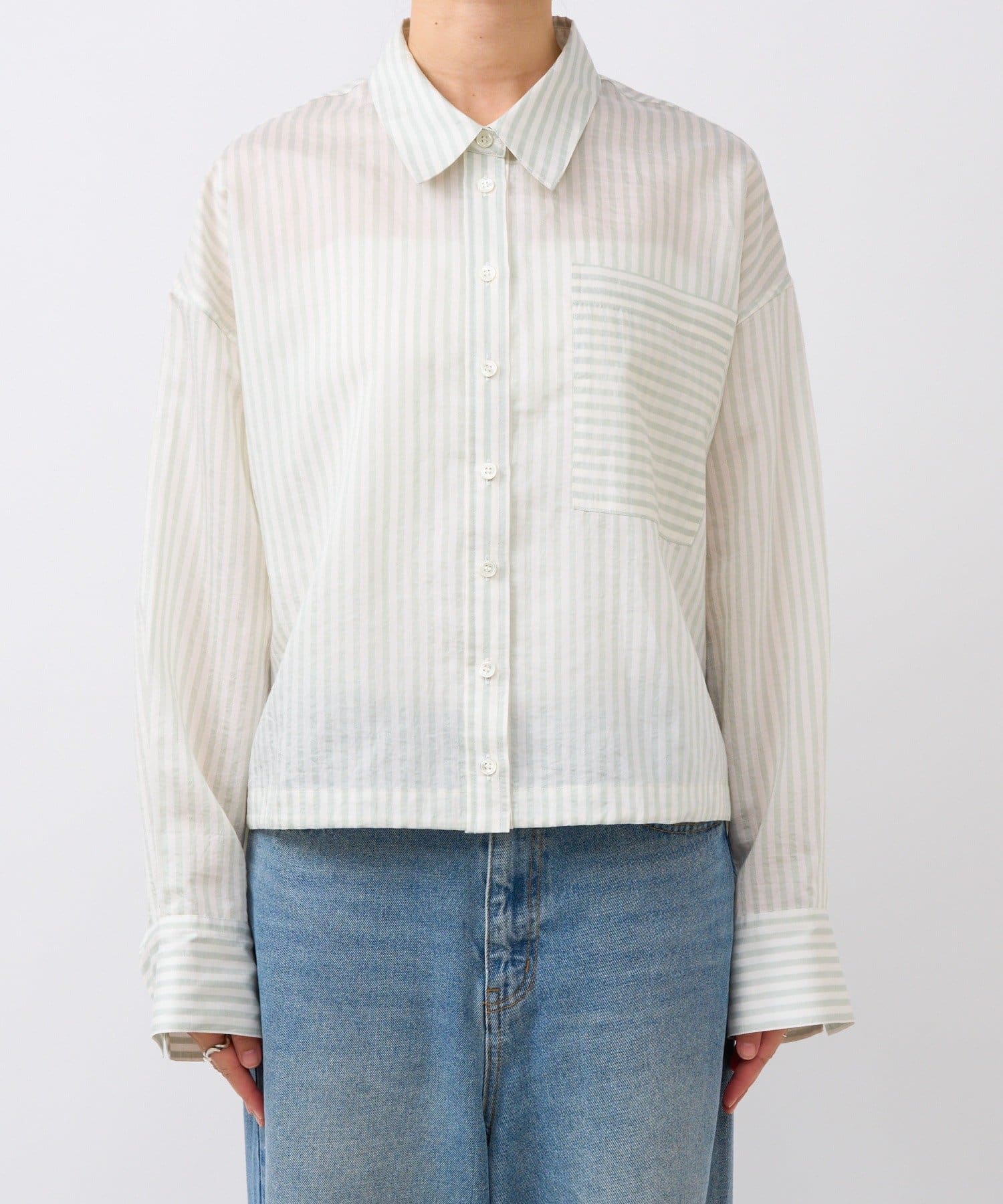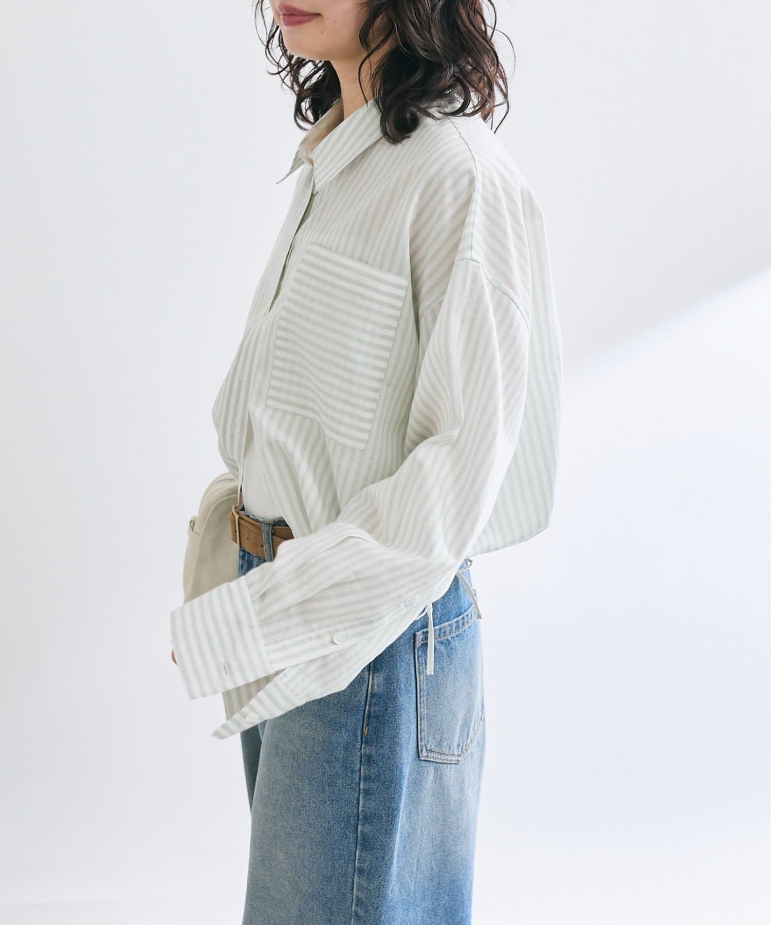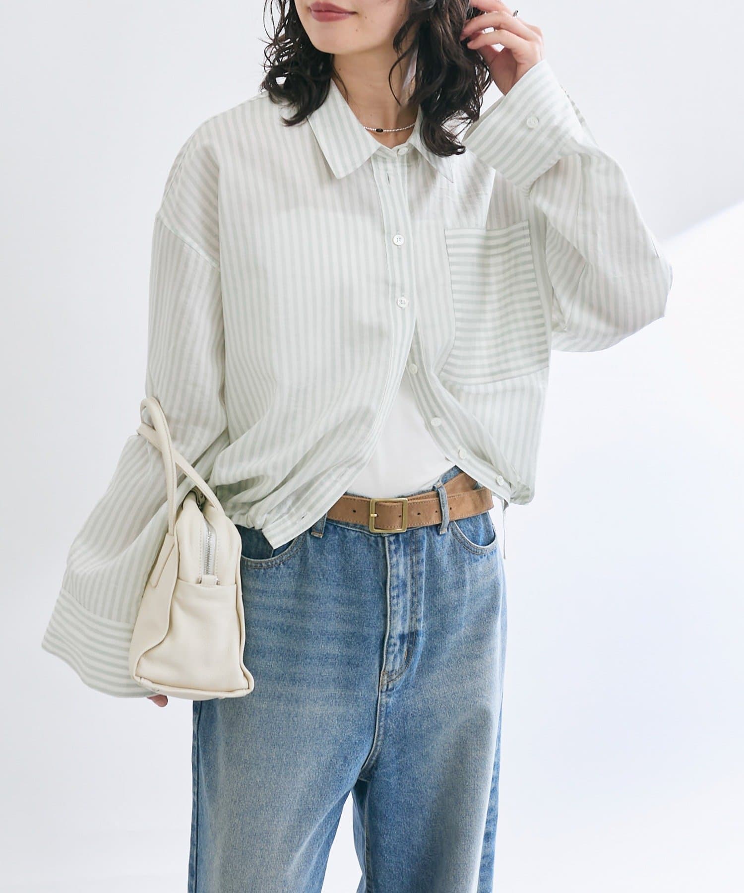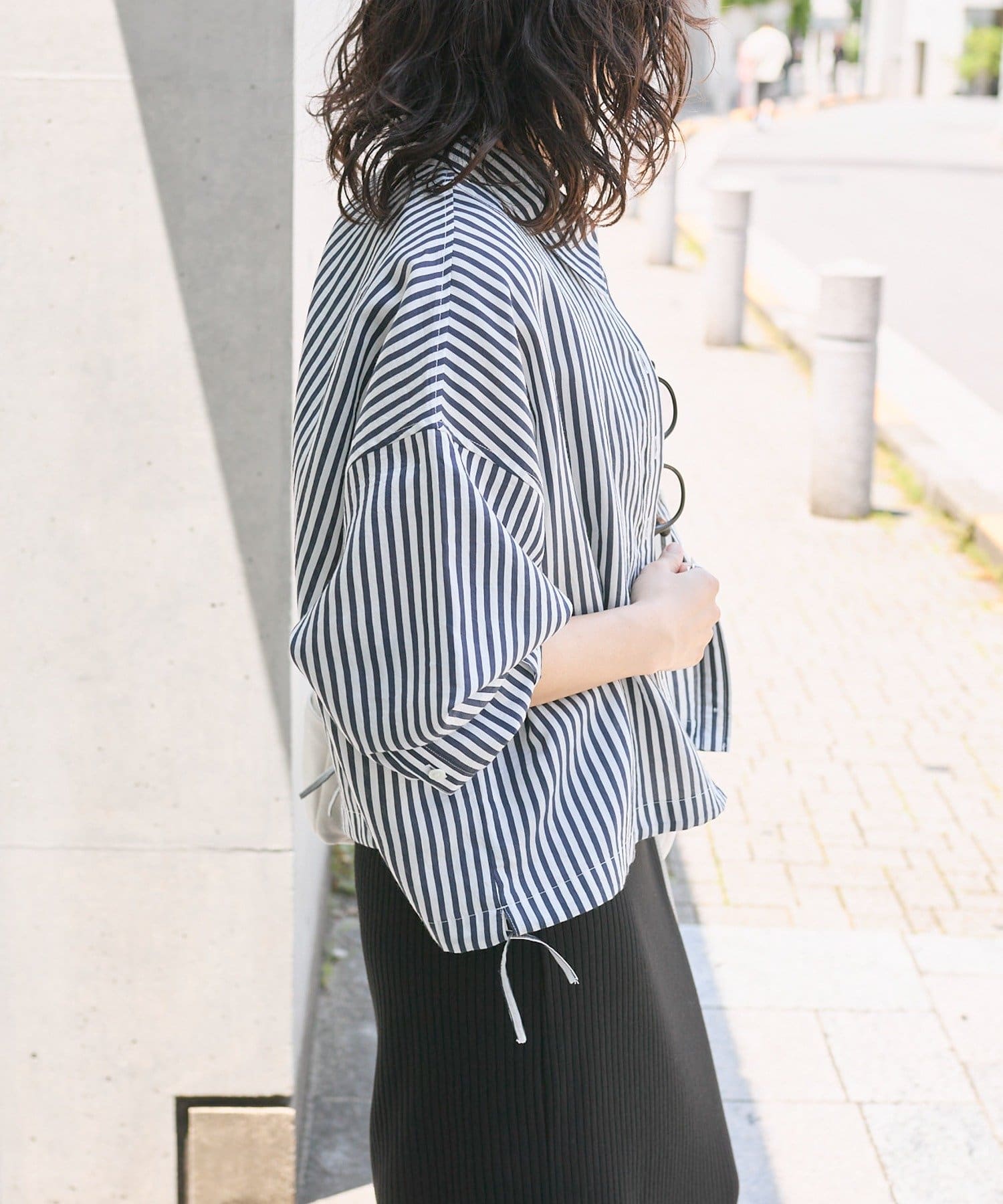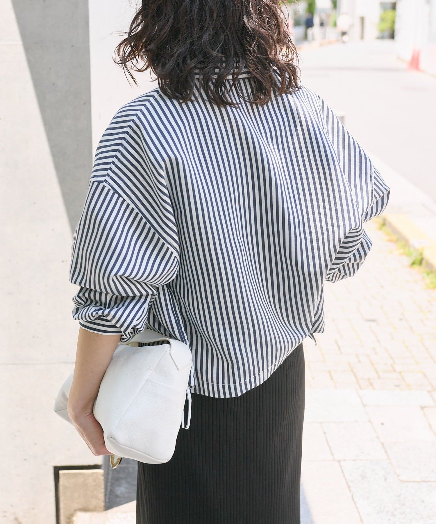 トレンド感抜群!ストライプ柄が映えるショート丈シャツ