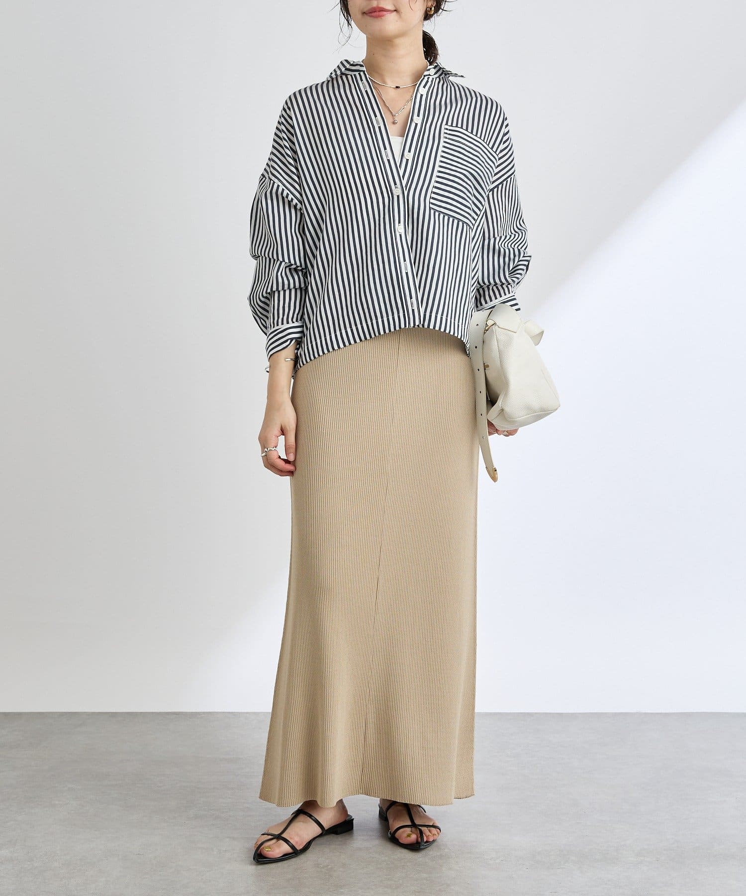 キレイさとリラックス感を両立させたストライプのシャツ。