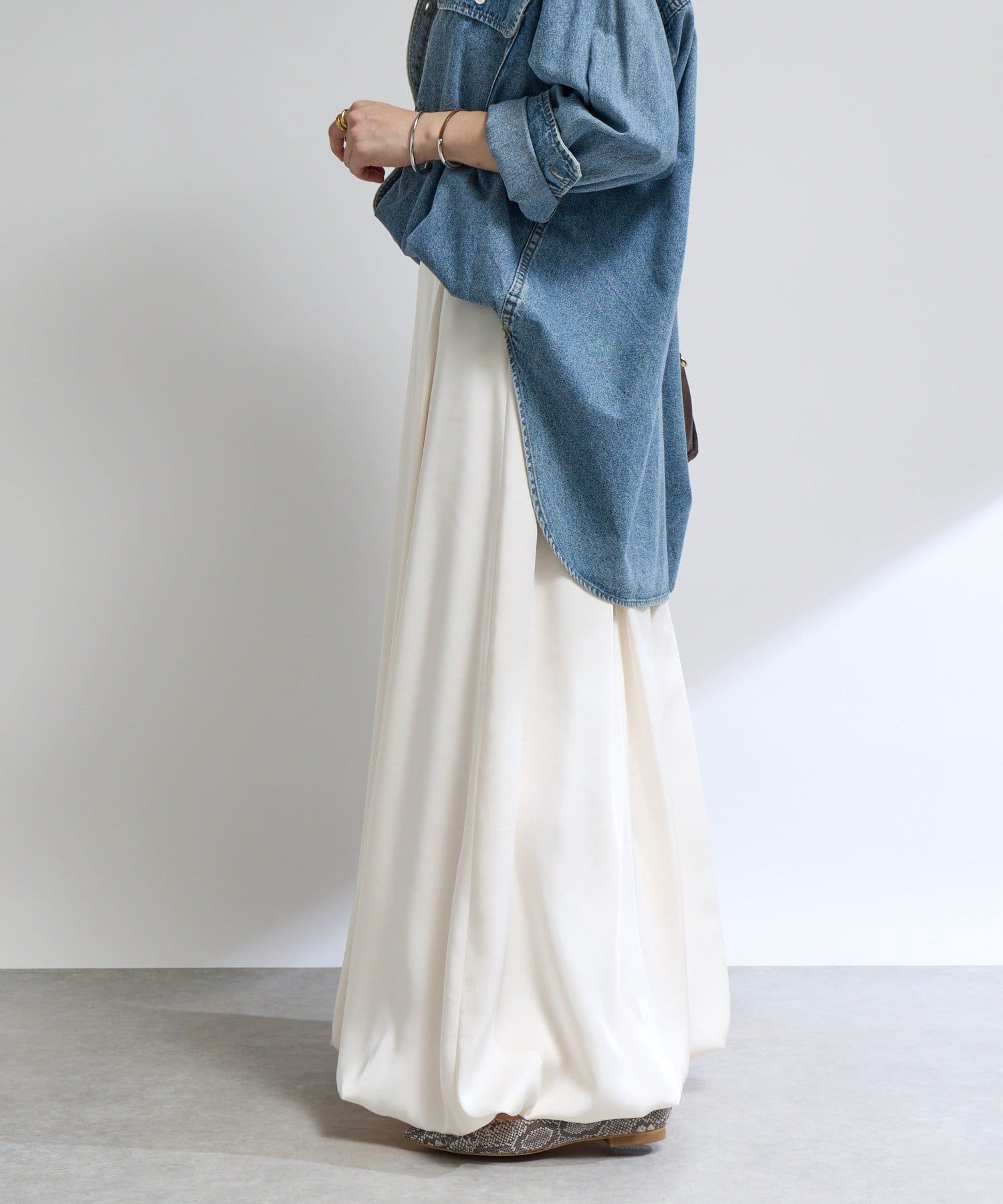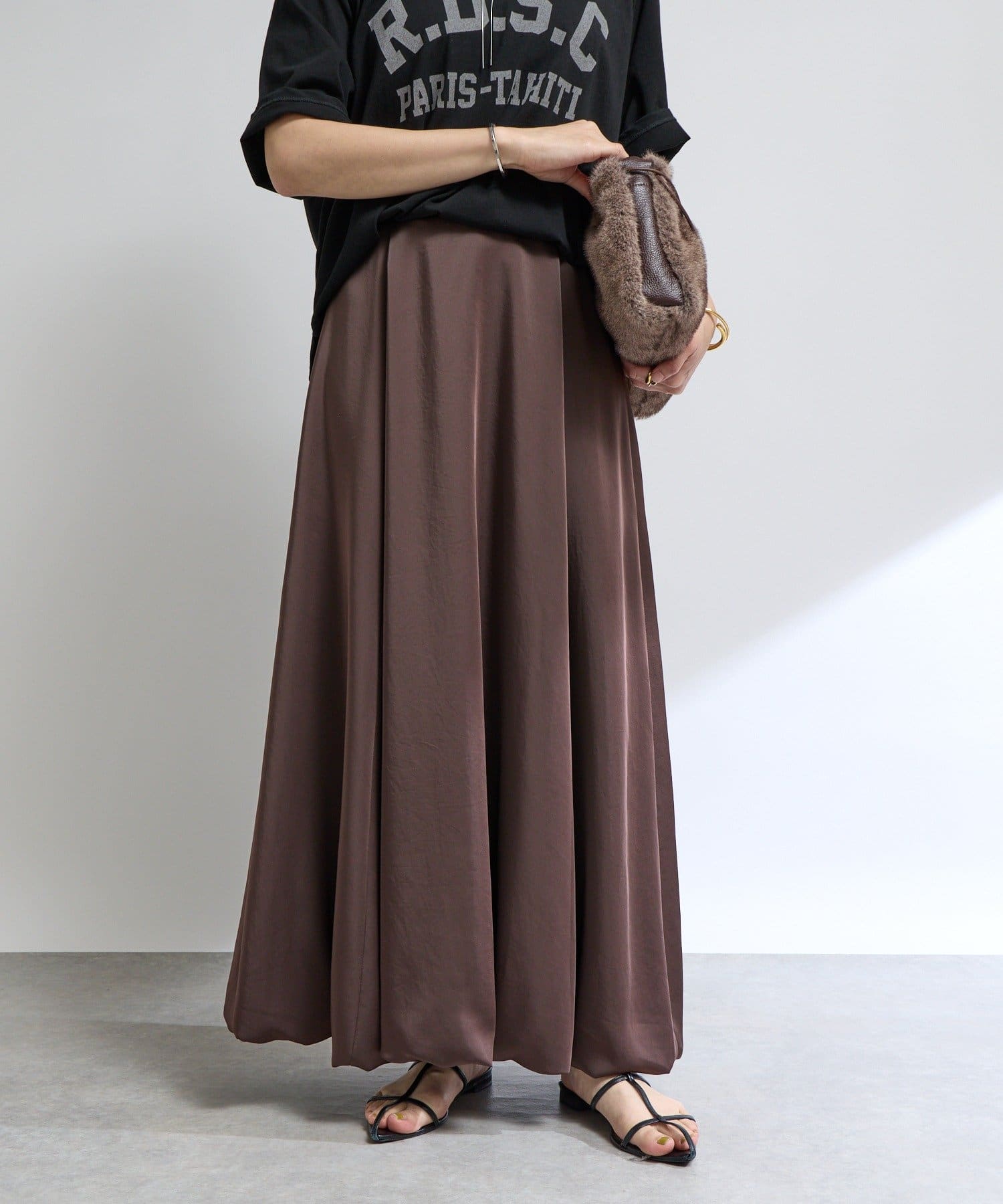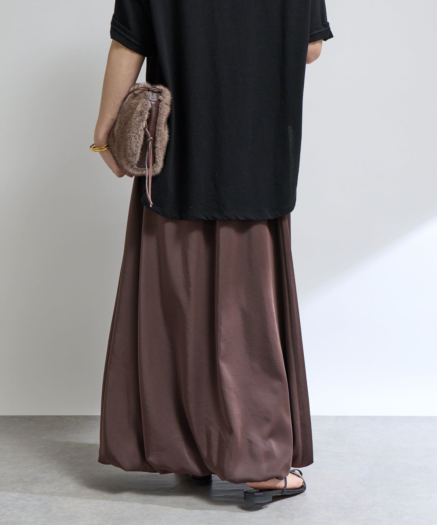 上品な光沢感が美しい、サテン素材のバルーンスカート。