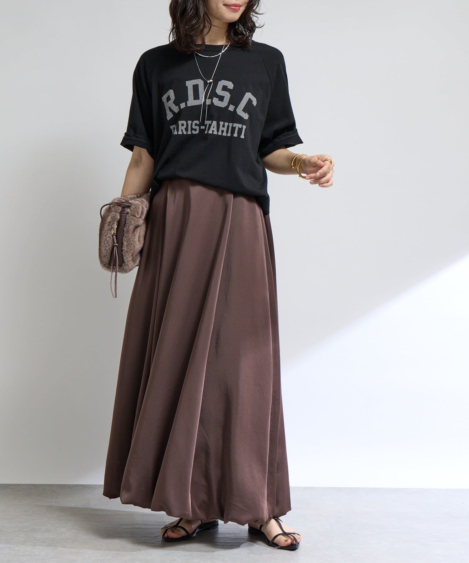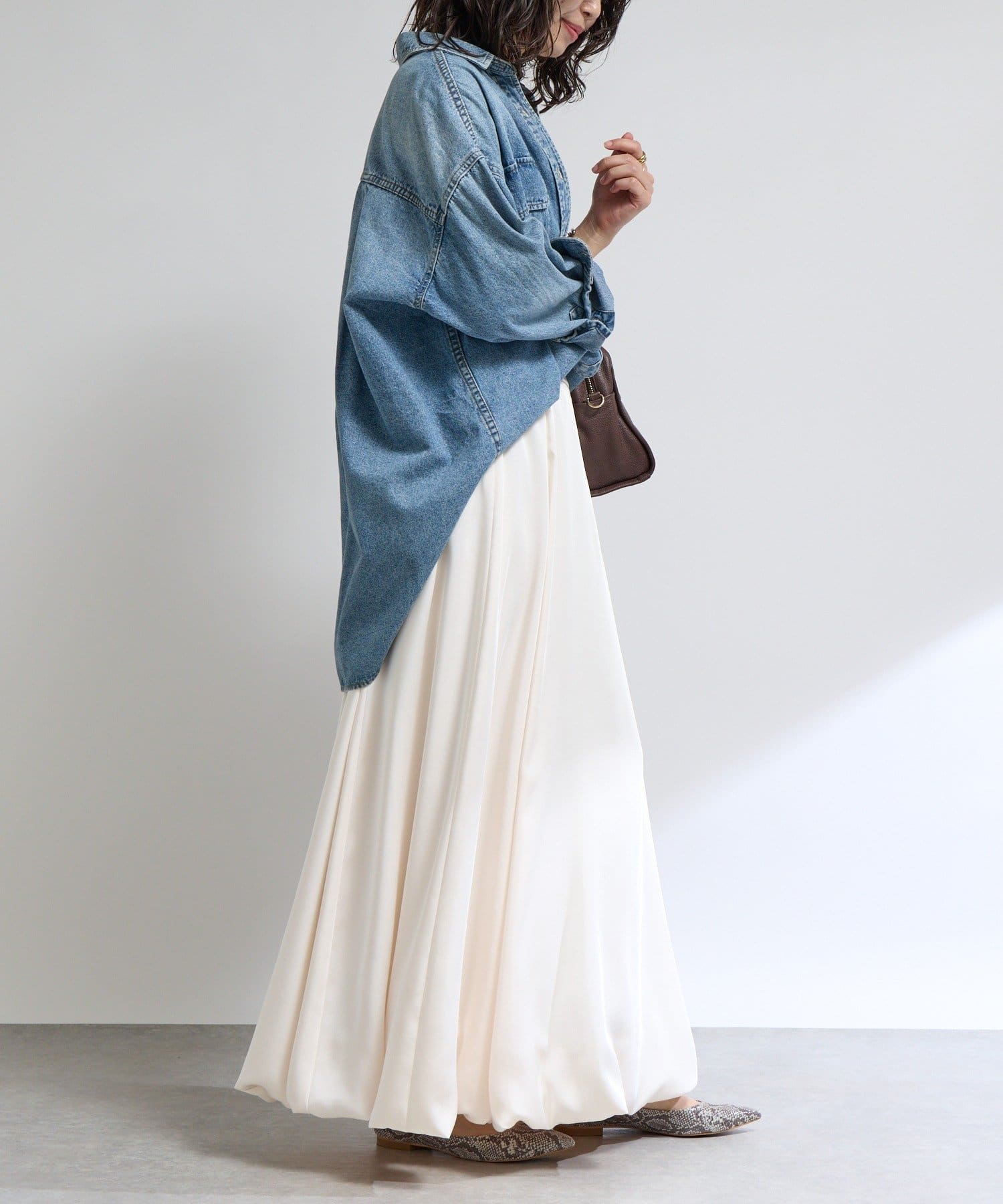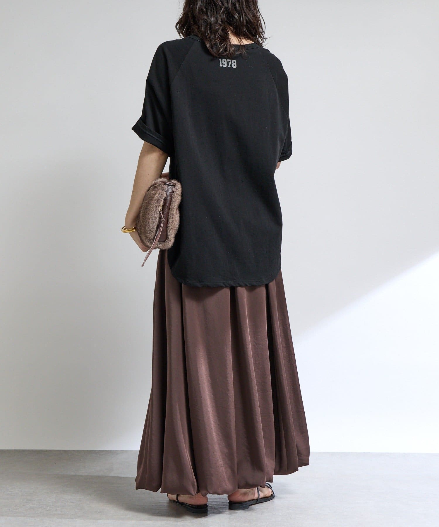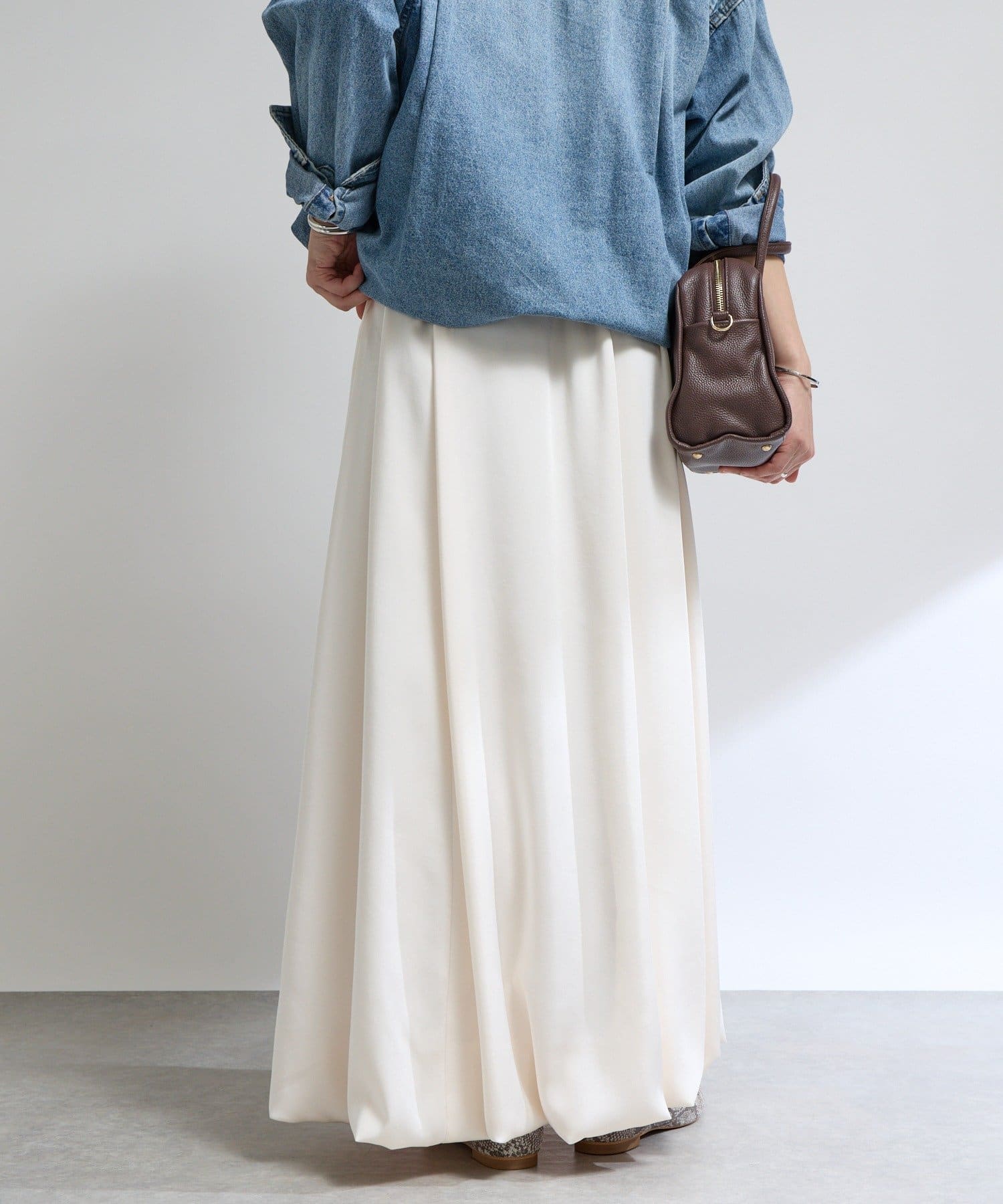 上品な光沢感が美しい、サテン素材のバルーンスカート。