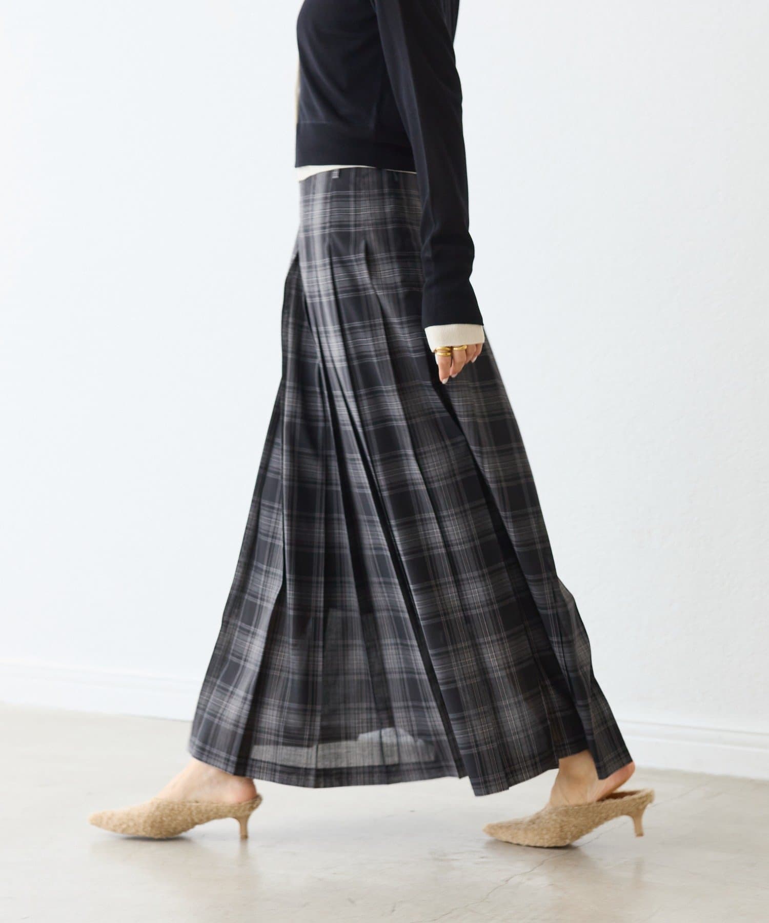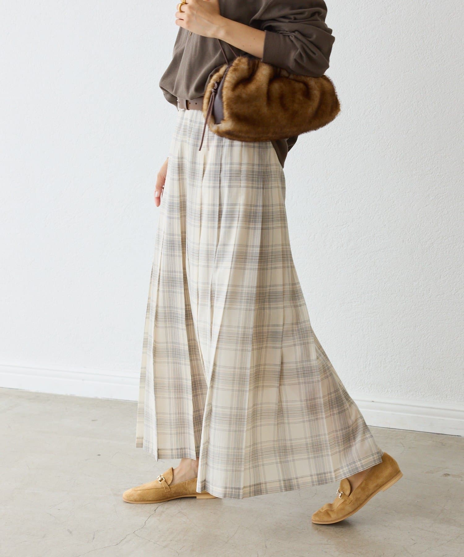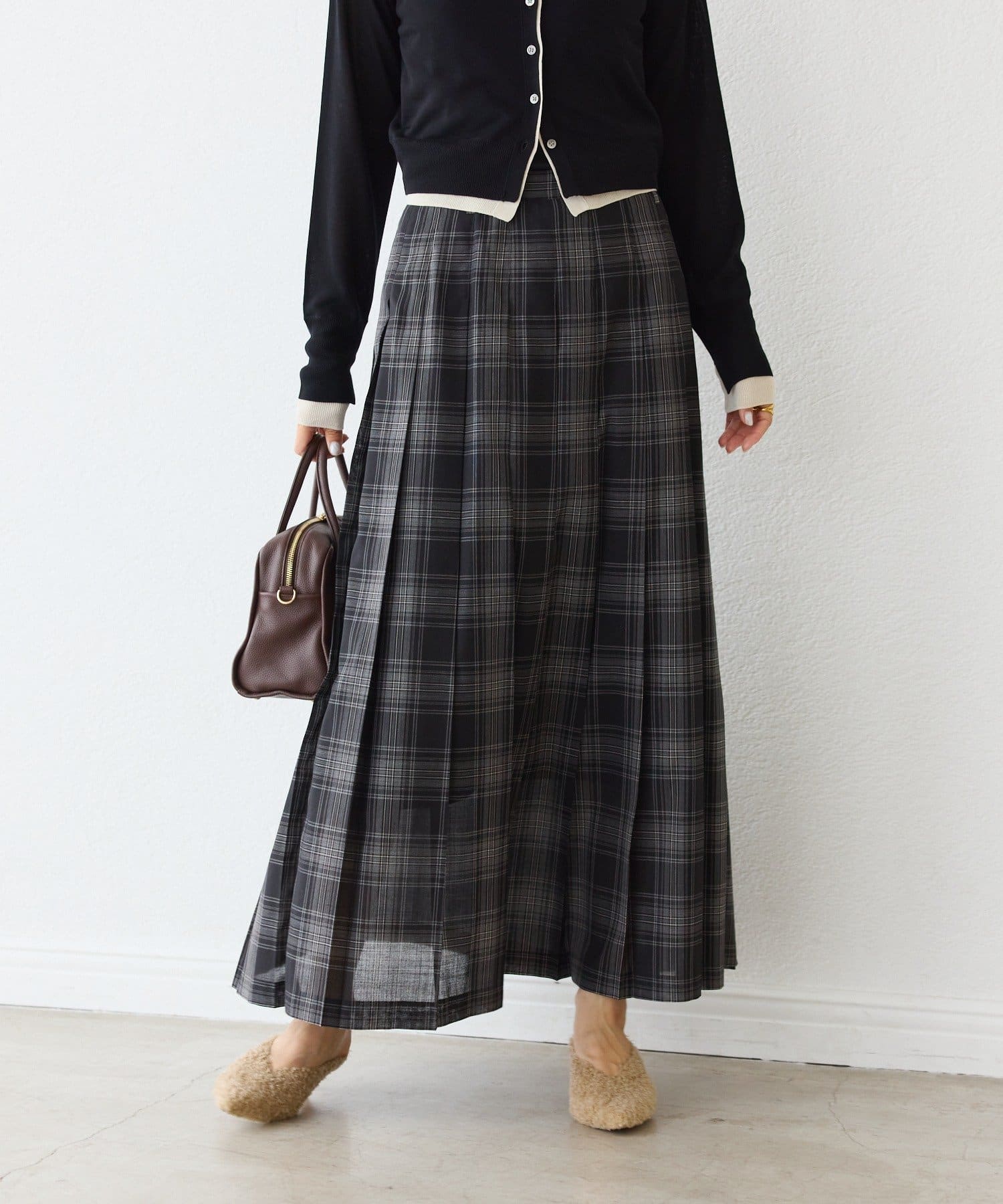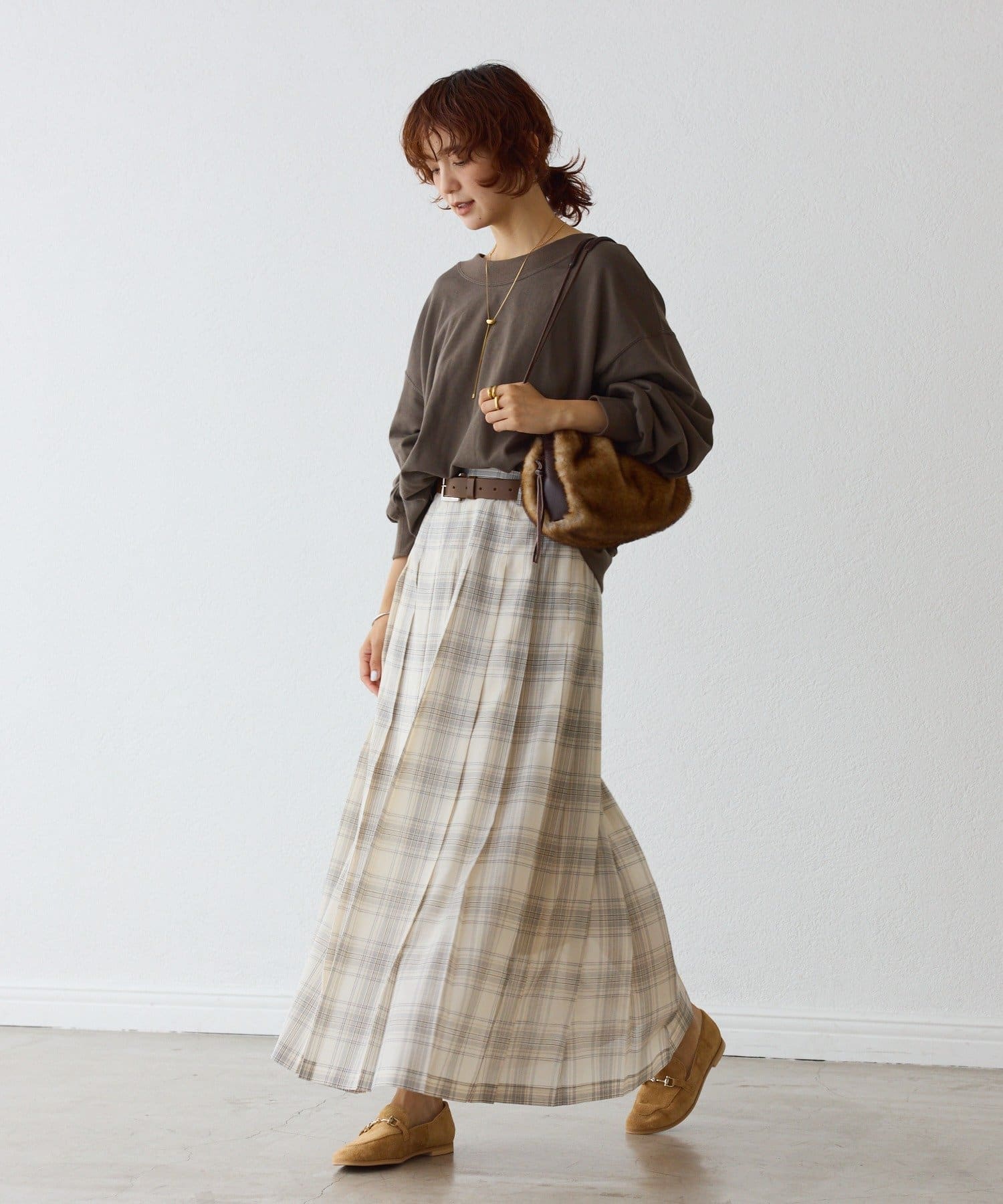 秋のトレンドのチェックをいち早く取り入れられるプリーツスカート。