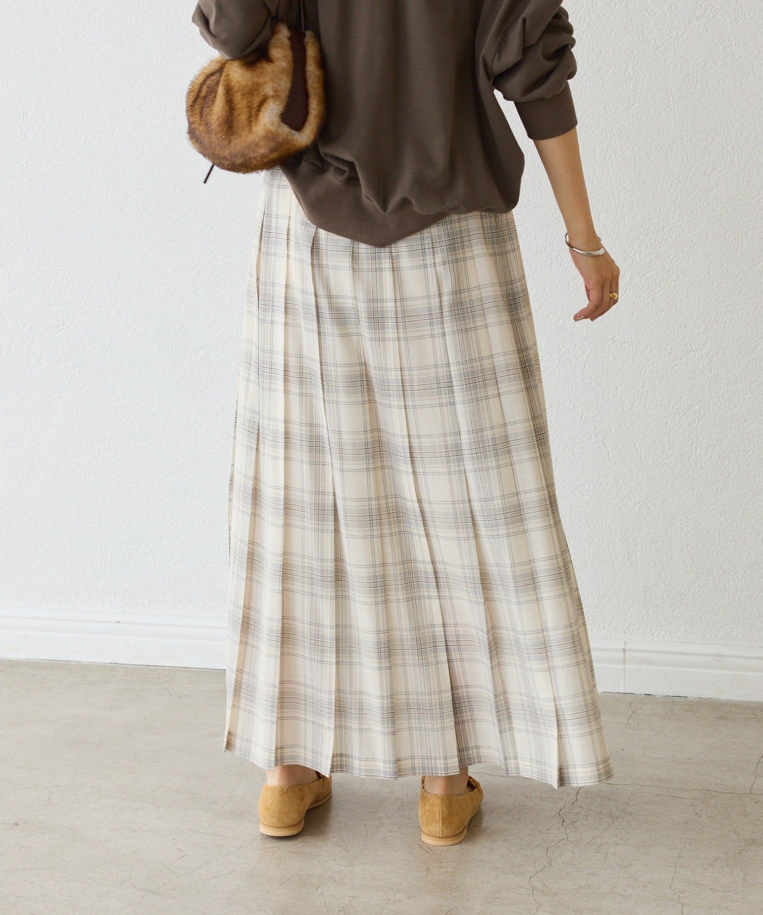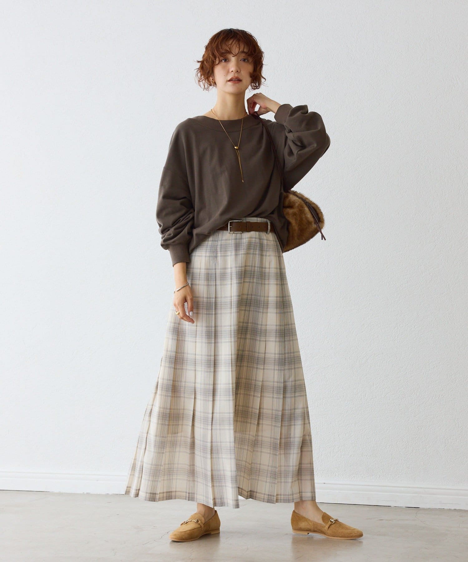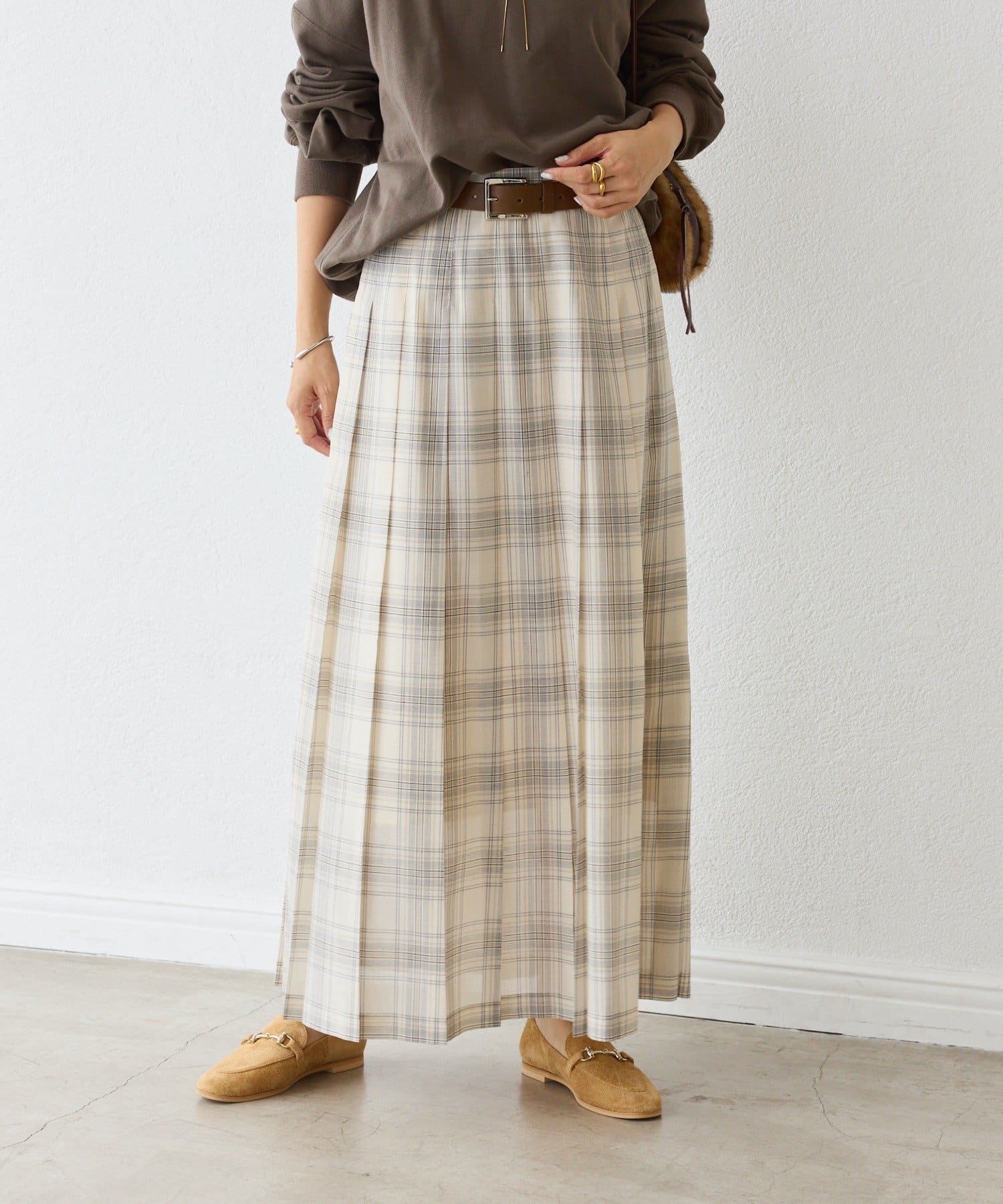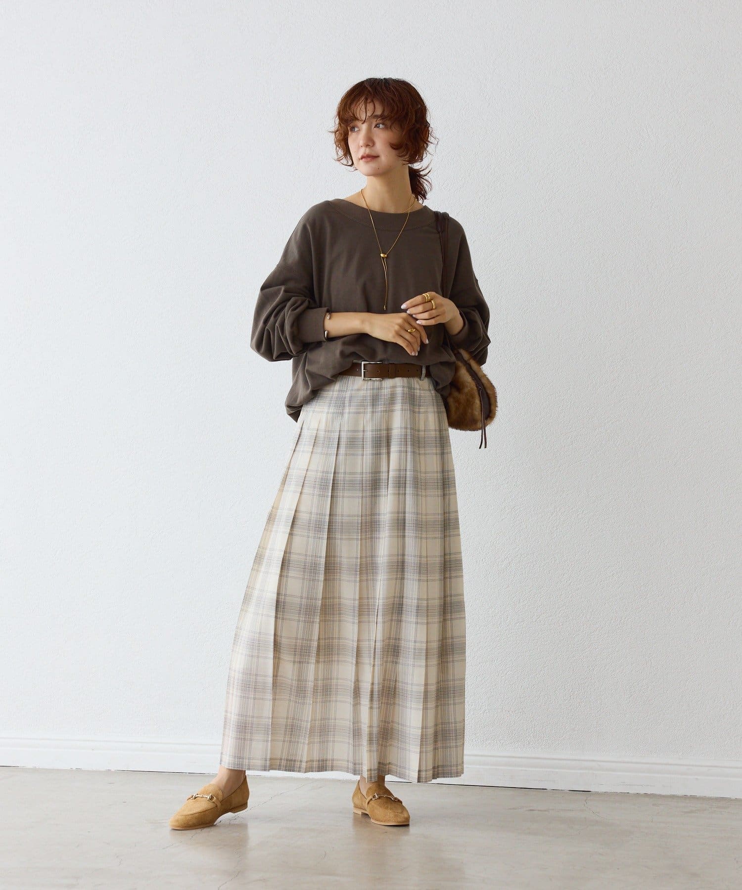秋のトレンドのチェックをいち早く取り入れられるプリーツスカート。