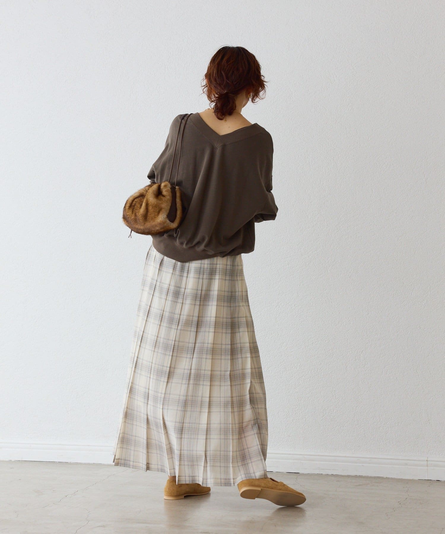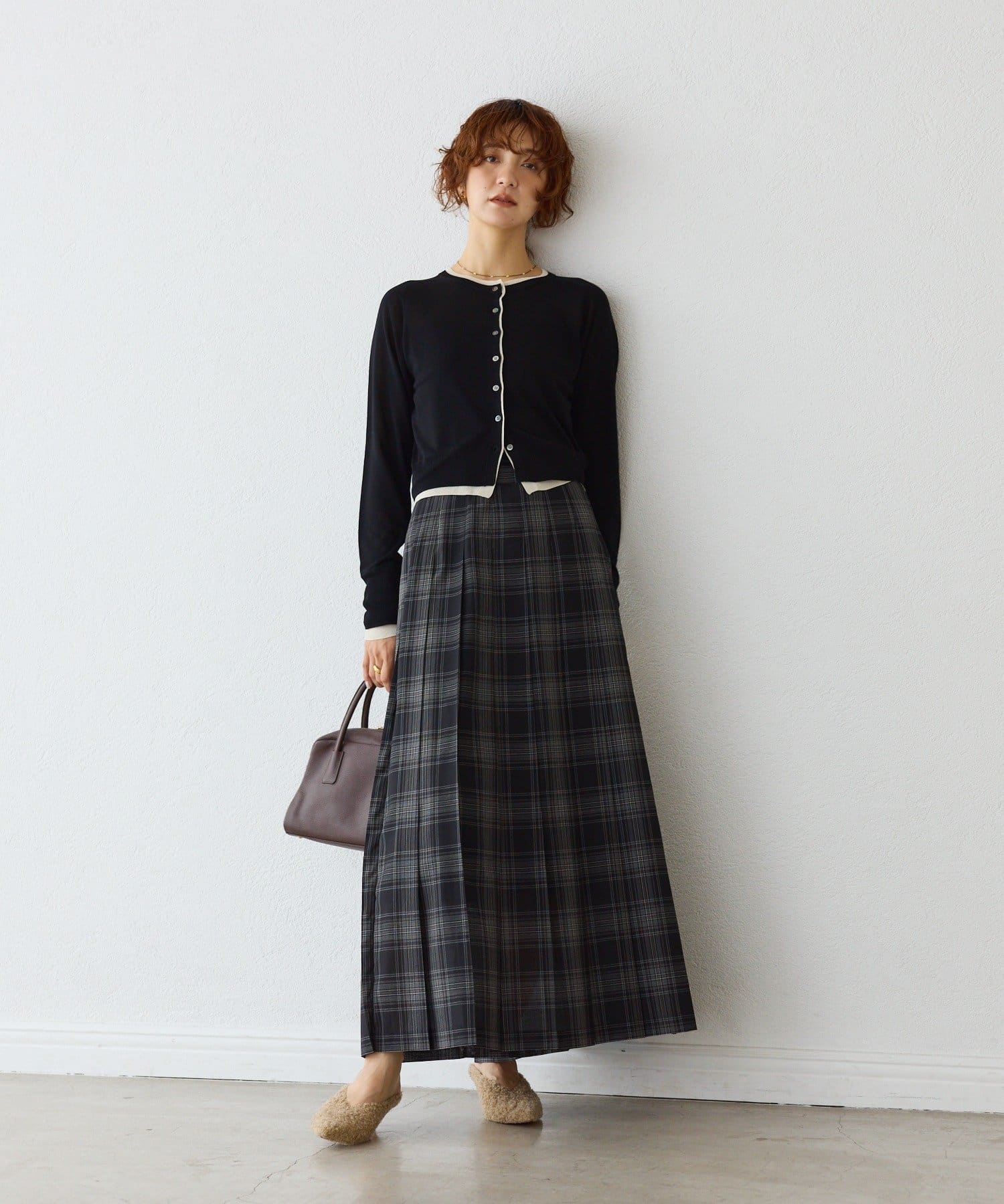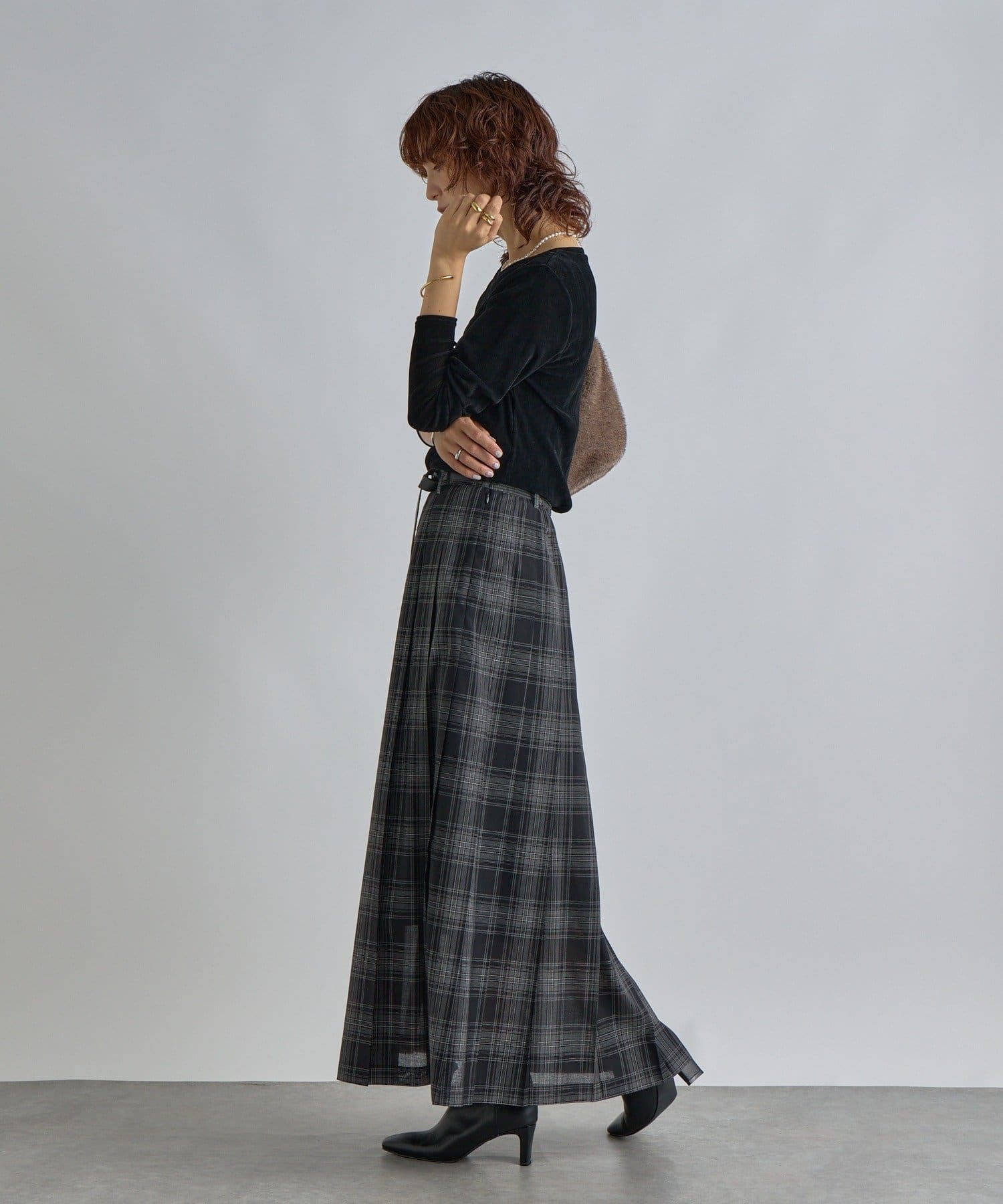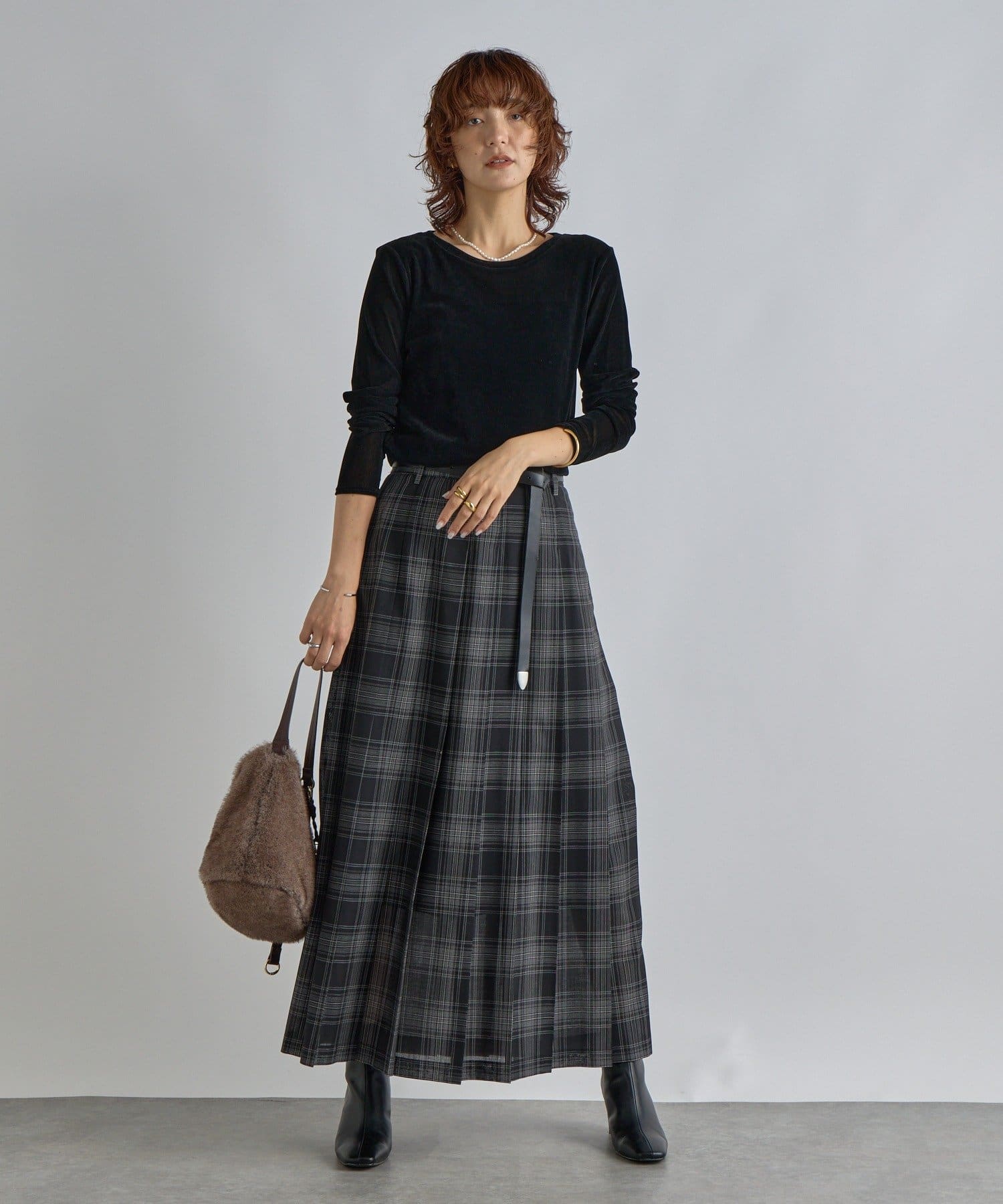 秋のトレンドのチェックをいち早く取り入れられるプリーツスカート。