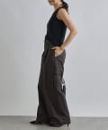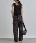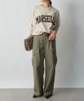 膝下から裾にかけて緩やかにカーブしたフォルムがモードな印象のパンツ。