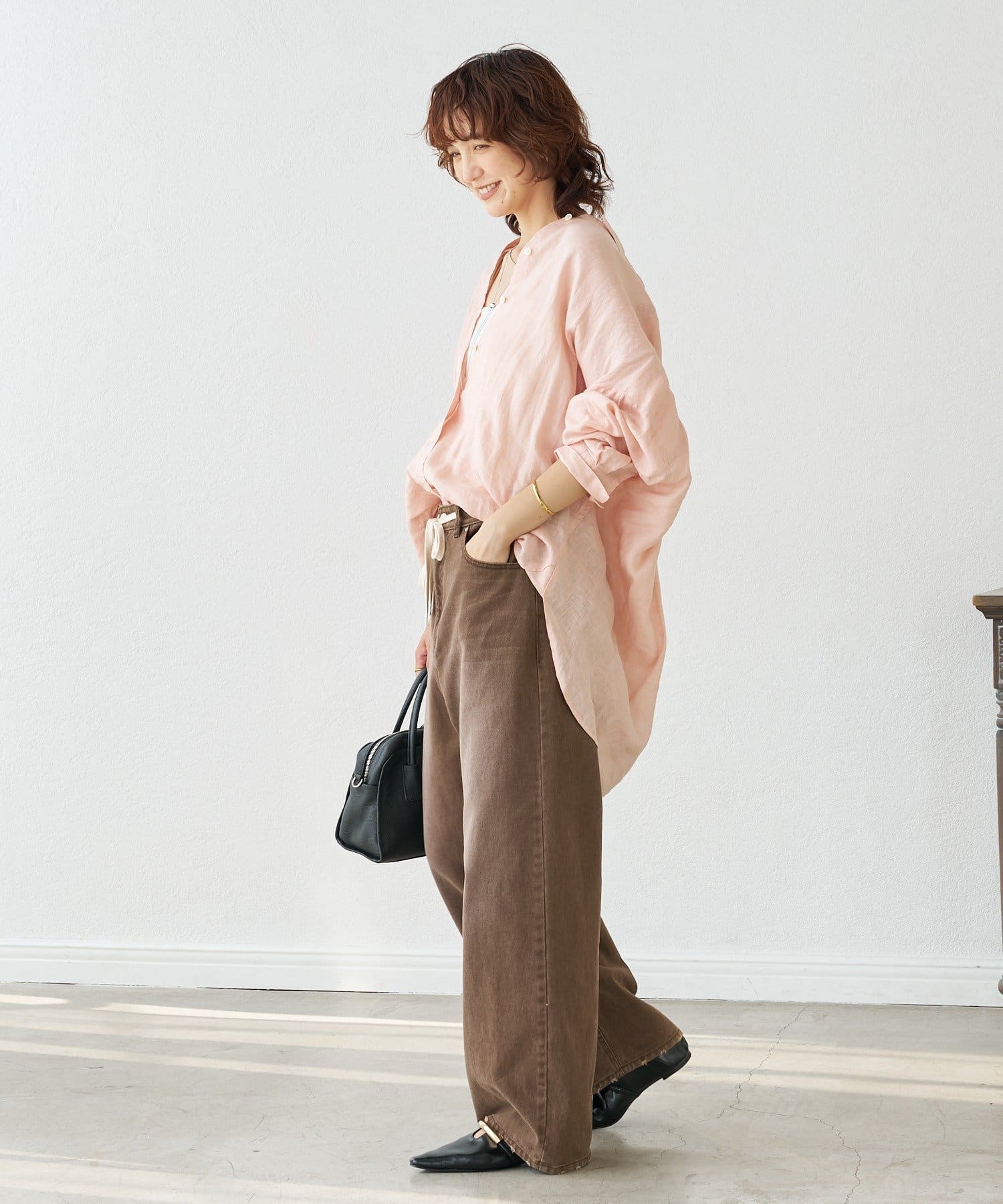 トレンド感たっぷりのピンクとブラウンで、気分のアガる1着です。