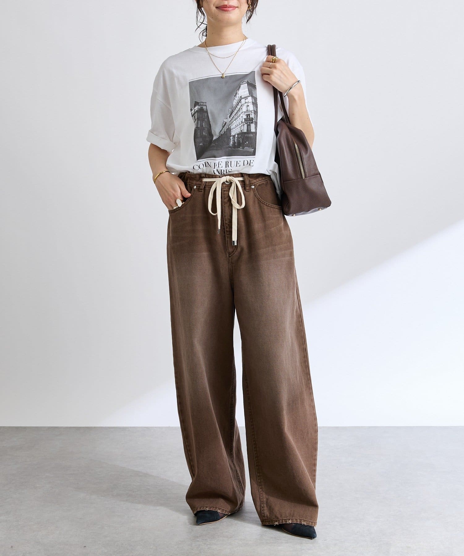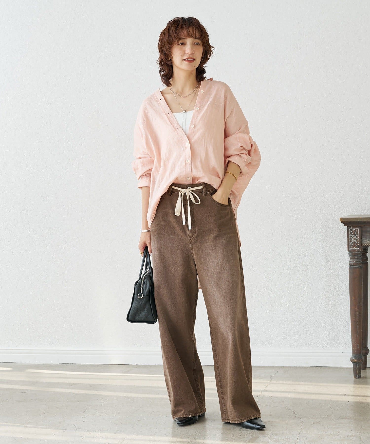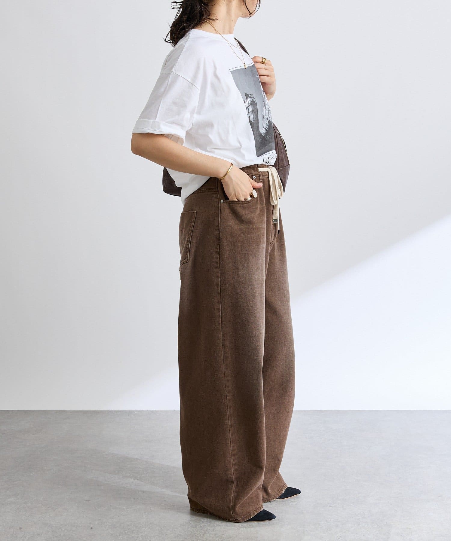 ドロストベルトが目を引くカジュアルなカラーパンツ。