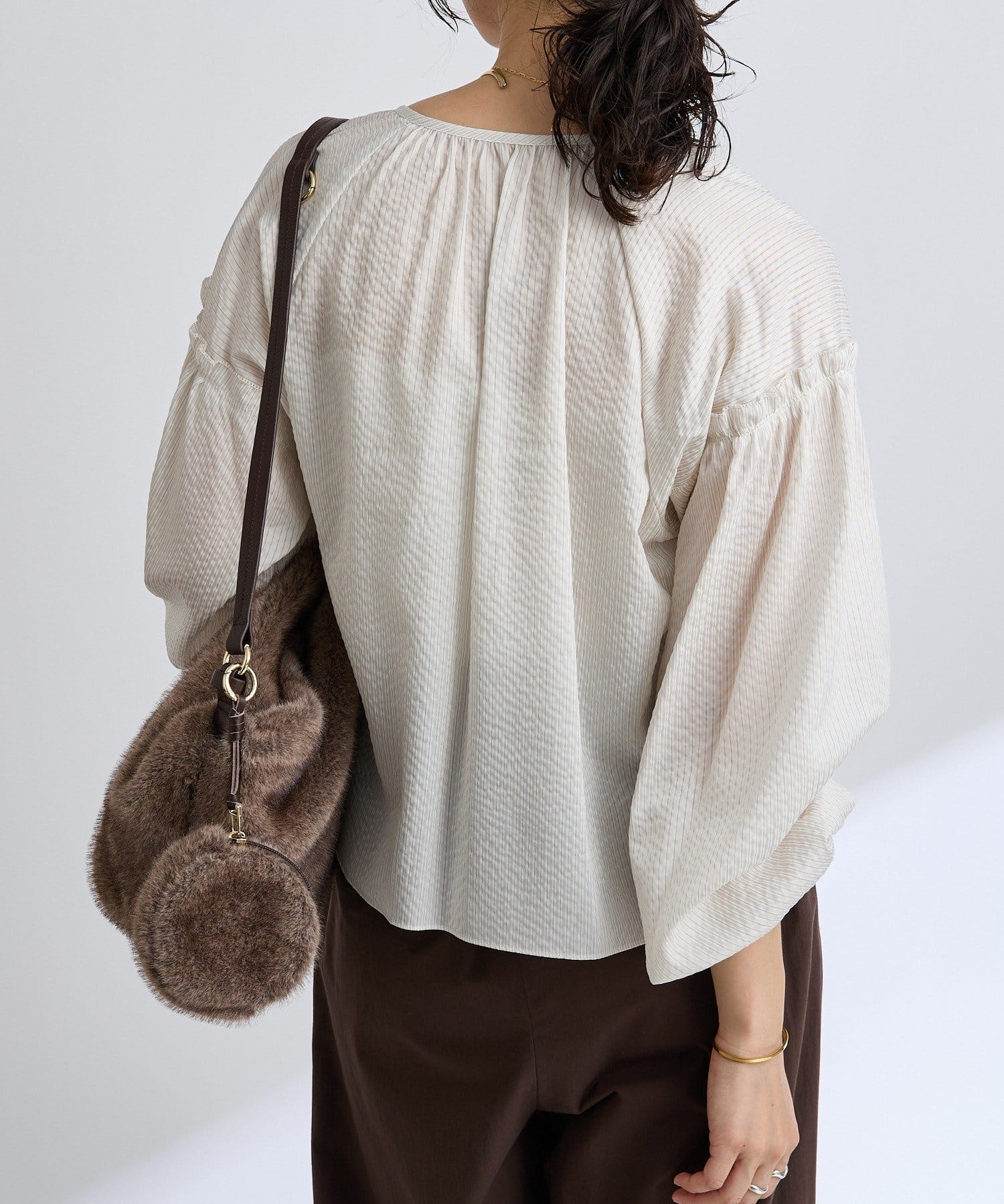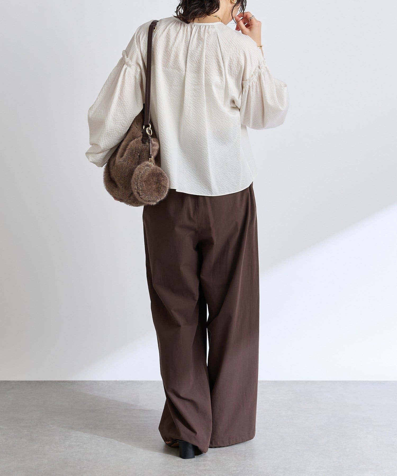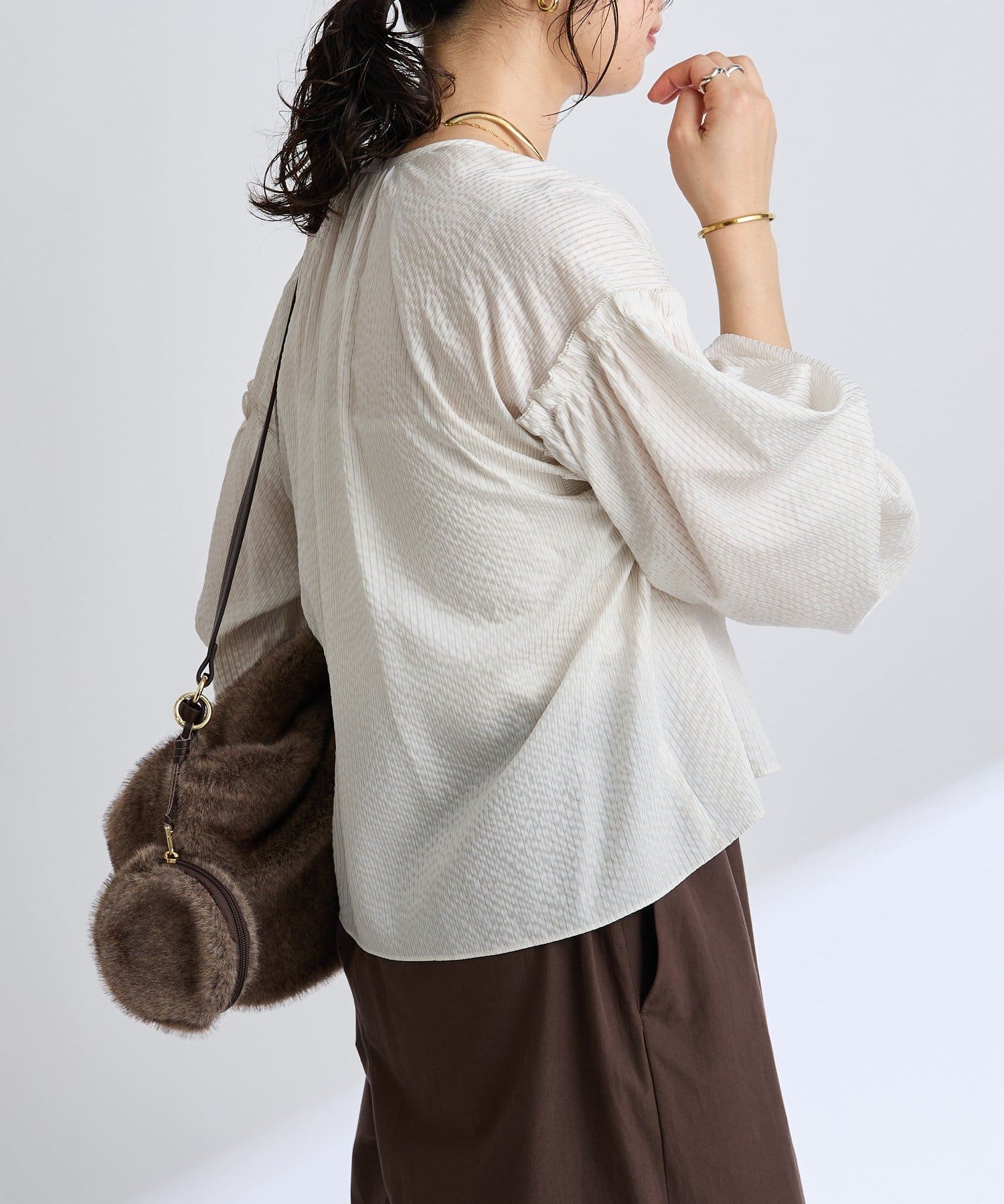 ギャザーを寄せた袖口はゴム仕様で、たくし上げることでふんわりとしたパフスリーブのボリュームを楽しんでいただけます。