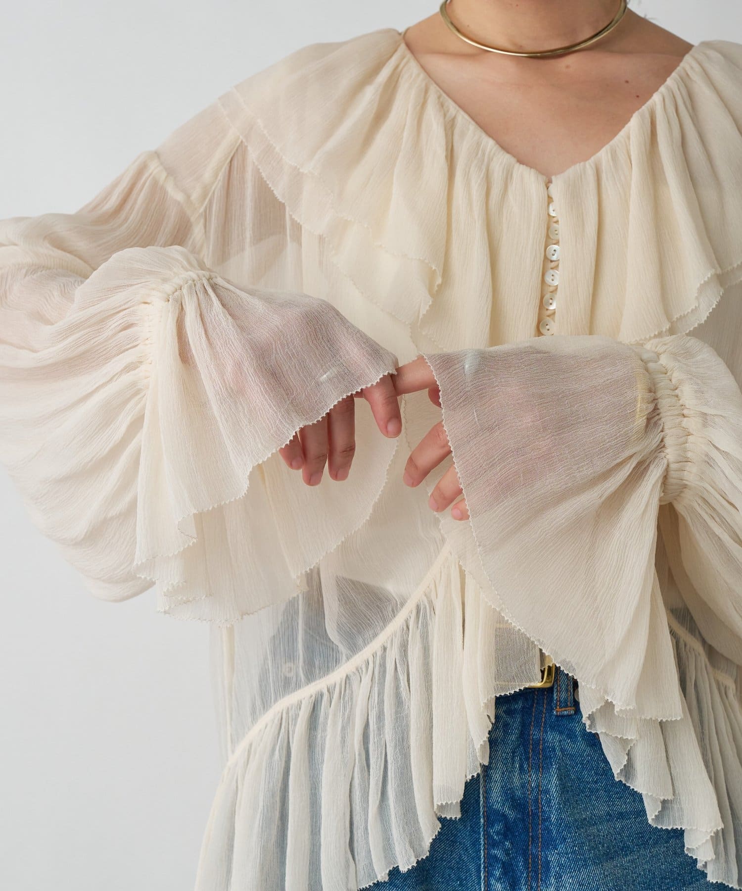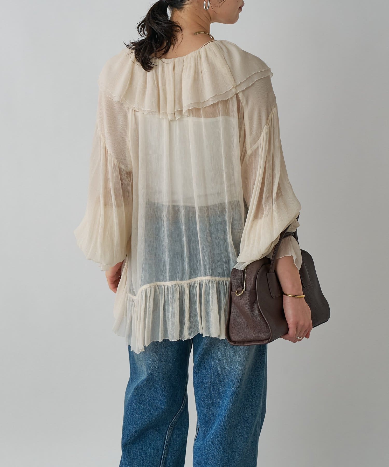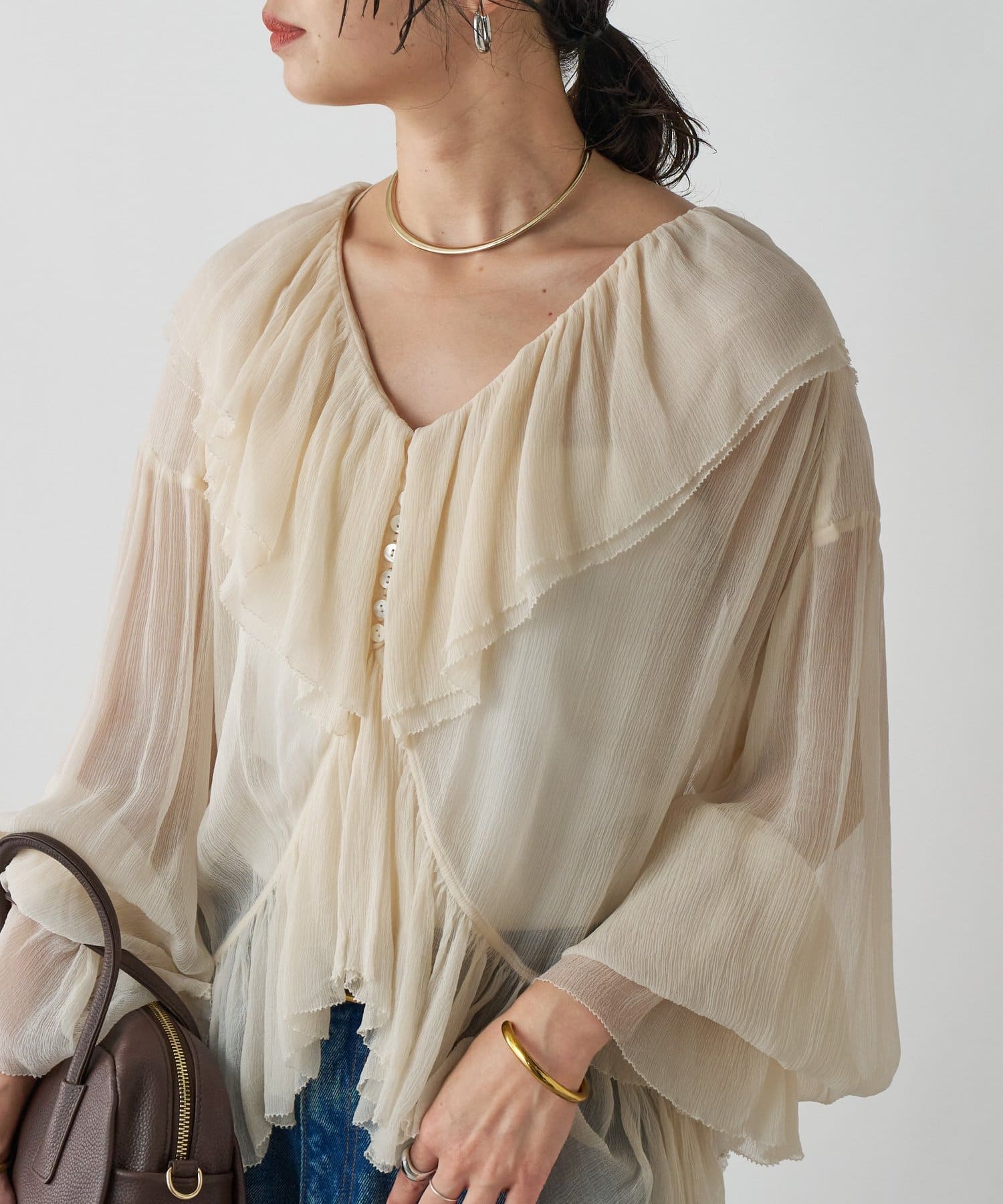 ・袖口やフリル端をピコ始末にして繊細な印象に