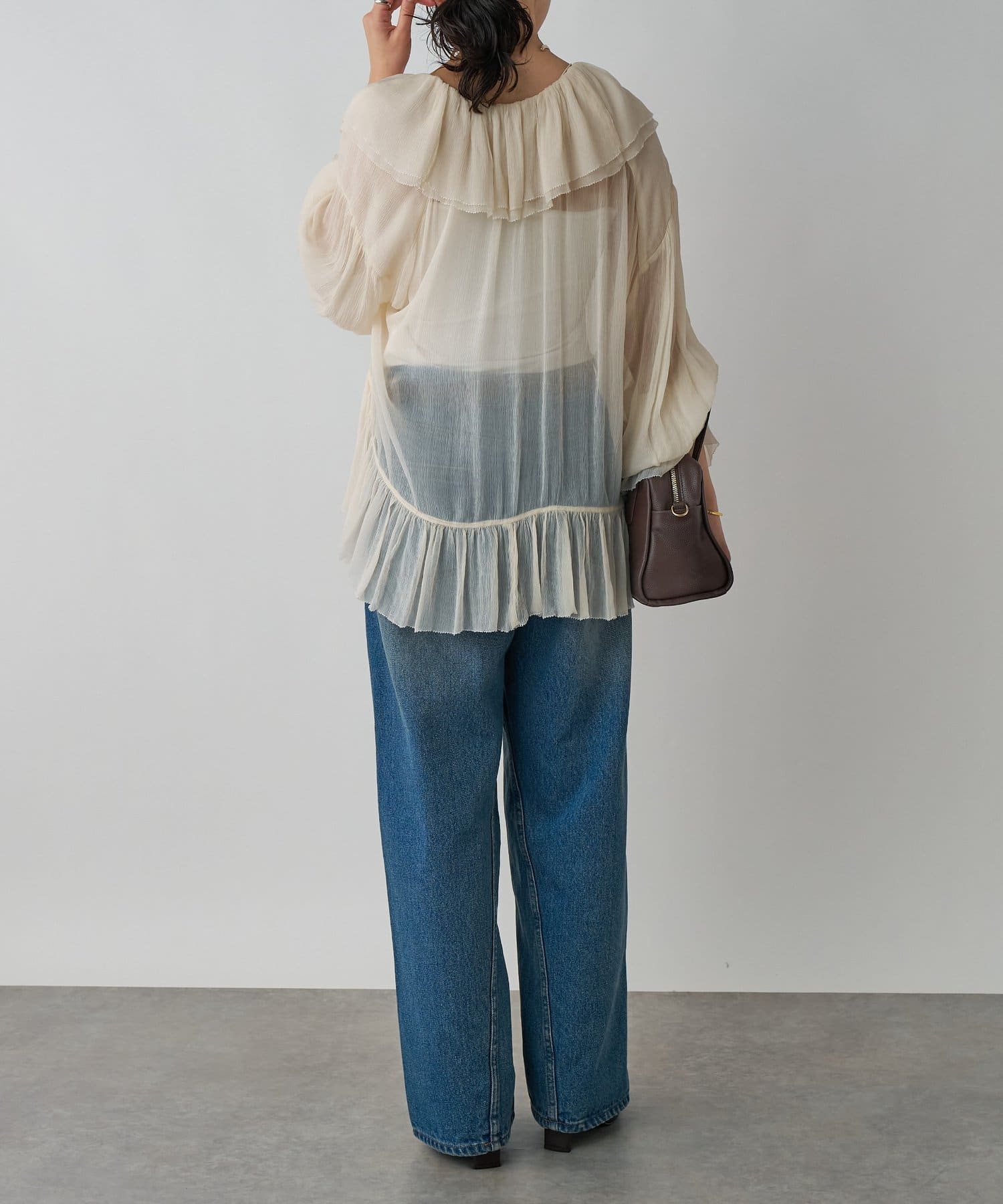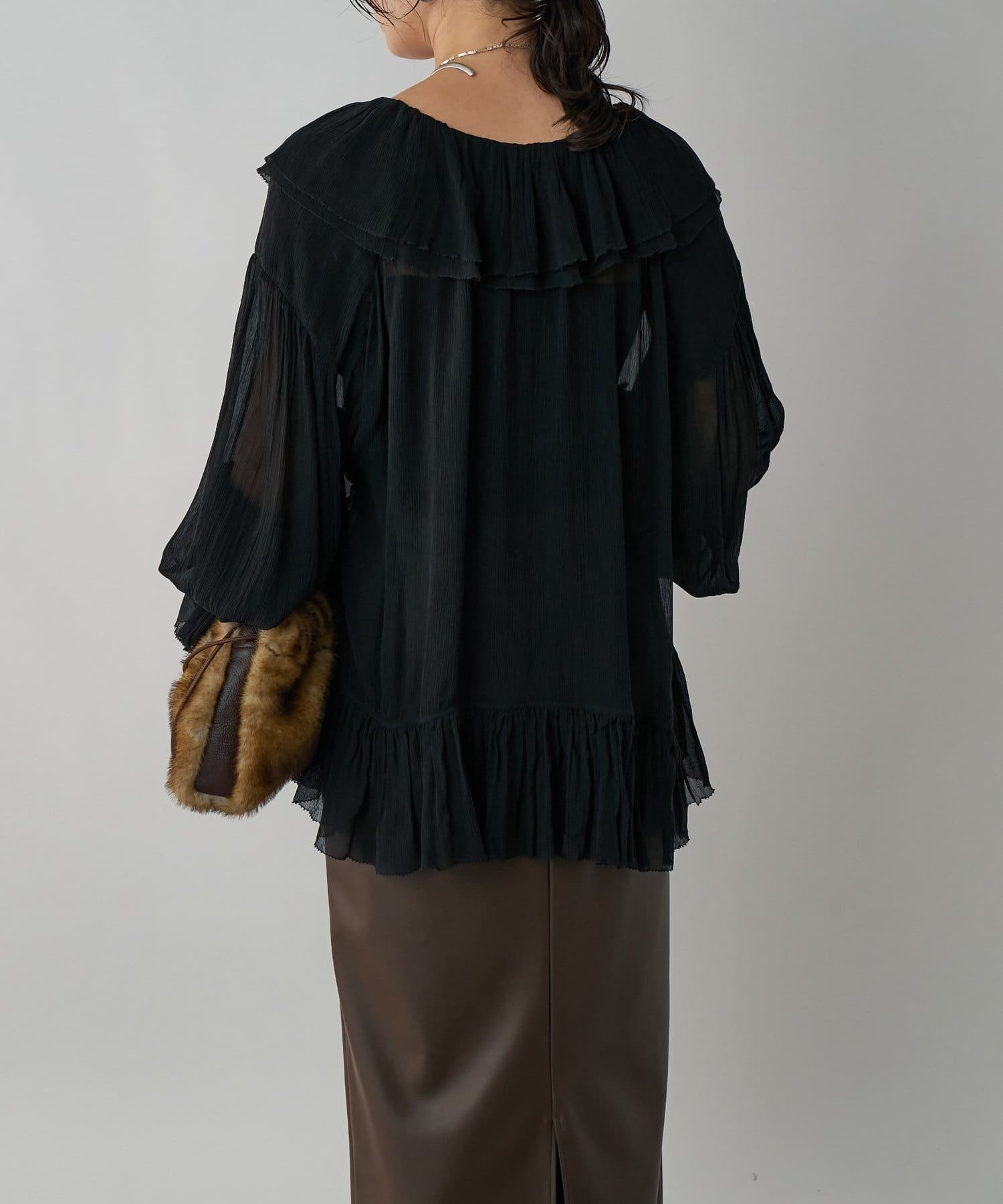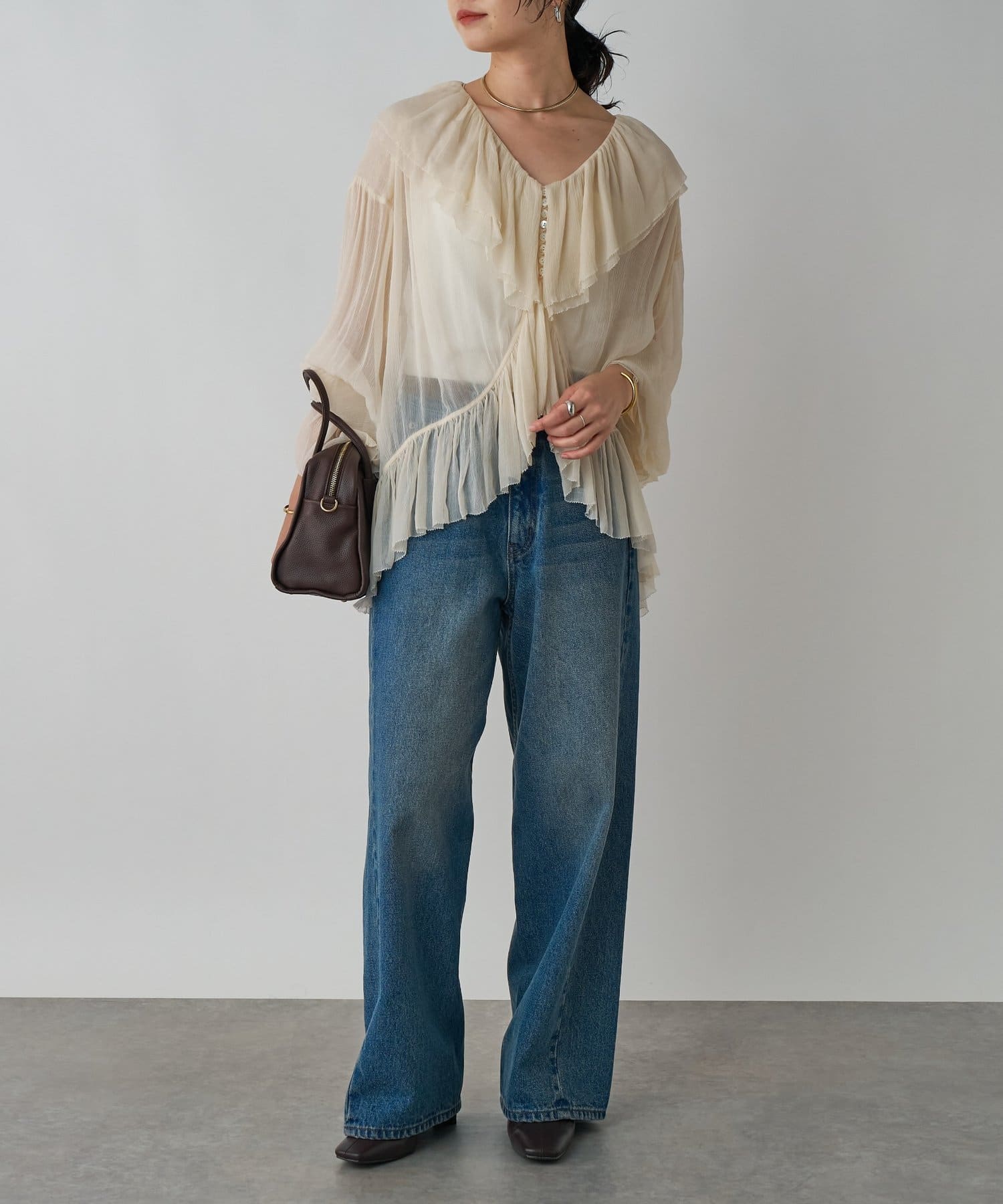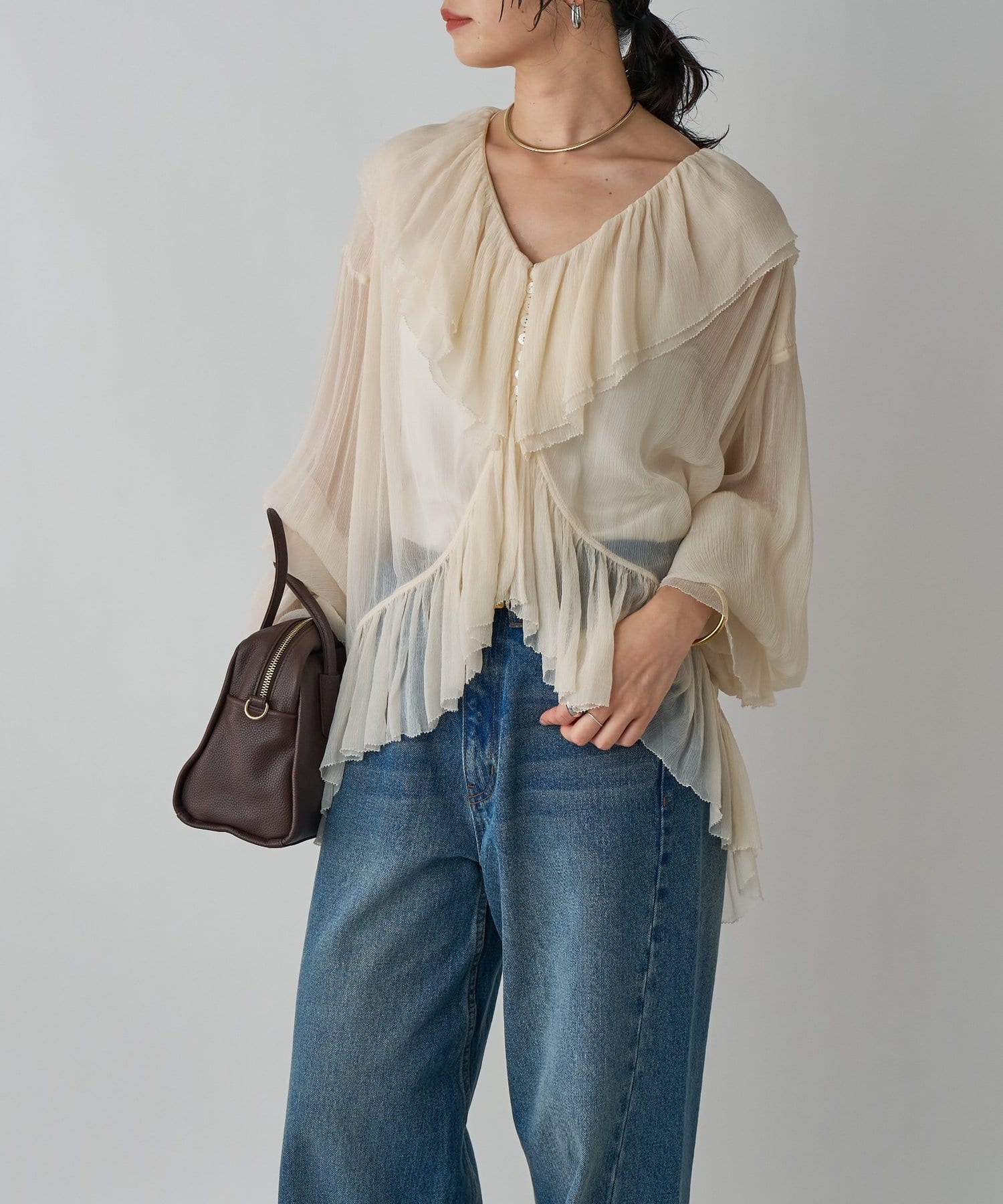・袖口やフリル端をピコ始末にして繊細な印象に