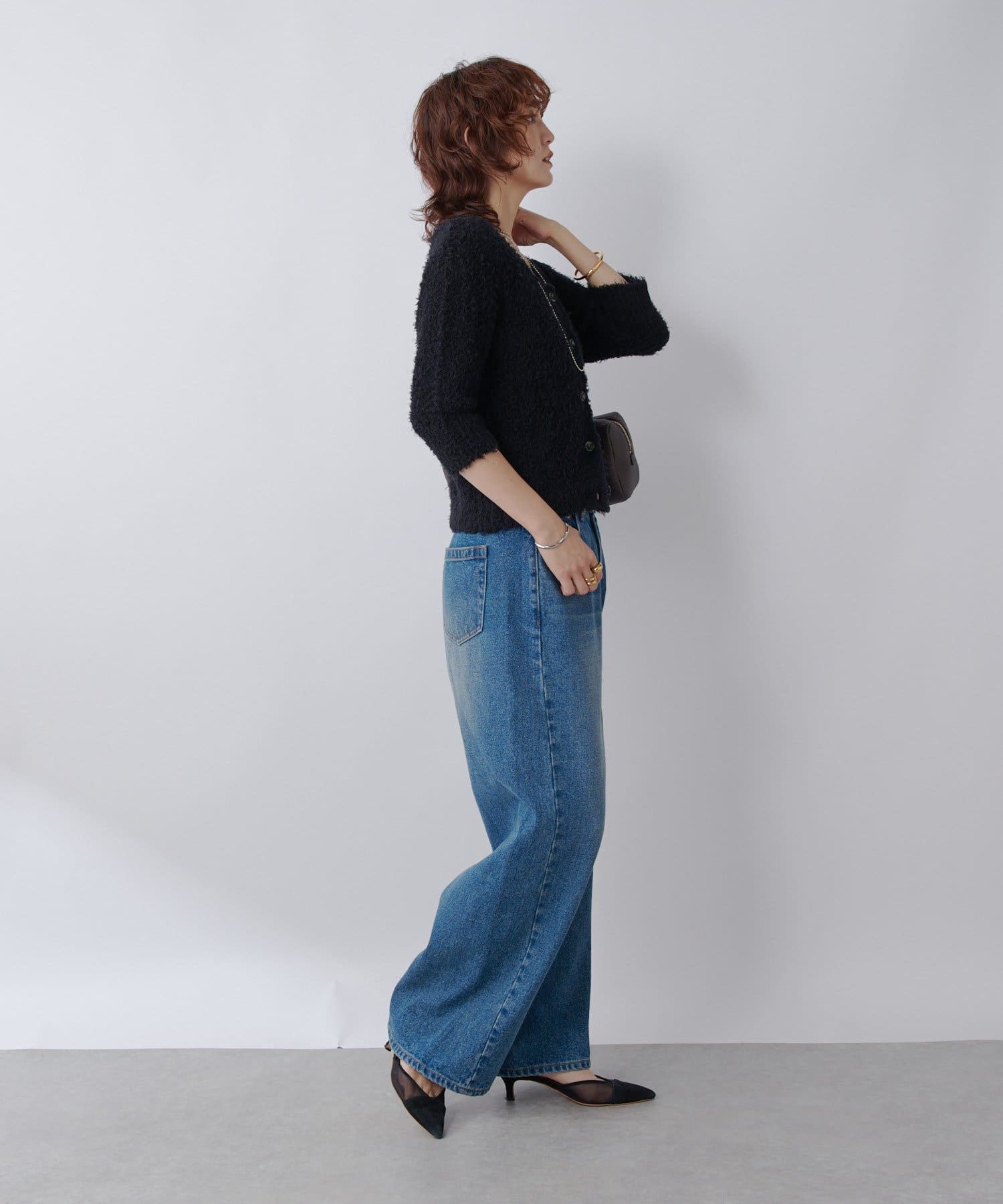 ハイウエストのワイド系のボトムでカジュアルに合わせていただくのがおすすめです。