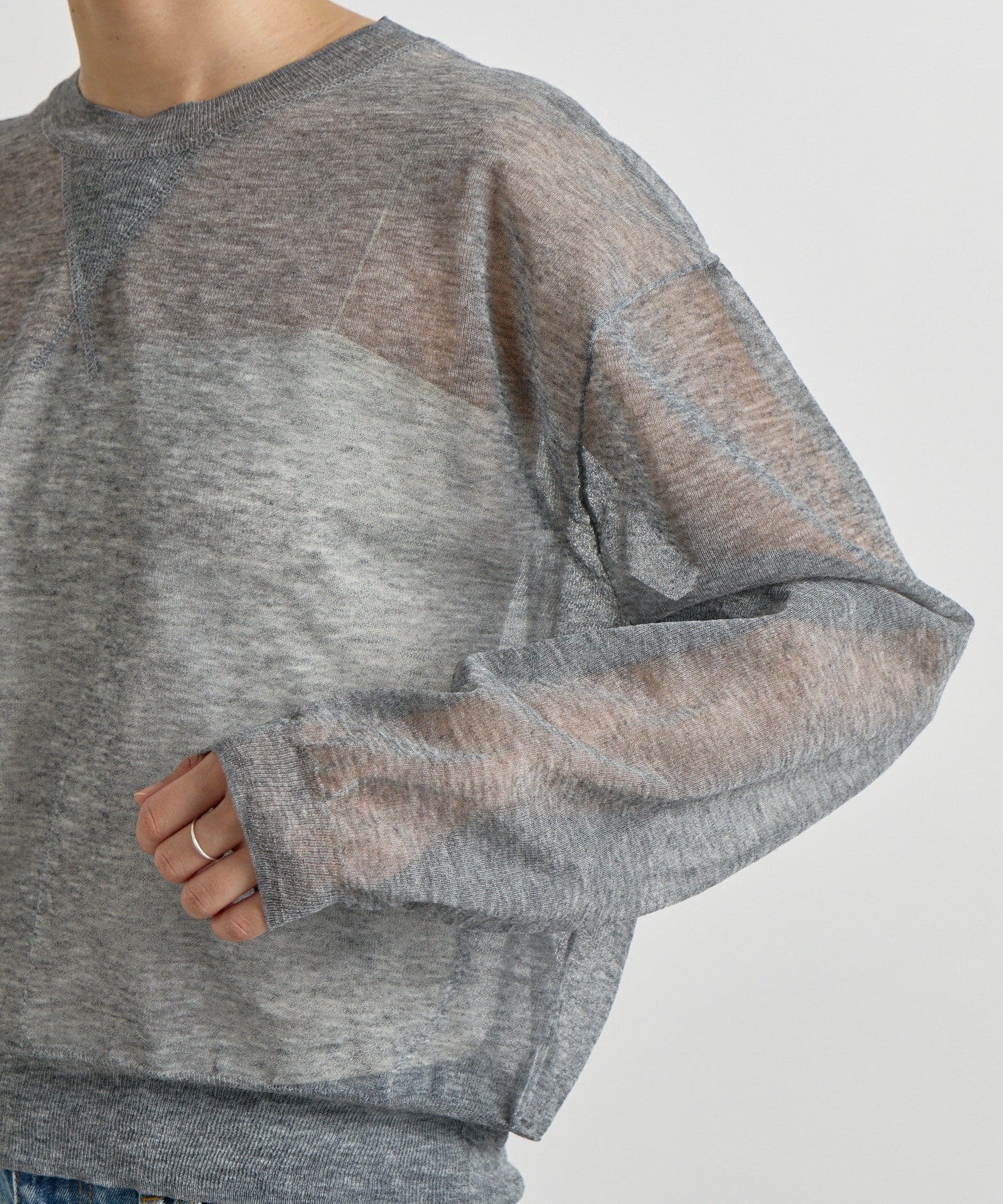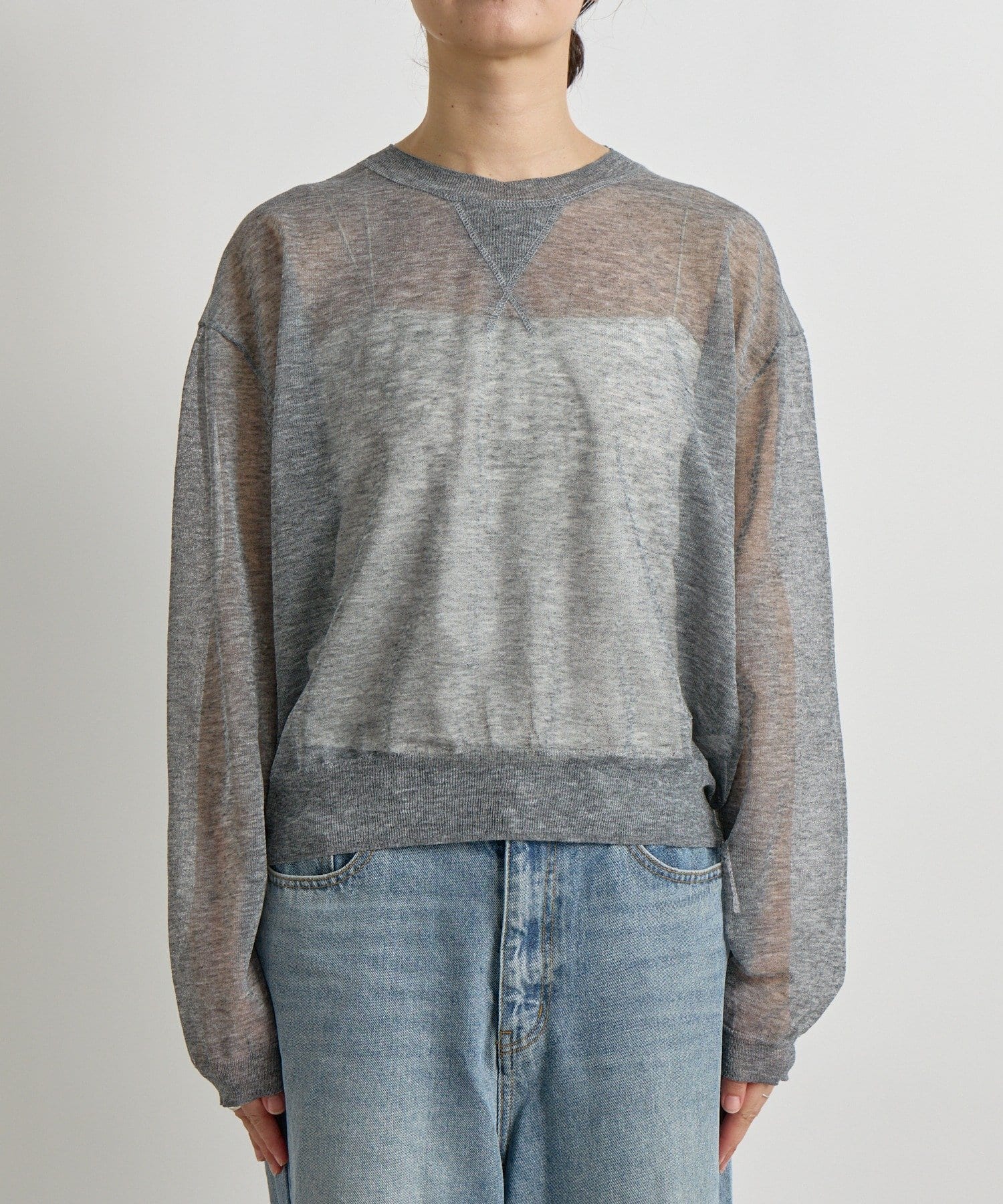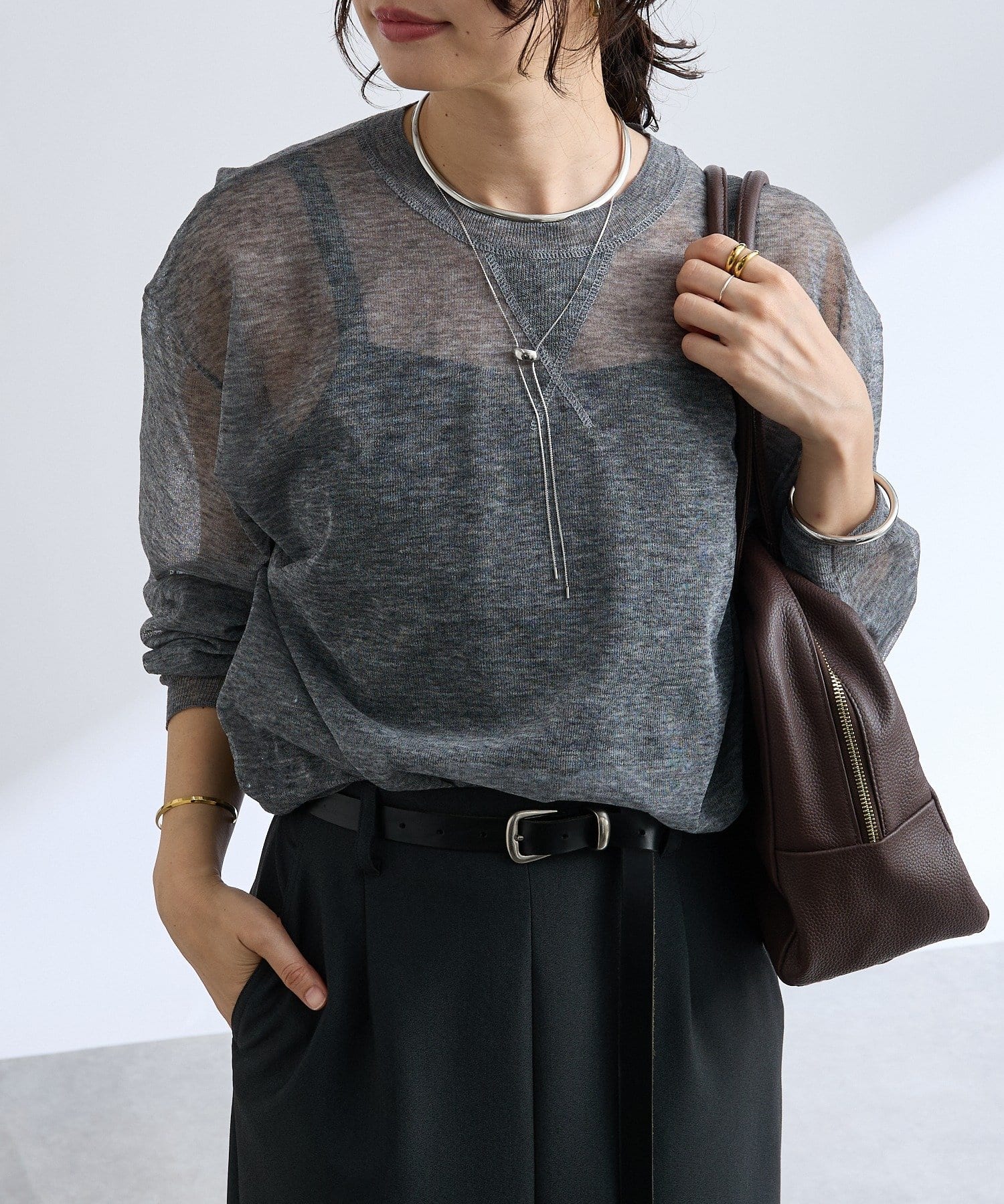 麻のスラブ感を活かした繊細な表情のシアーニット。